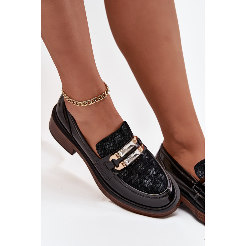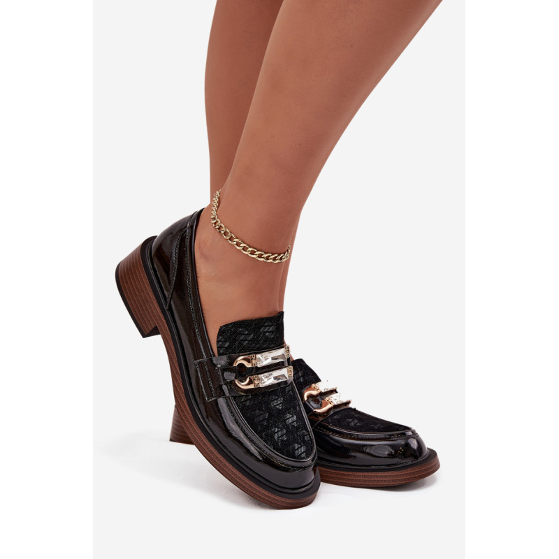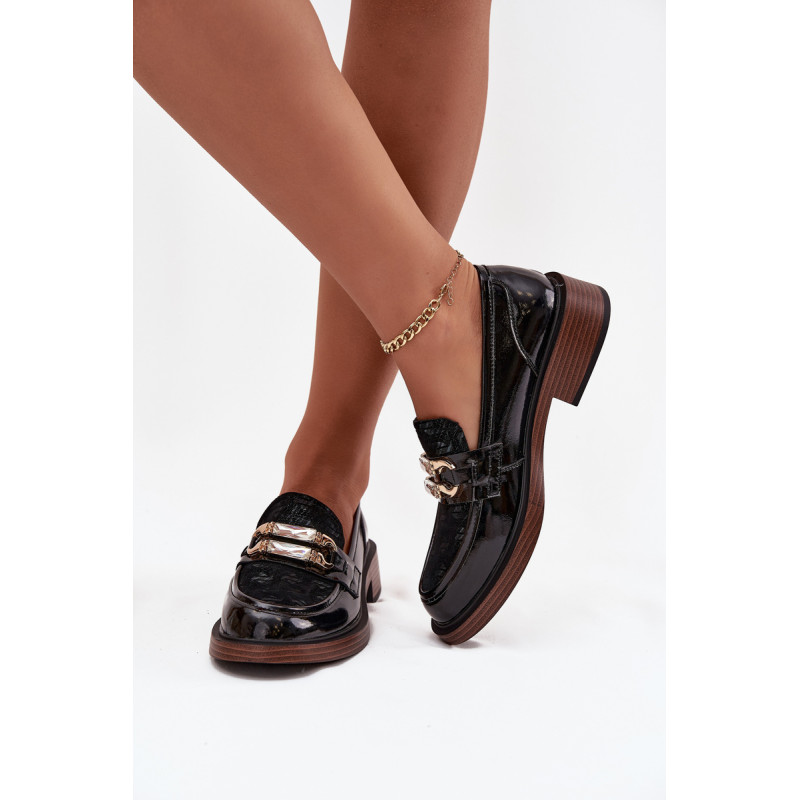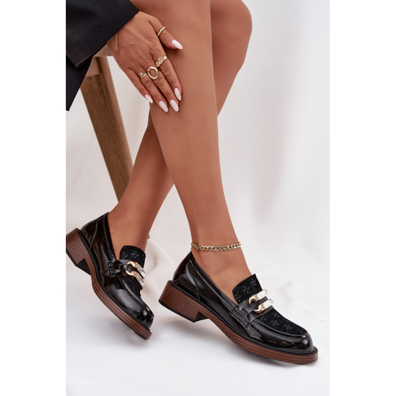Moteriški mokasinai, pagaminti iš natūralios odos, yra klasikinės elegancijos ir patogumo derinys. Subtilus auksinis detalė su krištolais suteikia jiems išskirtinį charakterį ir išsiskiria bet kurioje stilizacijoje. Modelis yra ant mažo blokinio kulno, kuris užtikrina stabilumą ir visos dienos komfortą. Minkšta įdėklas prisitaiko prie pėdos formos, užtikrindamas patogumą net ilgalaikio dėvėjimo metu. Tai universalūs mokasiniai, kurie puikiai papildys tiek kasdienius, tiek ir elegantiškesnius ansamblius, suteikdami jiems klasės ir moteriškumo akcentą. Renkantis dydį, vadovaukitės dydžių lentele.