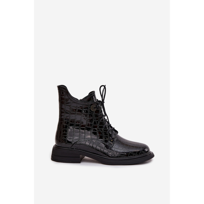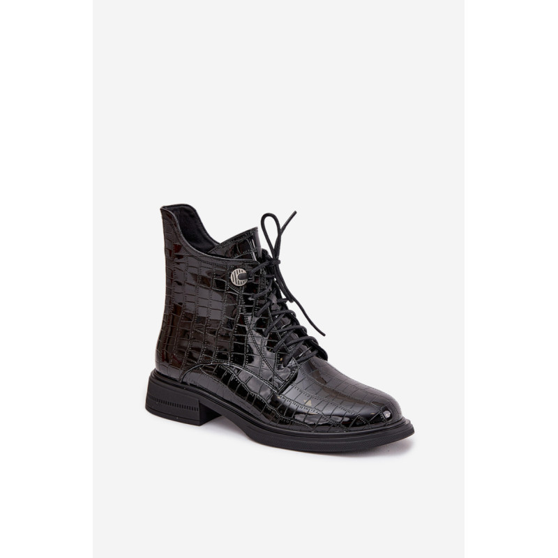 Moteriški aukštakulniai batai pagaminti iš natūralios, lakuotos odos – stilingas pasirinkimas šaltoms dienoms. Žvilganti apdaila suteikia jiems elegantišką ir šiuolaikišką charakterį. Modelis užsegamas užtrauktuku ir papildomai raišteliais, leidžiančiais puikiai pritaikyti prie pėdos ir patogiai užsidėti. Batai yra sušildyti, todėl suteikia šilumą ir komfortą net šaltomis dienomis. Tai klassikos ir miesto stiliaus derinys – puikus kasdieniams įvaizdžiams ir elegantiškesniems deriniams. Renkantis dydį, prašome vadovautis dydžių lentele. Renkantis dydį, vadovaukitės dydžių lentele.