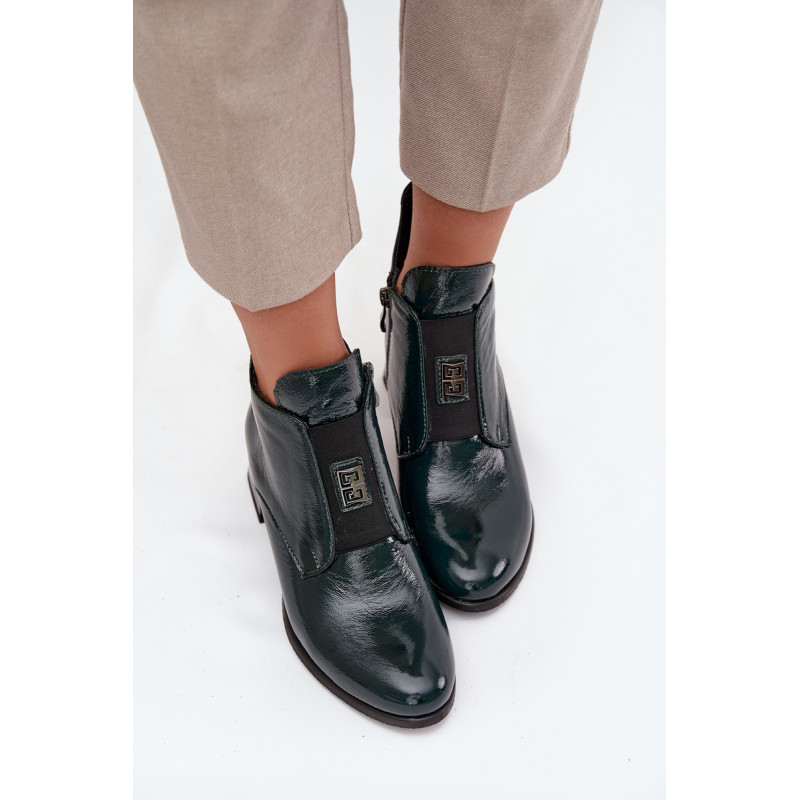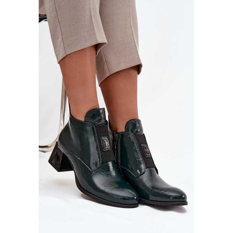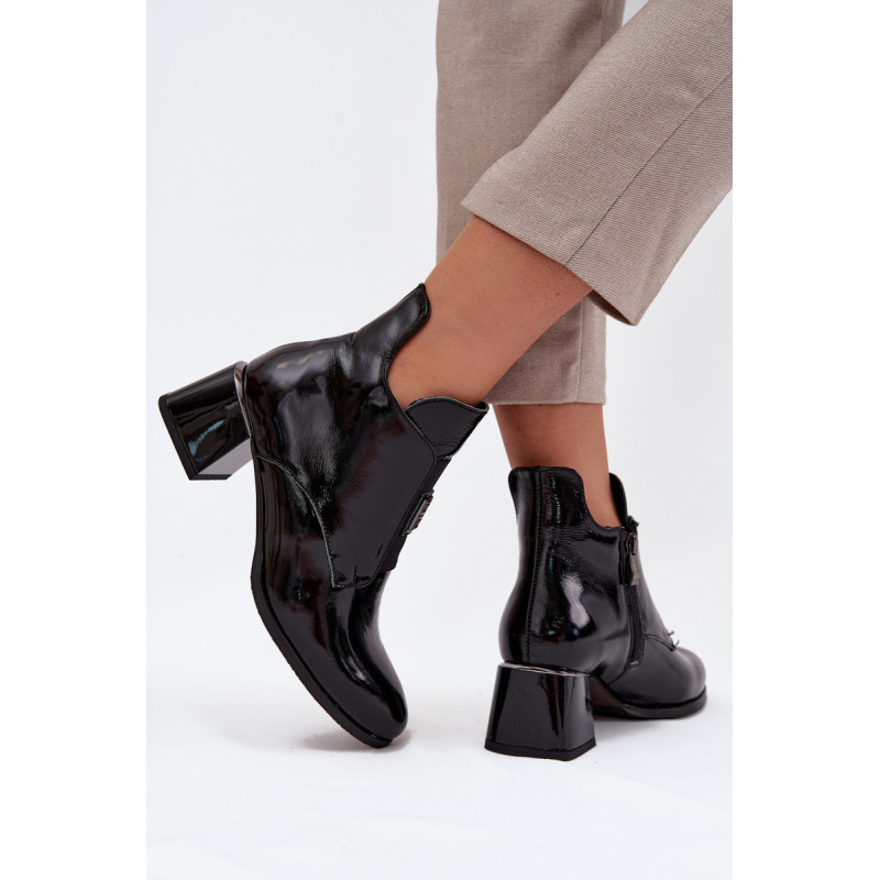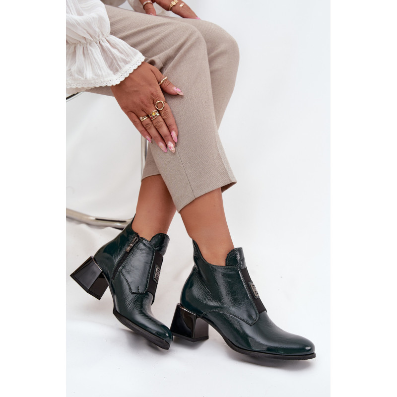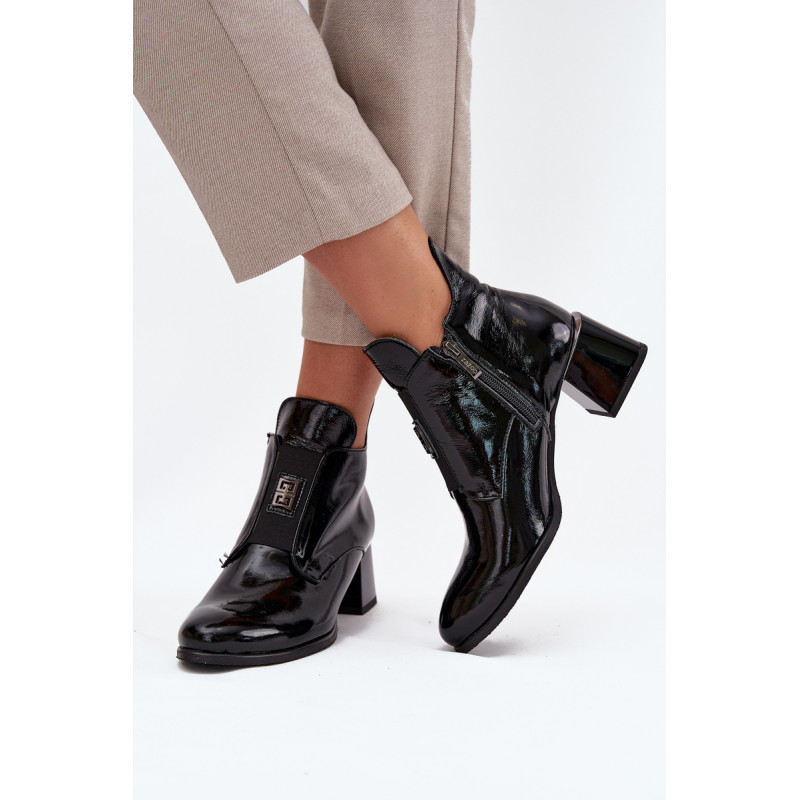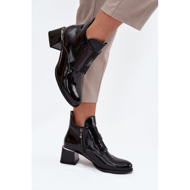 Natūralios odos auliniai batai derina eleganciją ir patogumą. Pastatytas ant stabilaus blokinio kulno, jie užtikrina komfortą visą dieną. Viduje yra šiltas pamušalas, kuris garantuoja šilumą šaltomis dienomis. Priekyje yra elastinis intarpas, kuris ne tik palengvina užsidėjimą, bet ir priduria subtilų, madingą akcentą. Užsegami su užtrauktuku. Be to, mažas dekoratyvinis elementas išskiria šiuos aulius unikaliu stiliumi. Būtina turėti! Renkantis dydį, prašome vadovautis dydžių lentele. Renkantis dydį, vadovaukitės dydžių lentele.