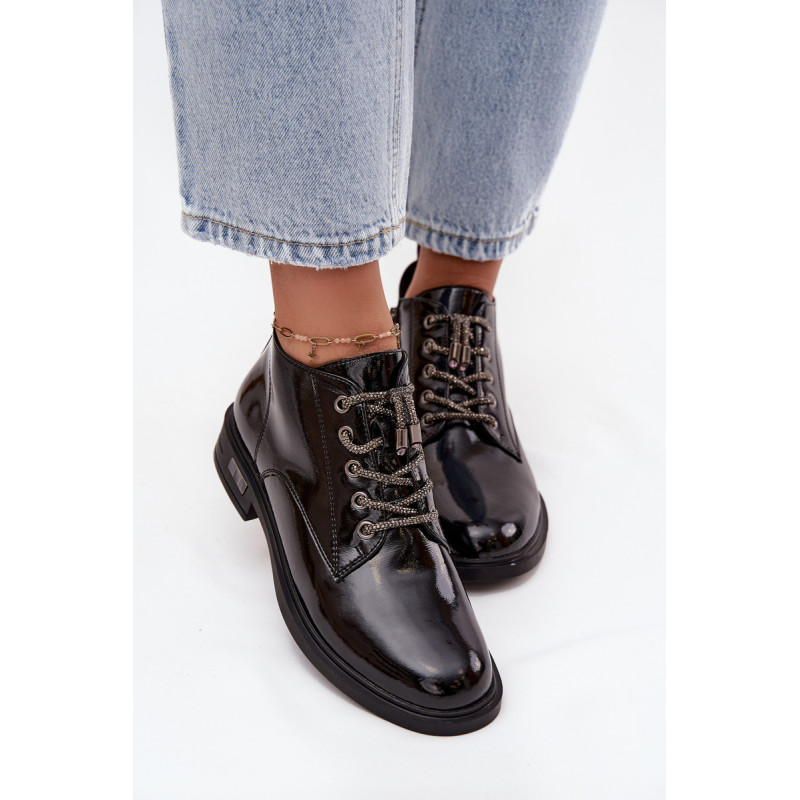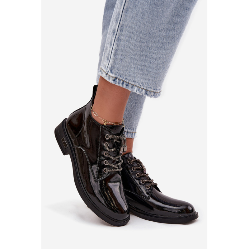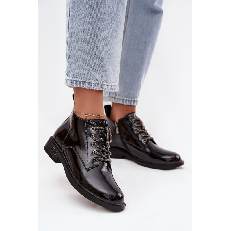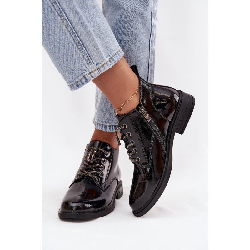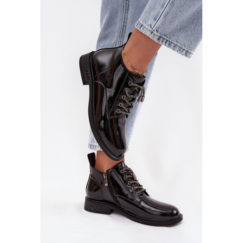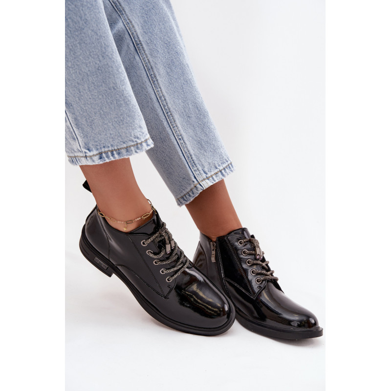 Moteriški kulkšnies batai, pagaminti iš natūralios, lakuotos odos, yra pasiūlymas moterims, vertinančioms kasdienį eleganciją. Blizganti viršutinė dalis suteikia išskirtinį charakterį ir puikiai tinka daugeliui stilių – nuo kasdieninio iki formalesnio. Žemas dizainas užtikrina patogumą ir laisvę judėti, todėl šis modelis tinka kasdieniam naudojimui. Dekoratyvinis raištelis patraukia dėmesį, suteikia originalumo ir sukuria įspūdingą akcentą. Batai yra ant plokščio kulno, kuris užtikrina patogumą visą dieną, o apvalios nosys pabrėžia klasikinį avalynės charakterį. Tai universalus modelis, kuris puikiai papildys jūsų rudenį-žiemos garderobą. Renkantis dydį, prašome vadovautis dydžių lentele. Renkantis dydį, vadovaukitės dydžių lentele.