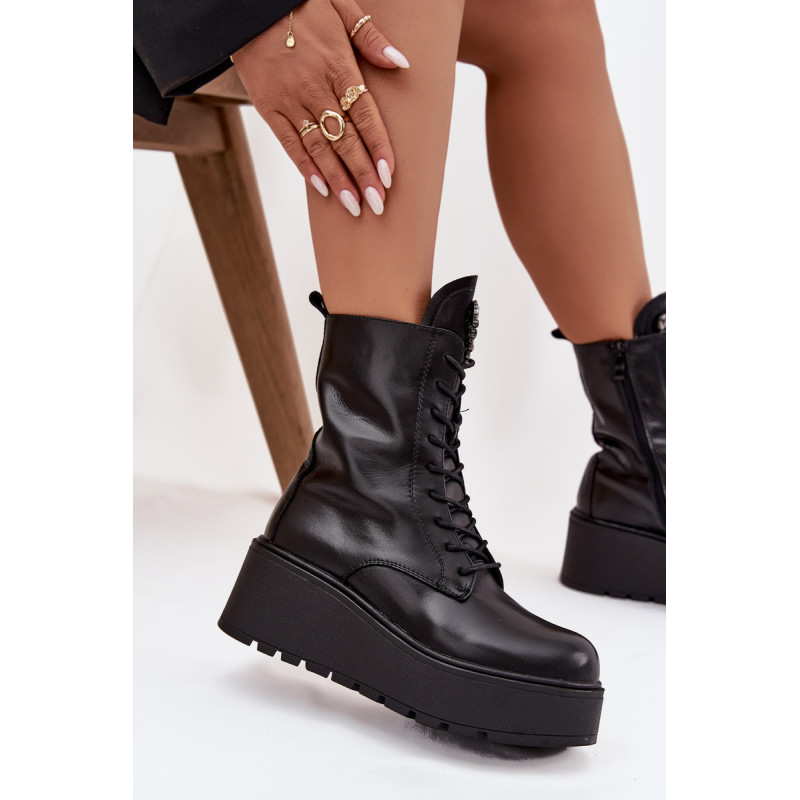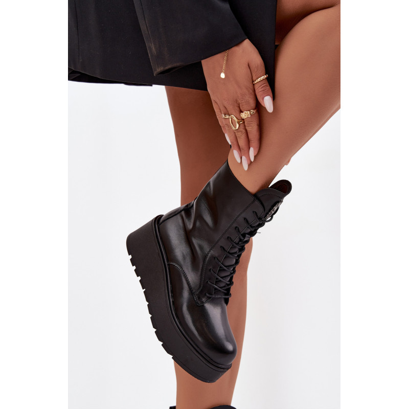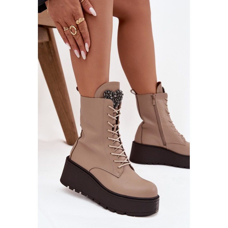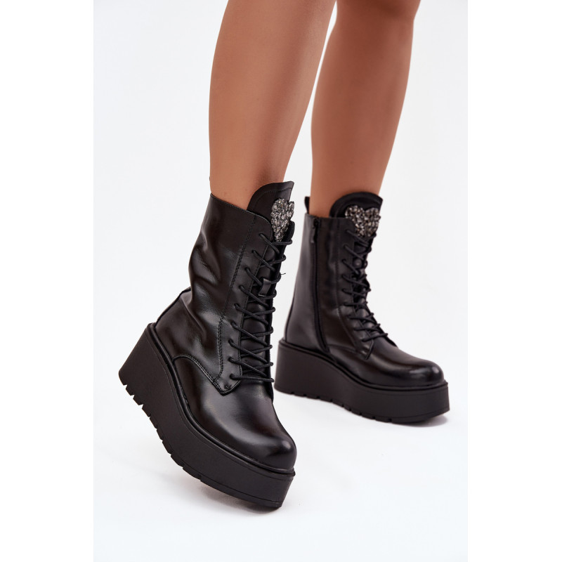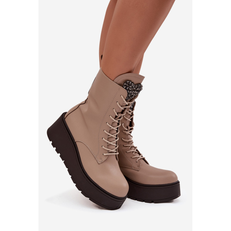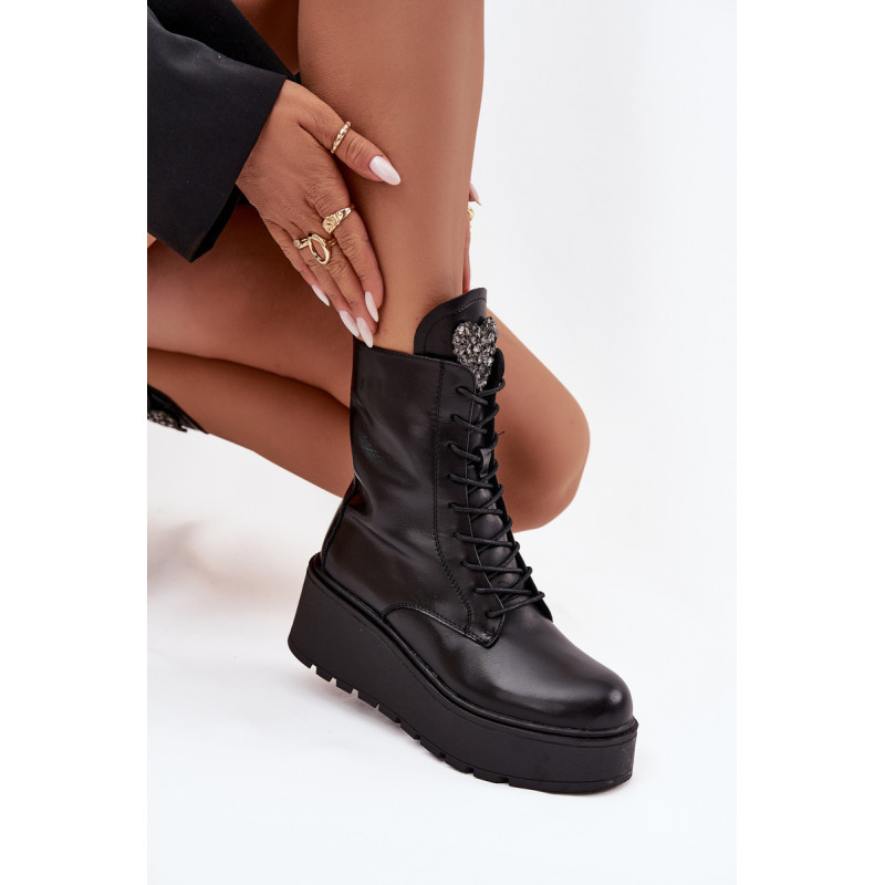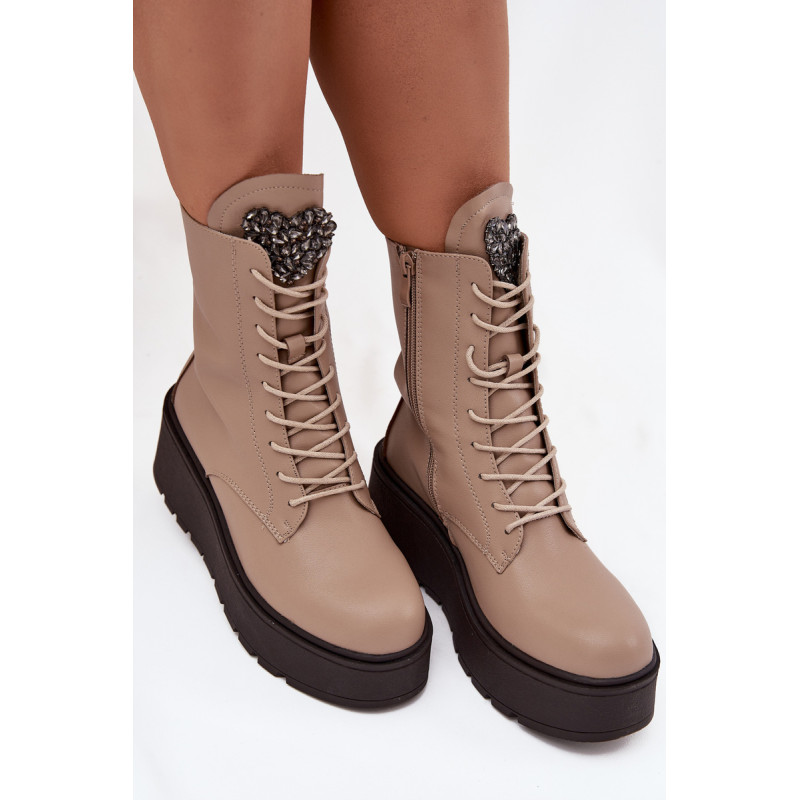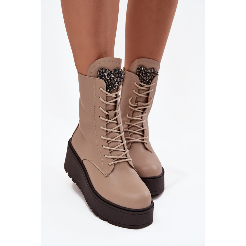 Moteriški Jezzi prekės ženklo auliniai batai yra pasiūlymas moterims, kurios vertina patogumą ir madingą išvaizdą. Pagaminti iš natūralios odos, išsiskiria ilgalaikiškumu ir elegantišku išvaizda. Ant stabilaus platformos kulno, vizualiai pratęsdia siluetą ir tuo pačiu metu suteikia komfortą dėvint. Batai yra su paminkštinimu, todėl idealiai tinka šaltoms rudens-žiemos dienoms. Modelis turi raištelius ir šoną užtrauktuką, kuris palengvina pritaikymą ir greitą užsidėjimą. Ypatingą dėmesį patraukia žėrintys kristalai, išdėstyti ant liežuvio, sudarantys širdies formą – šis dekoratyvinis elementas suteikia išskirtinį žavesį ir pabrėžia jų moterišką charakterį. Šie batai puikiai tinka tiek kasdieniam, tiek ir elegantiškesniam stiliui, tapdami originaliu akcentu jūsų drabužinėje. Rekomenduojame atsižvelgti į dydžių lentelę renkantis dydį. Renkantis dydį, vadovaukitės dydžių lentele.