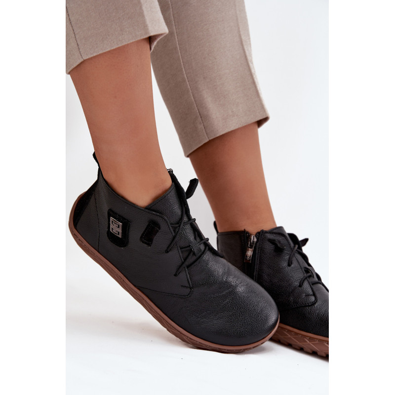 Moteriški barefoot stiliaus batai, pagaminti iš aukštos kokybės natūralios odos, užtikrina kvėpavimą ir minkštumą, leidžiantį pėdai jaustis patogiai visą dieną. Modelis turi raištelius ir užsegimą, kas leidžia greitai ir patogiai užsidėti, taip pat užtikrina tobulą pritaikymą prie pėdos. Subtilus dekoratyvus detalės išorės šone prideda elegancijos ir charakterio, todėl tai puikus pasirinkimas tiek kasdienėms, tiek stilingesnėms aprangoms. Barefoot modelis sukurtas taip, kad užtikrintų natūraliausią pėdos padėtį ir palaikytų laisvą judėjimą. Renkantis dydį, prašome vadovautis dydžių lentele. Renkantis dydį, vadovaukitės dydžių lentele.