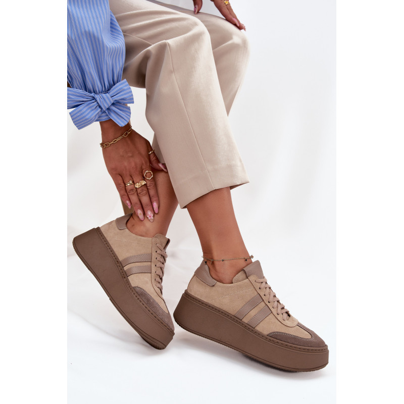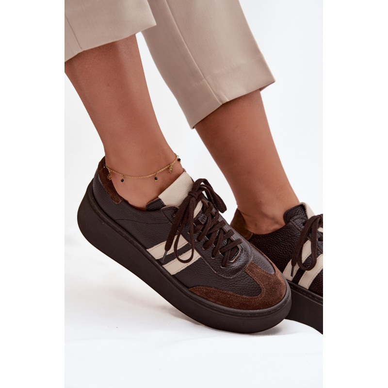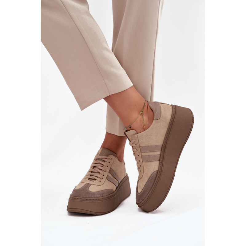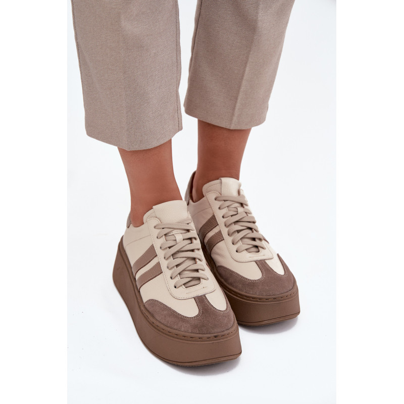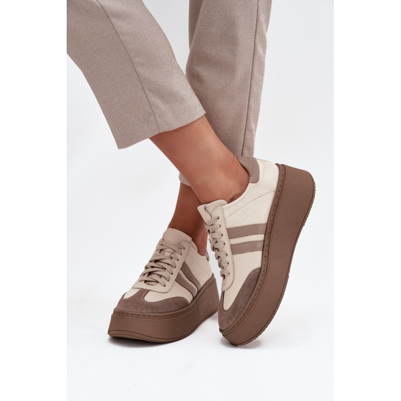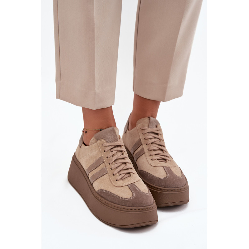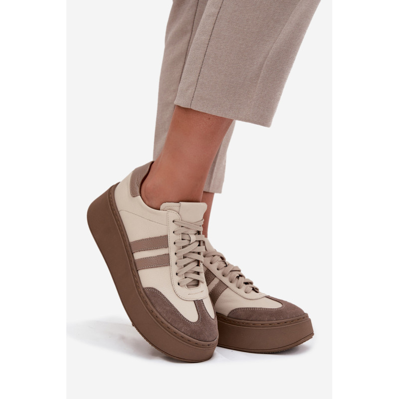 Moteriški sportbačiai, pagaminti iš natūralios odos ir zomšinių įdėklų derinio, yra šiuolaikinė pasiūlymas, kuris jungia stilių su patogumu. Dėka skirtingų medžiagų tekstūrų derinio, batai atrodo itin madingi ir patraukia dėmesį detalėmis. Pastatyti ant platformos, jie ne tik užtikrina komfortą ir stabilumą vaikščiojimo metu, bet ir priduria keletą centimetrų aukščio, subtiliai lieknindami siluetą. Šis modelis tinka tiek sportiniams, tiek kasdieniams stiliams ir yra puikus kasdienės aprangos papildymas. Šios avalynės leis jaustis laisvai, madingai ir moteriškai. Renkantis dydį, prašome vadovautis dydžių lentele. Renkantis dydį, vadovaukitės dydžių lentele.
