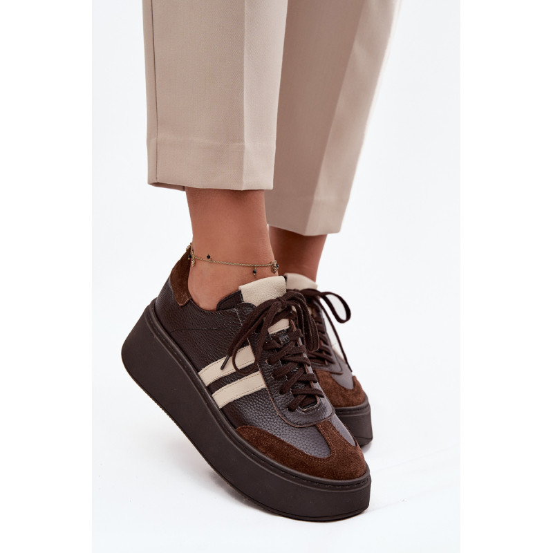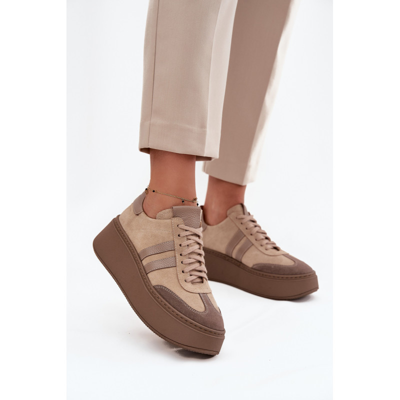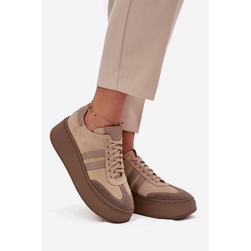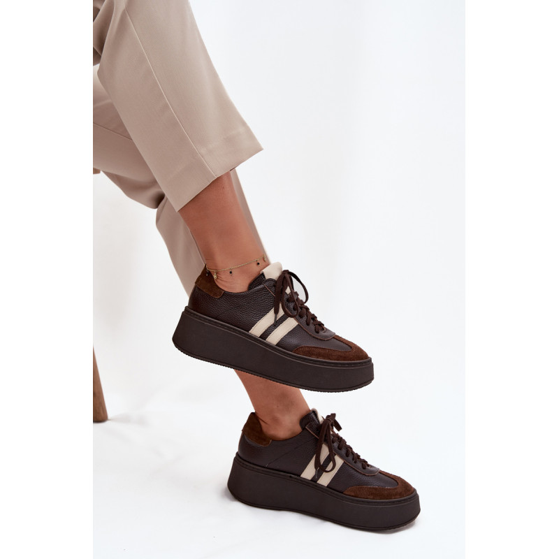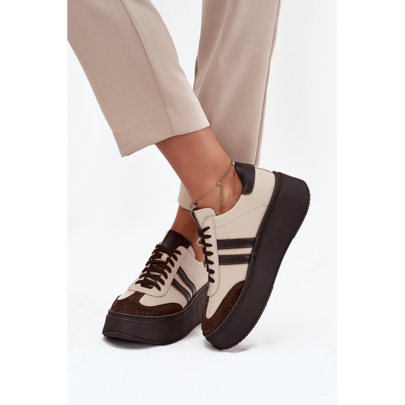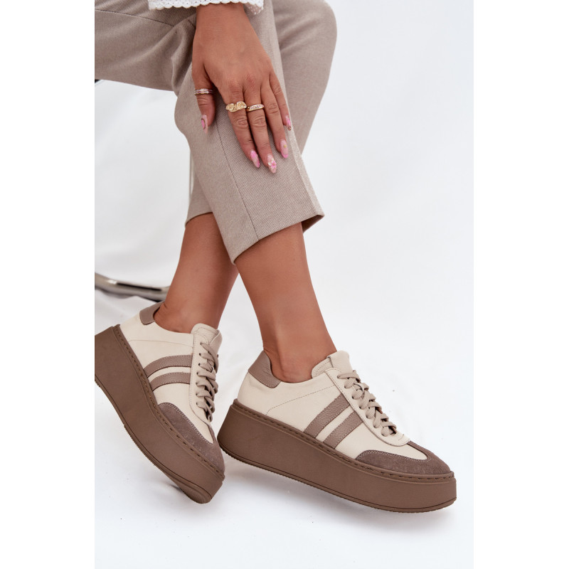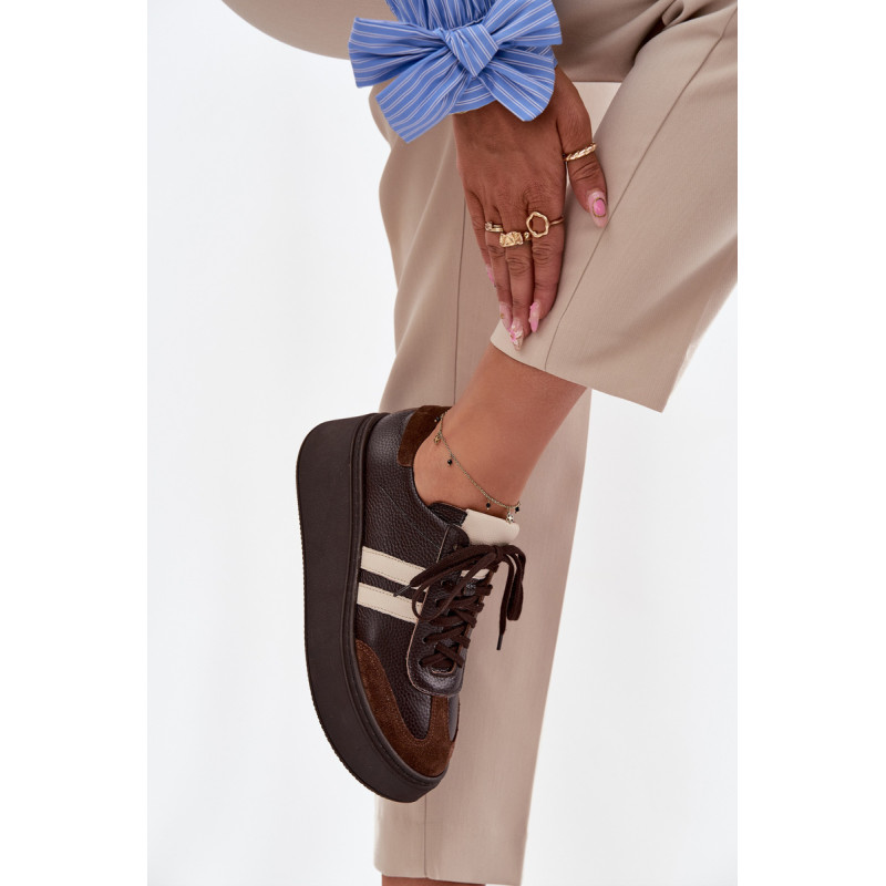 Moteriški sportbačiai, pagaminti iš natūralios odos ir zomšinių įdėklų derinio, yra šiuolaikinė pasiūlymas, kuris jungia stilių su patogumu. Dėka skirtingų medžiagų tekstūrų derinio, batai atrodo itin madingi ir patraukia dėmesį detalėmis. Pastatyti ant platformos, jie ne tik užtikrina komfortą ir stabilumą vaikščiojimo metu, bet ir priduria keletą centimetrų aukščio, subtiliai lieknindami siluetą. Šis modelis tinka tiek sportiniams, tiek kasdieniams stiliams ir yra puikus kasdienės aprangos papildymas. Šios avalynės leis jaustis laisvai, madingai ir moteriškai. Renkantis dydį, prašome vadovautis dydžių lentele. Renkantis dydį, vadovaukitės dydžių lentele.