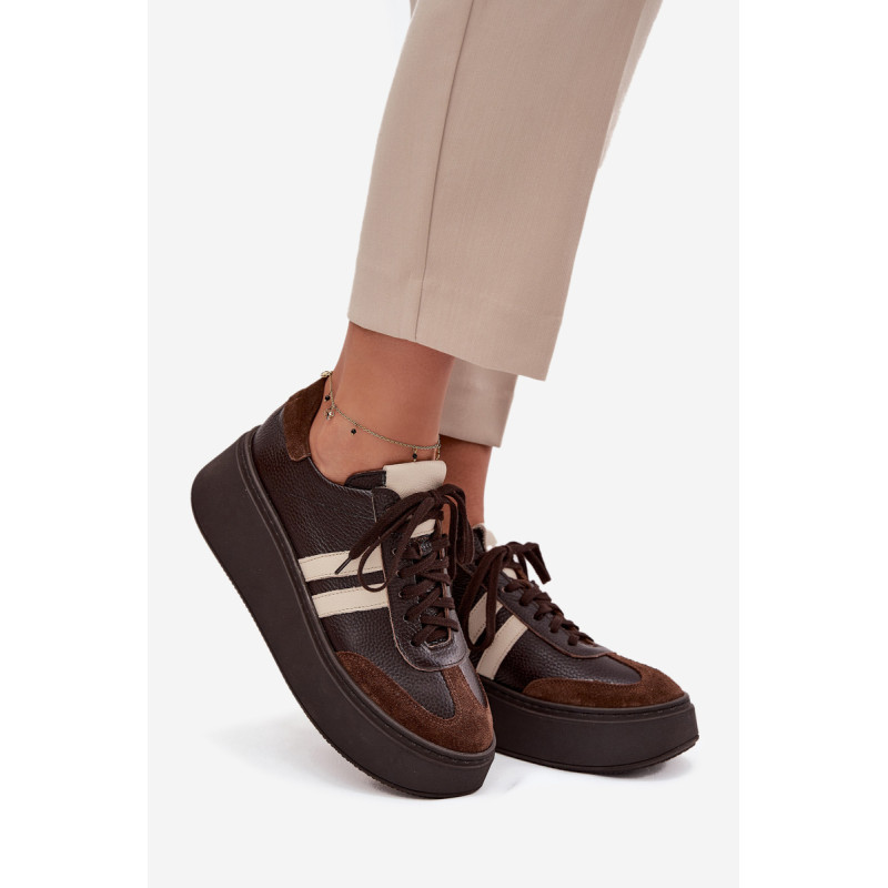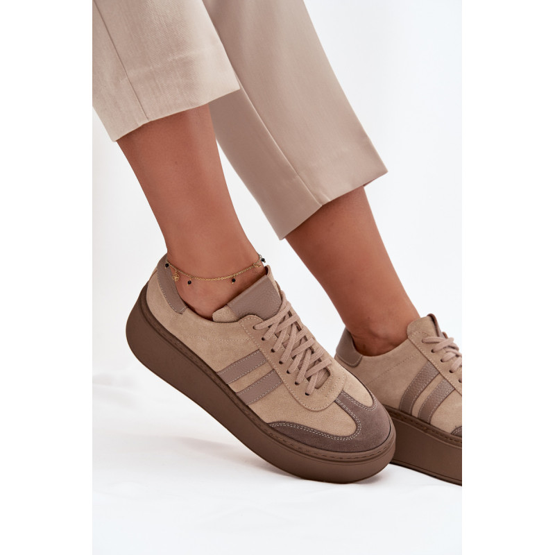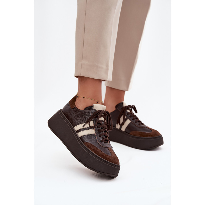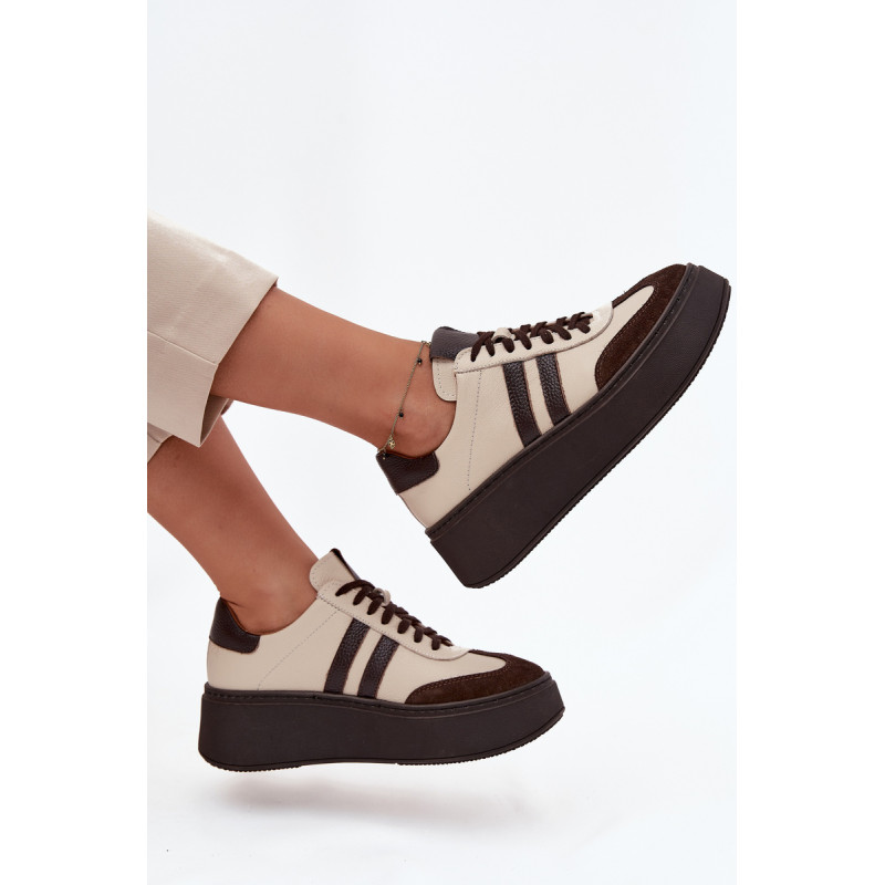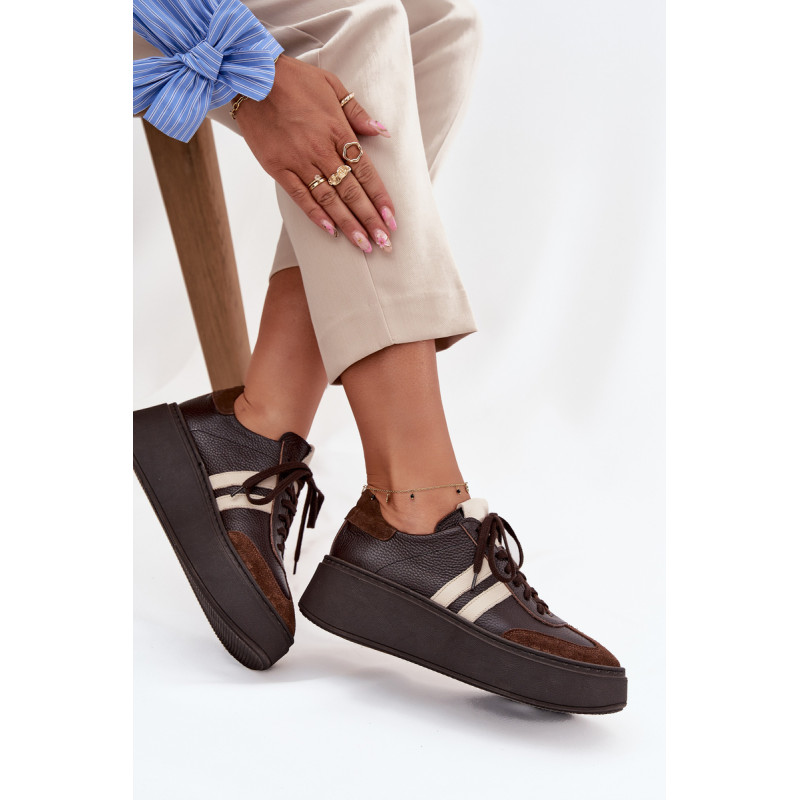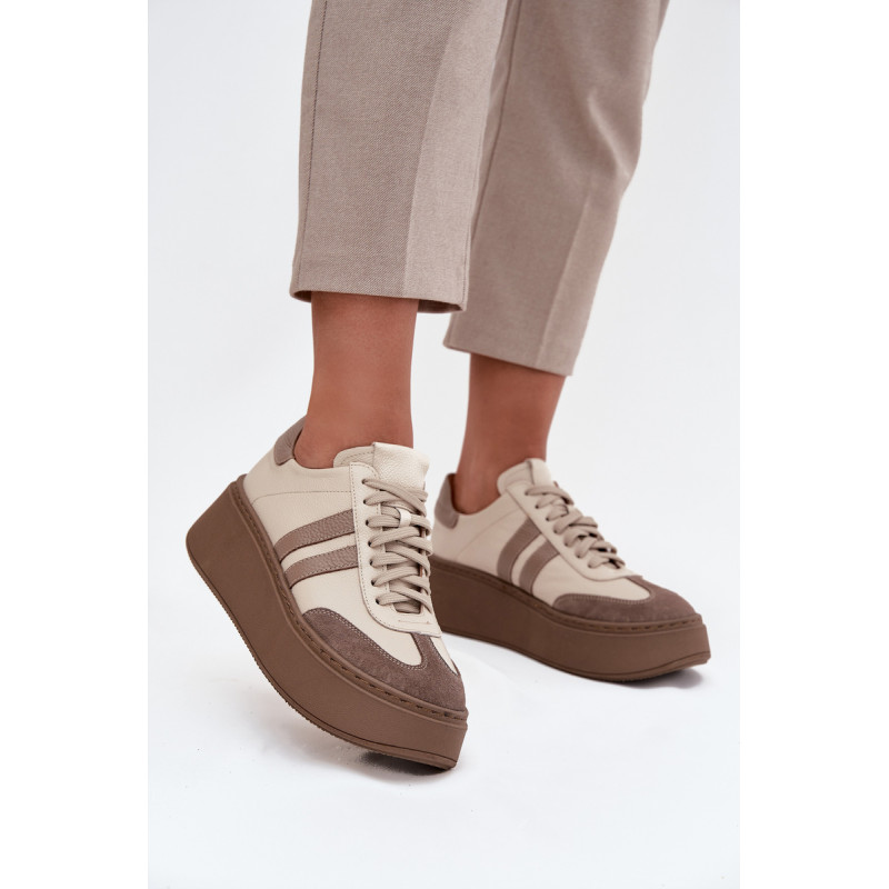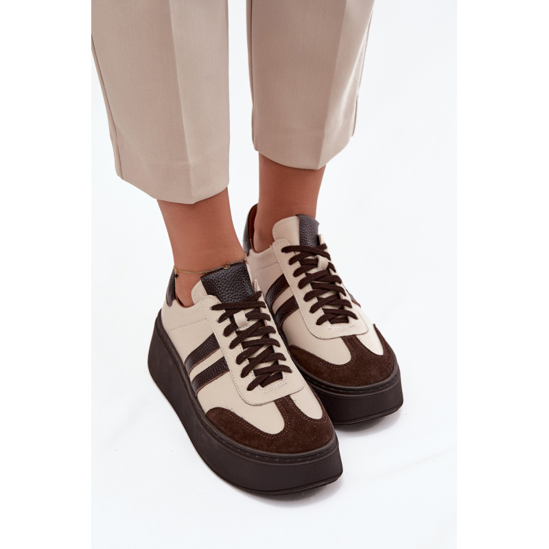 Moteriški sportbačiai, pagaminti iš natūralios odos ir zomšinių įdėklų derinio, yra šiuolaikinė pasiūlymas, kuris jungia stilių su patogumu. Dėka skirtingų medžiagų tekstūrų derinio, batai atrodo itin madingi ir patraukia dėmesį detalėmis. Pastatyti ant platformos, jie ne tik užtikrina komfortą ir stabilumą vaikščiojimo metu, bet ir priduria keletą centimetrų aukščio, subtiliai lieknindami siluetą. Šis modelis tinka tiek sportiniams, tiek kasdieniams stiliams ir yra puikus kasdienės aprangos papildymas. Šios avalynės leis jaustis laisvai, madingai ir moteriškai. Renkantis dydį, prašome vadovautis dydžių lentele. Renkantis dydį, vadovaukitės dydžių lentele.