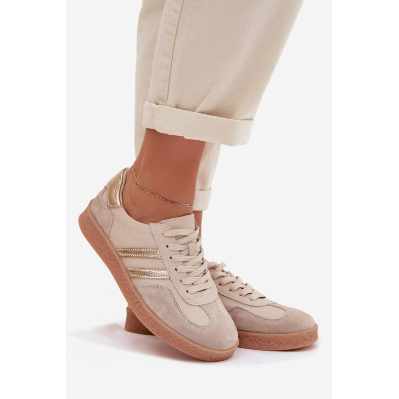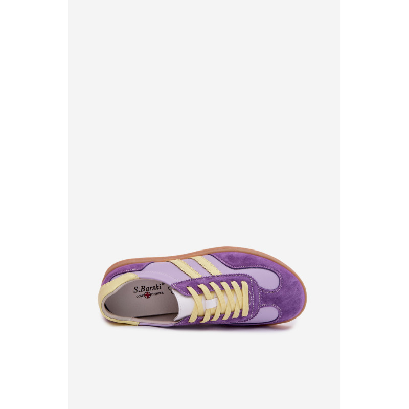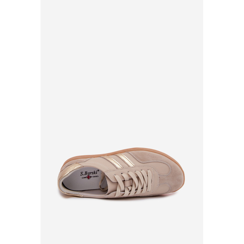 Moteriški sneakers iš markės S.Barski, pagaminti iš natūralios odos, yra stilingas ir patogus kasdienis pasirinkimas. Kruopščiai apdirbta viršutinė dalis pabrėžia aukštą modelio kokybę, o du dirželiai šonuose suteikia jam modernų, sportišką išvaizdą. Batai turi Comfort Shoes įdėklą, kuris užtikrina tinkamą pėdos palaikymą ir komfortą net ir ilgą dėvėjimą. Tai universalus modelis, kuris puikiai papildo kasdienius miesto stilius. Renkantis dydį, vadovaukitės dydžių lentele.