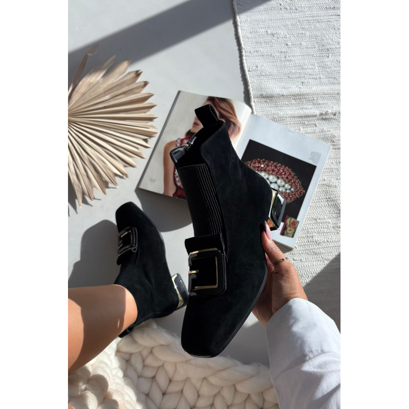 Elegantiški moteriški aulinukai iš natūralaus zomšos odos, sujungiantys stilių ir patogumą. Modelis su žemu kulnu užtikrina patogumą visą dieną, o švelnus šilumos sluoksnis leidžia juos dėvėti šiltesnėmis dienomis. Šonu esantis užtrauktukas palengvina užsidėjimą, o kvadratinė nosis suteikia modernų įvaizdį. Priekinis dekoratyvinis elementas patraukia dėmesį ir pabrėžia elegantišką batų išvaizdą. Šis universalus modelis yra puikus biure, susitikimuose ir vakarinėse išvykose, kai norite atrodyti elegantiškai ir jaustis patogiai. Renkantis dydį, prašome vadovautis dydžių lentele. Renkantis dydį, vadovaukitės dydžių lentele.