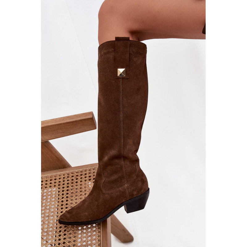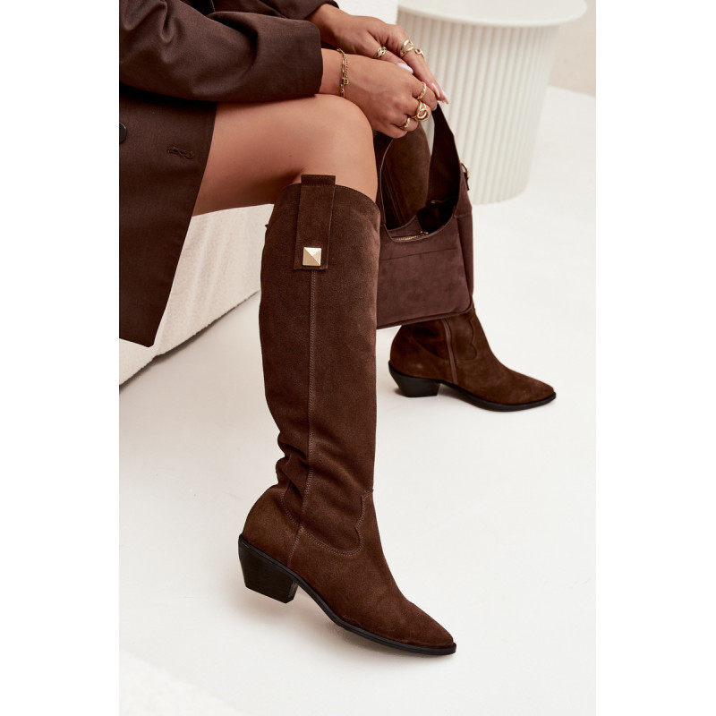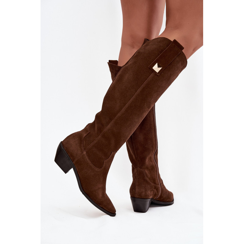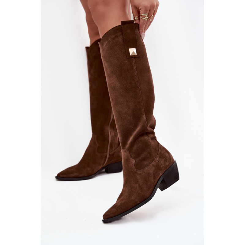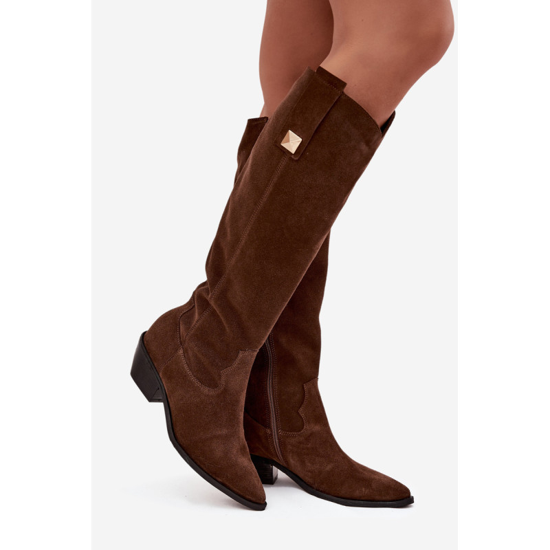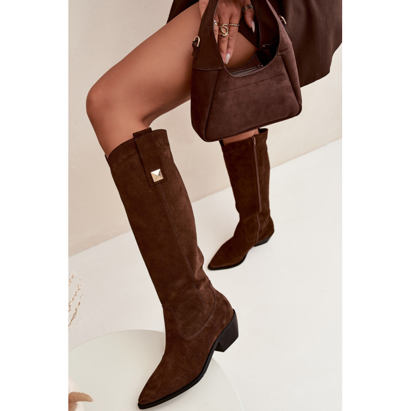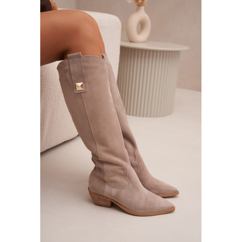 Moteriški kovbojiniai batai, pagaminti iš aukštos kokybės natūralaus zomšos, yra klasikos, komforto ir stiliaus derinys. Minkštas, malonus liesti medžiaga puikiai pritaiko koją, užtikrindama patogumą ir elegantišką išvaizdą. Užuolaida užsegama modelis yra praktiškas ir patogus naudoti, todėl lengvai užsidedami ir nuimami batai. Batai yra iškloti veltiniu, kuris garantuoja šilumą ir patogumą šaltomis dienomis, o kirpimo kulnas suteikia jiems originalų, išskirtinį vaizdą, įkvėptą western stiliaus. Aštrios nosys vizualiai ilgina kojas, suteikdamos siluetui lengvumo ir moteriškumo žavesio. Šių kovbojinių batų elegantiškas dizainas puikiai tinka daugeliui aprangos derinių – jie yra ideali papildymas tiek lengviems suknelėms ir sijonams, tiek prigludusiems siauriems džinsams. Prašome naudotis dydžių lentele, renkantis dydį. Renkantis dydį, vadovaukitės dydžių lentele.