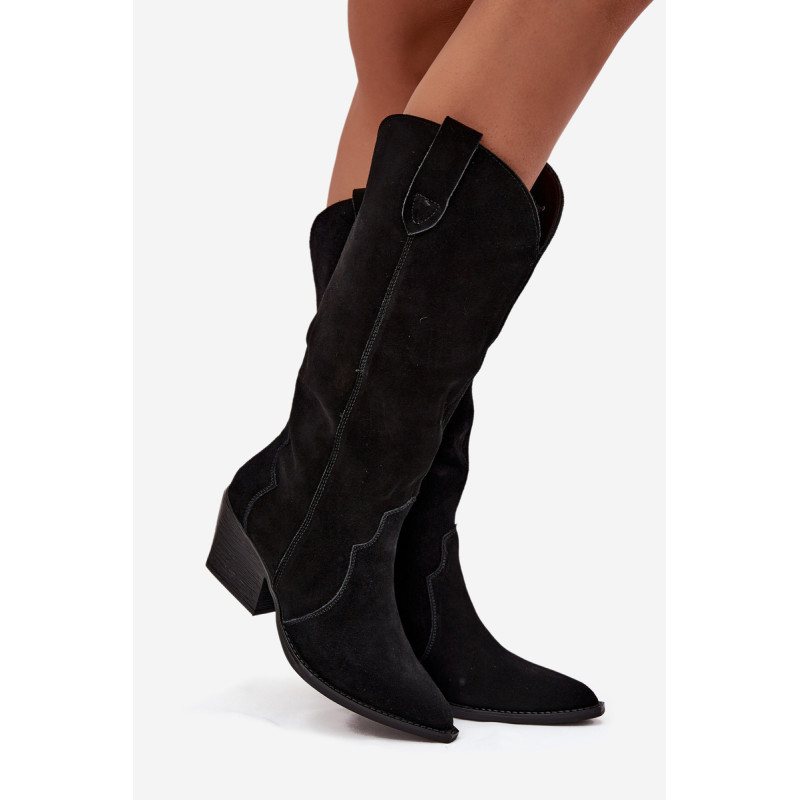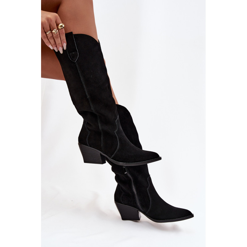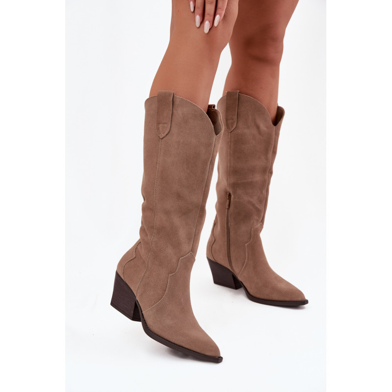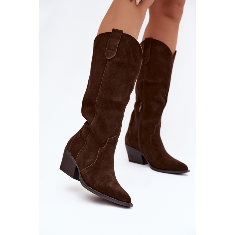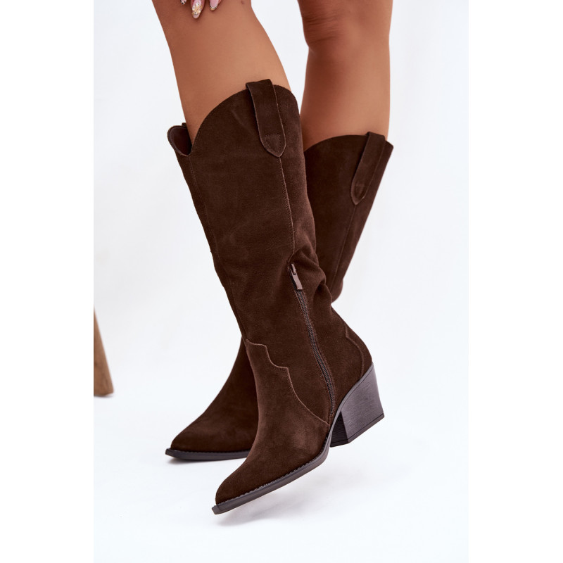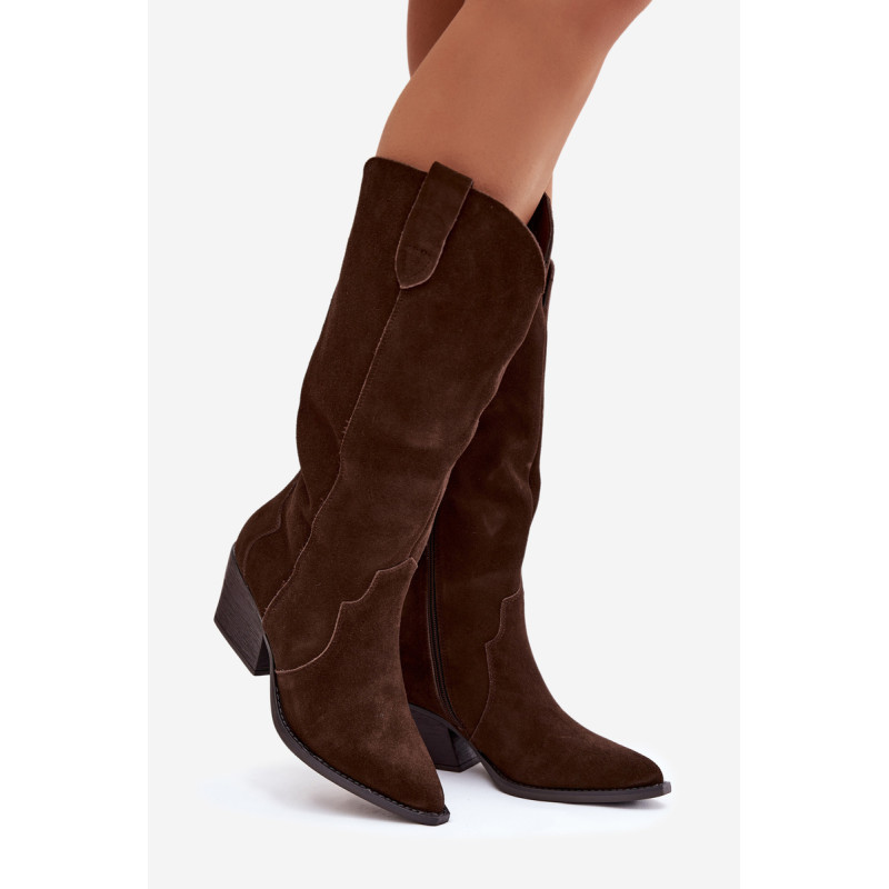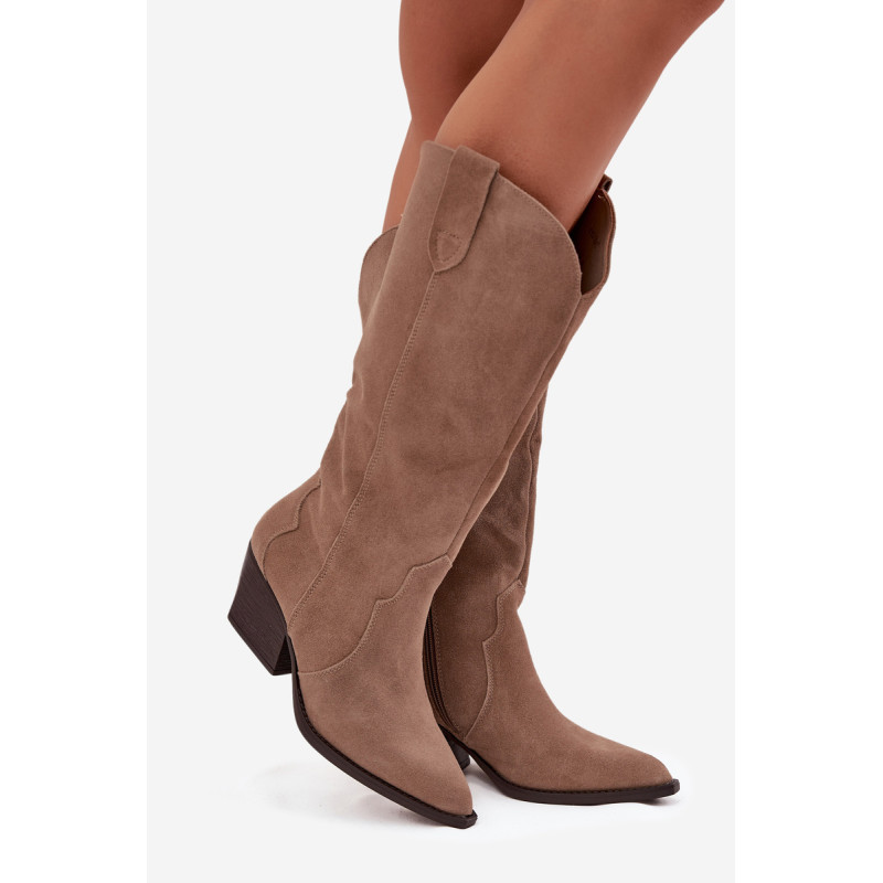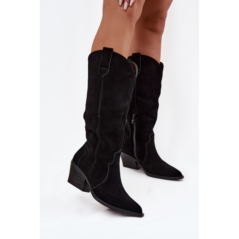 Aukštos kokybės natūralaus zomšaus kaubojų bateliai yra puikus pasirinkimas moterims, vertinančioms eleganciją ir madingą stilių. Jų unikalus dizainas, įkvėptas vakarietiško stiliaus, daro juos išskirtiniu kiekvieno įvaizdžio elementu. Modelis su lengvu įsispėjimu ir užtrauktuku apatinėje blauzdos dalyje, palengvina užsidėjimą ir nusiėmimą, išlaikant elegantišką siluetą. Sumontuoti ant stabilios, šiek tiek siaurėjančios kulnos, jie užtikrina patogumą vaikščiojant ir subtiliai ilginą kojas, suteikdami figūrai lengvumo. Aštrios nosys pabrėžia moterišką avalynės charakterį ir suteikia jai elegantišką išvaizdą. Batų vidus išklotas minkšta pamušalu, kuris garantuoja šiluminį komfortą net ir šaltesnėmis dienomis. Puikiai tinka derinti su suknelėmis, sijonais ir siaurais džinsais. Renkantis dydį, prašome vadovautis dydžių lentele. Renkantis dydį, vadovaukitės dydžių lentele.