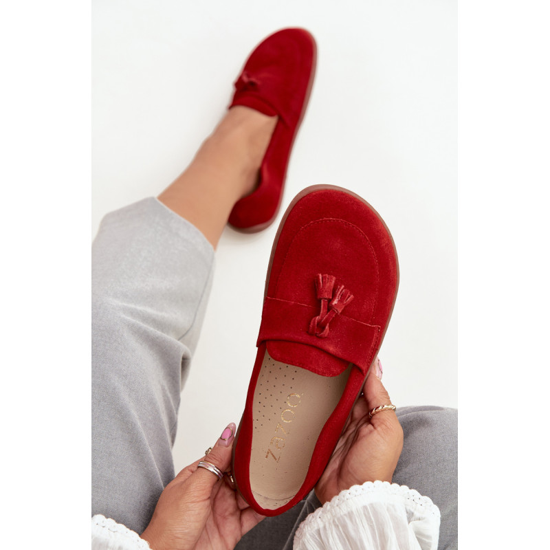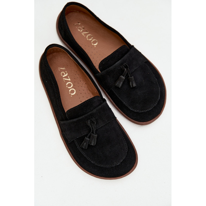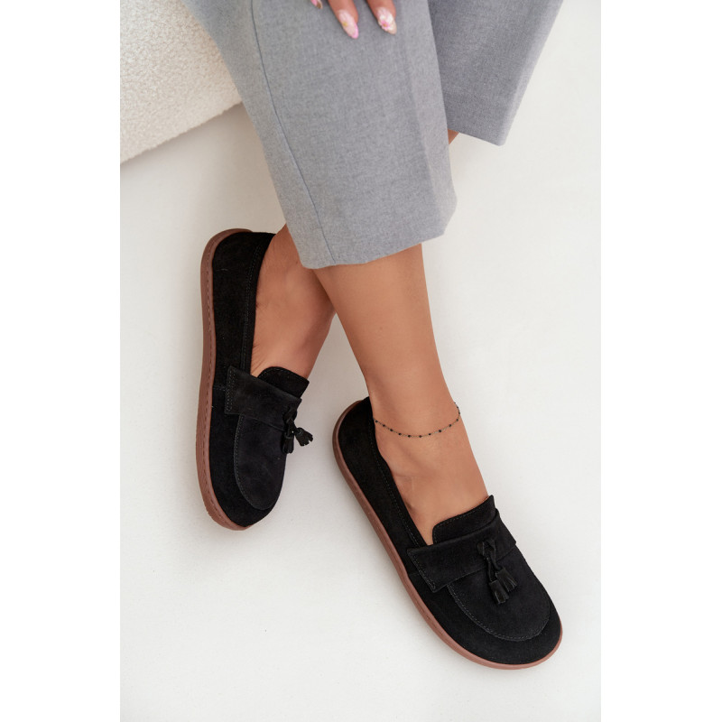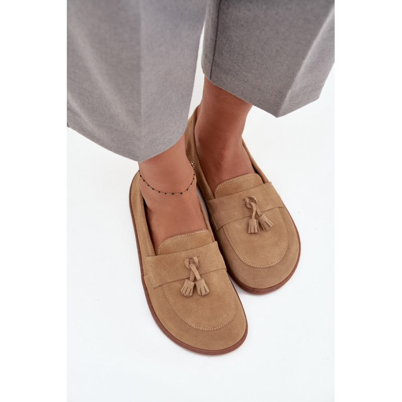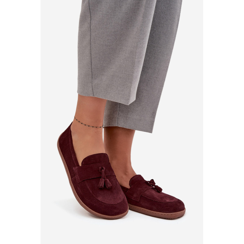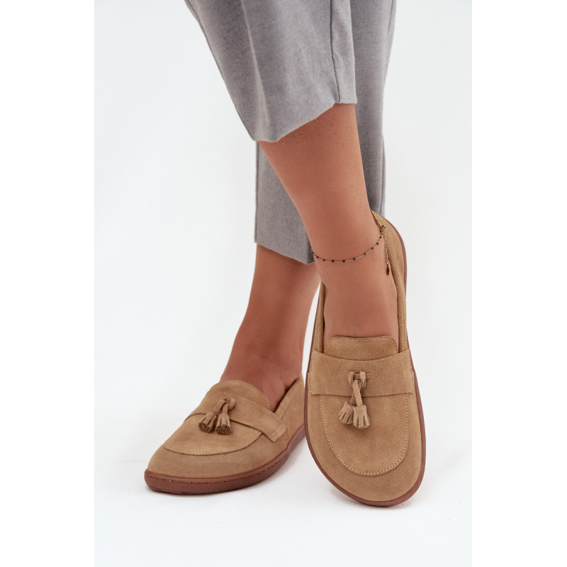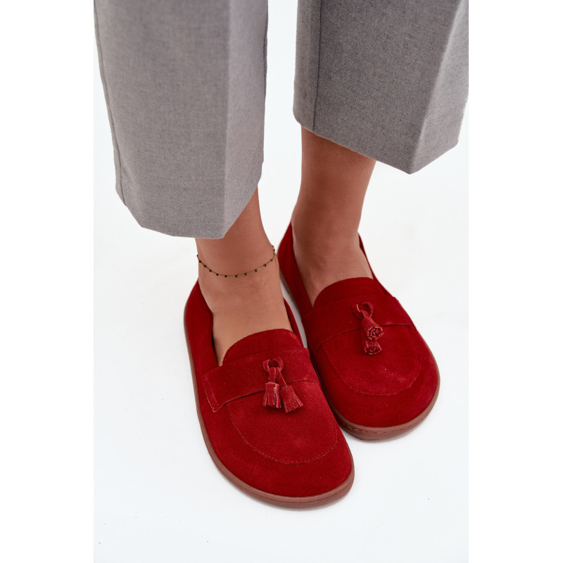 Moteriški barefoot stiliaus mokasinai yra pasiūlymas tiems, kurie vertina natūralų komfortą ir laisvę judėti. Pagaminti iš minkšto, natūralaus zomšos odos, jie puikiai prisitaiko prie pėdos formos, suteikdami malonią lengvumo ir patogumo jausmą dėvint. Priekyje batai papuošti juosta su dviem kutais, kurie suteikia subtilaus žavesio ir stiliaus charakterio. Tai ideali avalynė kasdieniam naudojimui – tinka tiek laisviems, casual stiliams, tiek iškilmingesnėms aprangoms. Renkantis dydį, prašome vadovautis dydžių lentele. Renkantis dydį, vadovaukitės dydžių lentele.