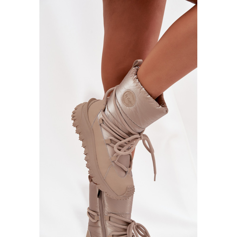 Moteriški Lee Cooper sniego batai sujungia stilių, kokybę ir patogumą, idealiai tinkantys žiemą. Pagaminti iš natūralios odos ir patvarios tekstilės medžiagos, jie užtikrina puikią apsaugą nuo šalčio ir drėgmės, tuo pačiu atrodo moderniai ir madingai. Modelis įrengtas ant tvirtos guminės platformos, kuri garantuoja stabilumą ir puikų sukibimą su paviršiumi. Batai viduje iškloti minkštu kailiu, kuris apgaubia pėdas šiluma ir užtikrina aukštą komfortą net ir šaltomis dienomis. Sniego batai turi užtrauktuką lengvam užsidėjimui ir storą dekoratyvinį raištelį, kuris ne tik atlieka praktinę funkciją, bet ir suteikia charakterio. Tinka žieminėms pasivaikščiojimams, kalnų išvykoms ar kasdieniam stiliui šaltomis dienomis. Pasirinkdami dydį, vadovaukitės dydžių lentele. Renkantis dydį, vadovaukitės dydžių lentele.