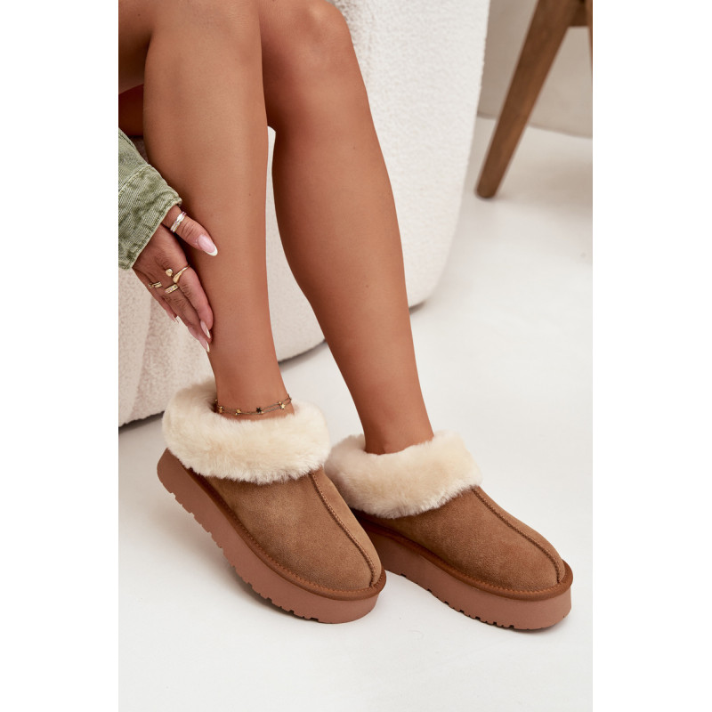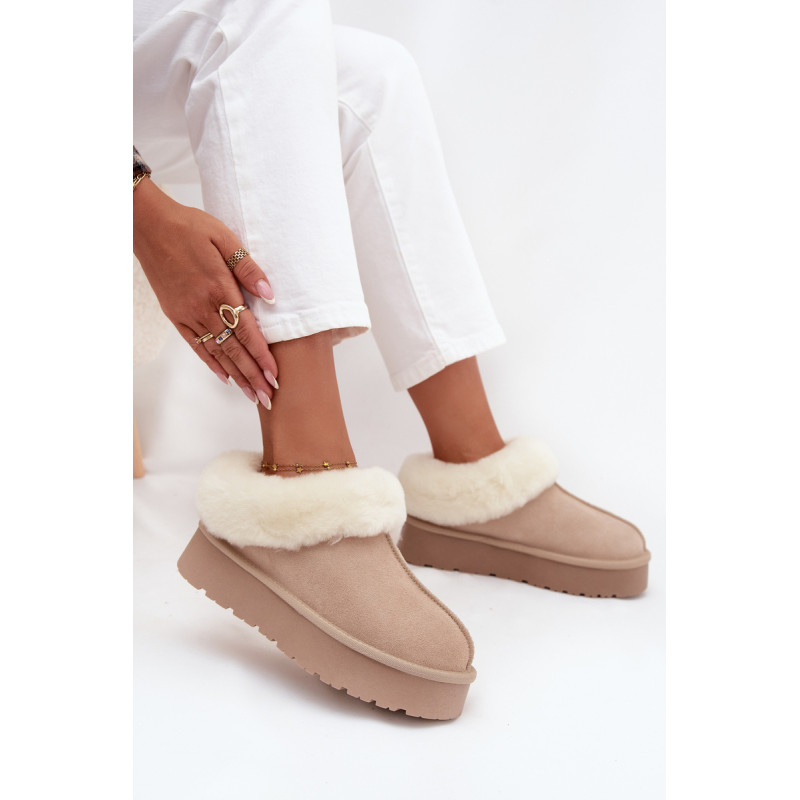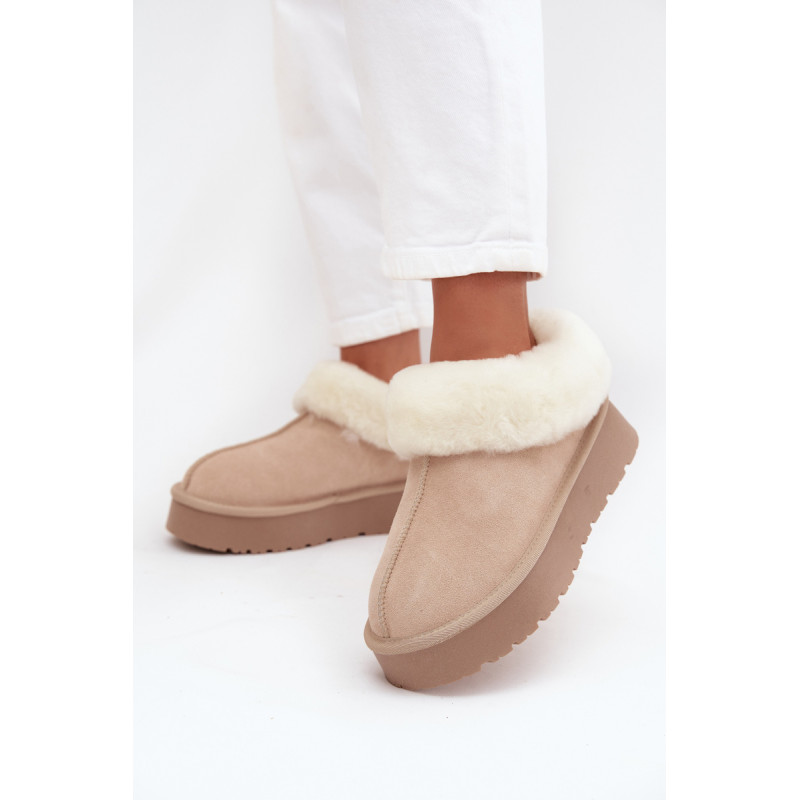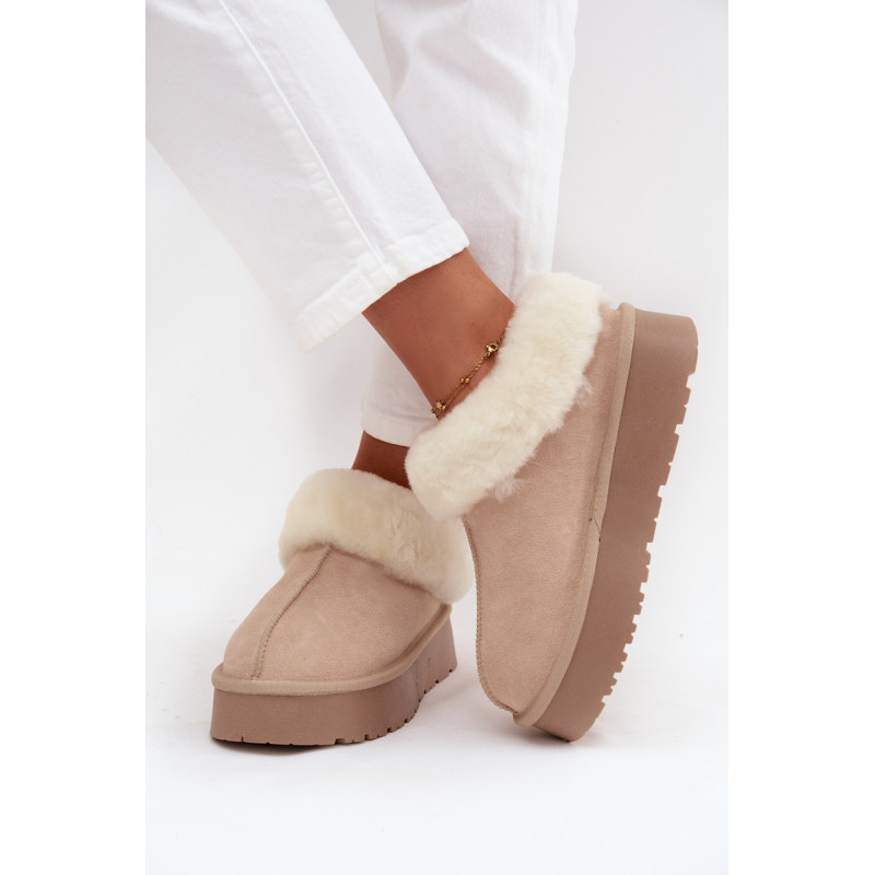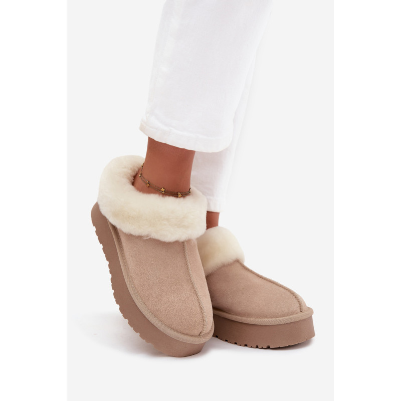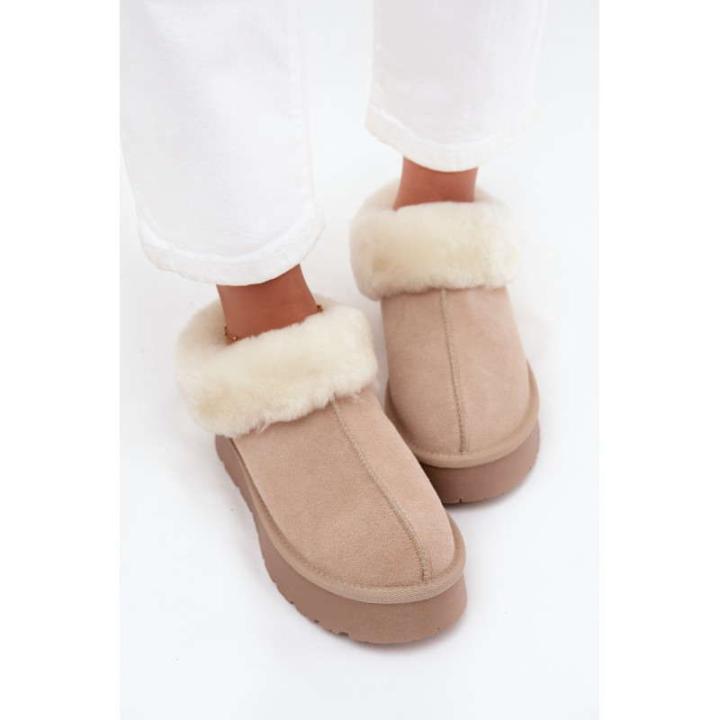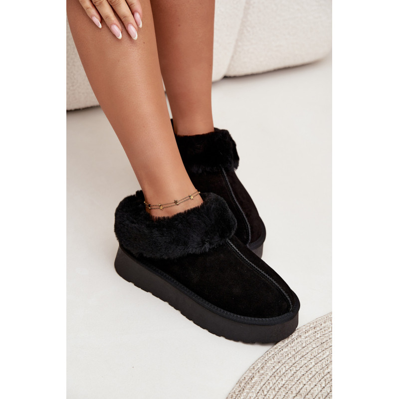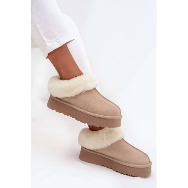 Moteriški sniego batai, pagaminti iš natūralios zomšos odos. Įrengti ant platformos. Viršutinė batų dalis puošia pūkuota kailiu, suteikiančiu jiems unikalų charakterį. Šie madingi ir stilingi batai puikiai tiks žiemai, užtikrinantys komfortą ir šilumą. Renkantis dydį, vadovaukitės dydžių lentele.