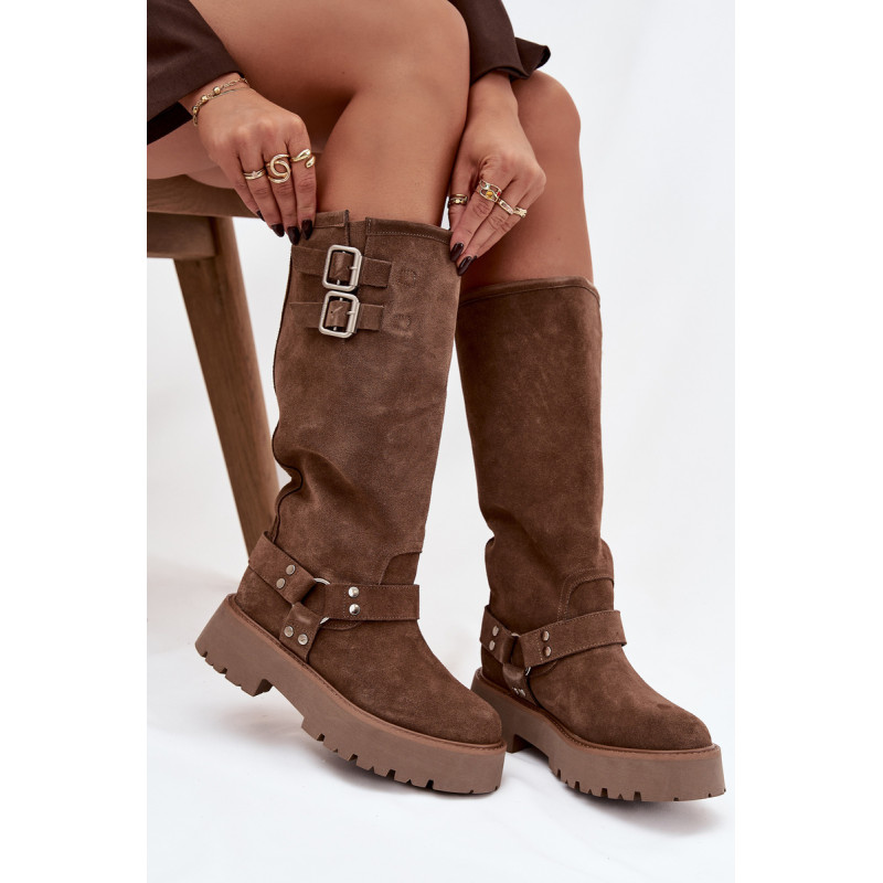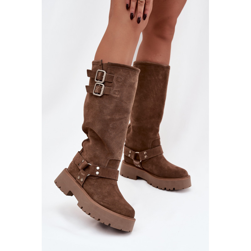 Stilingi moteriški auliniai batai iš natūralaus zomšiaus, prekės ženklo Big Star. Modelis su apmušalu puikiai tiks šaltomis dienomis, užtikrindamas patogumą ir šilumą. Batai užsegami be raištelių, todėl lengvai užsidedami, o dekoratyvinės sagtelės ir metalinis žiedas jiems suteikia charakterio ir šiek tiek roko stiliaus. Pastatyti ant stabilios platformos, jie užtikrina tvirtą žingsnį ir madingą išvaizdą. Ideali pasirinkimo moterims, kurios mėgsta išsiskirti stiliumi, nepraradusios patogumo ir funkcionalumo. Renkantis dydį, vadovaukitės dydžių lentele.