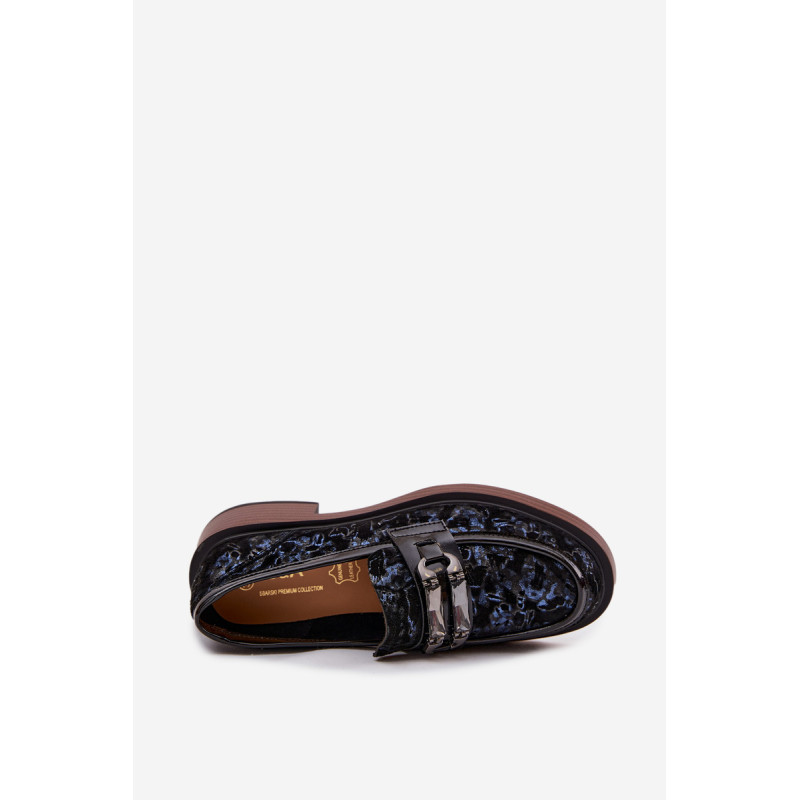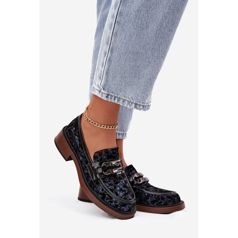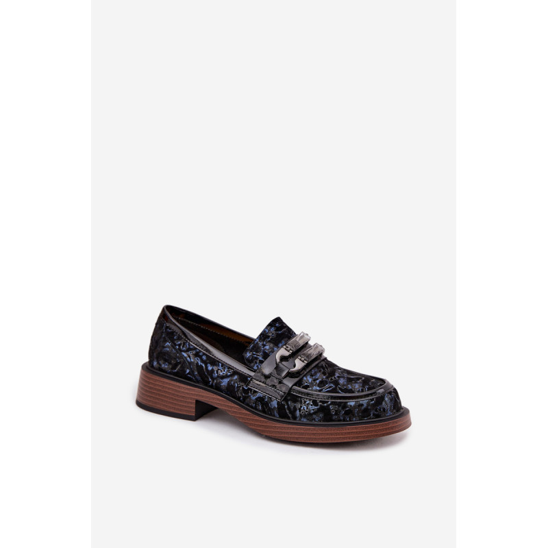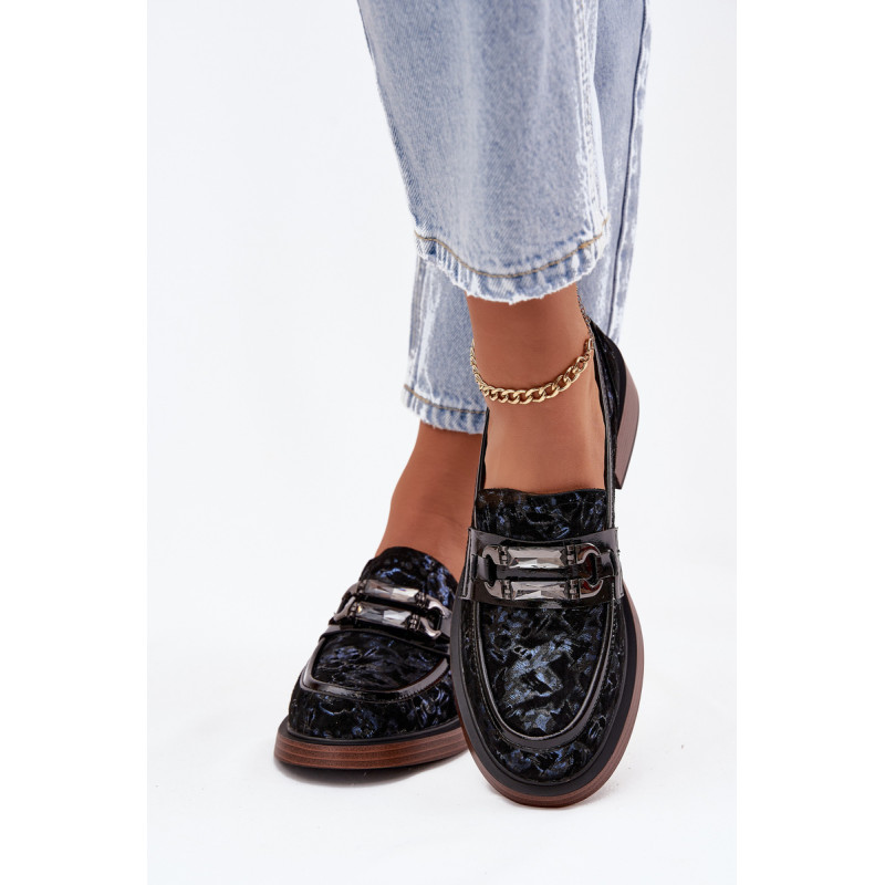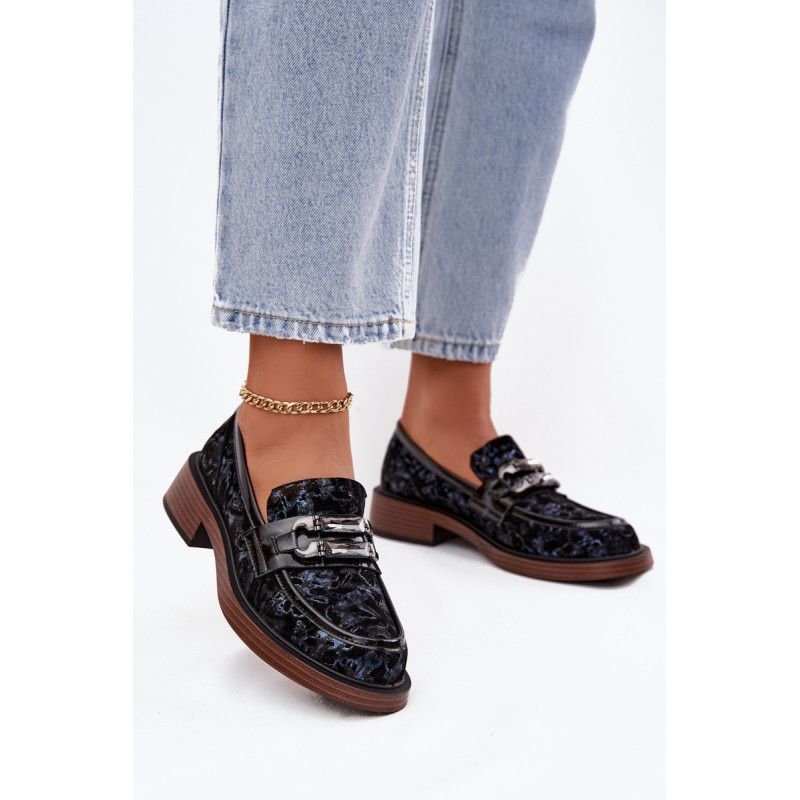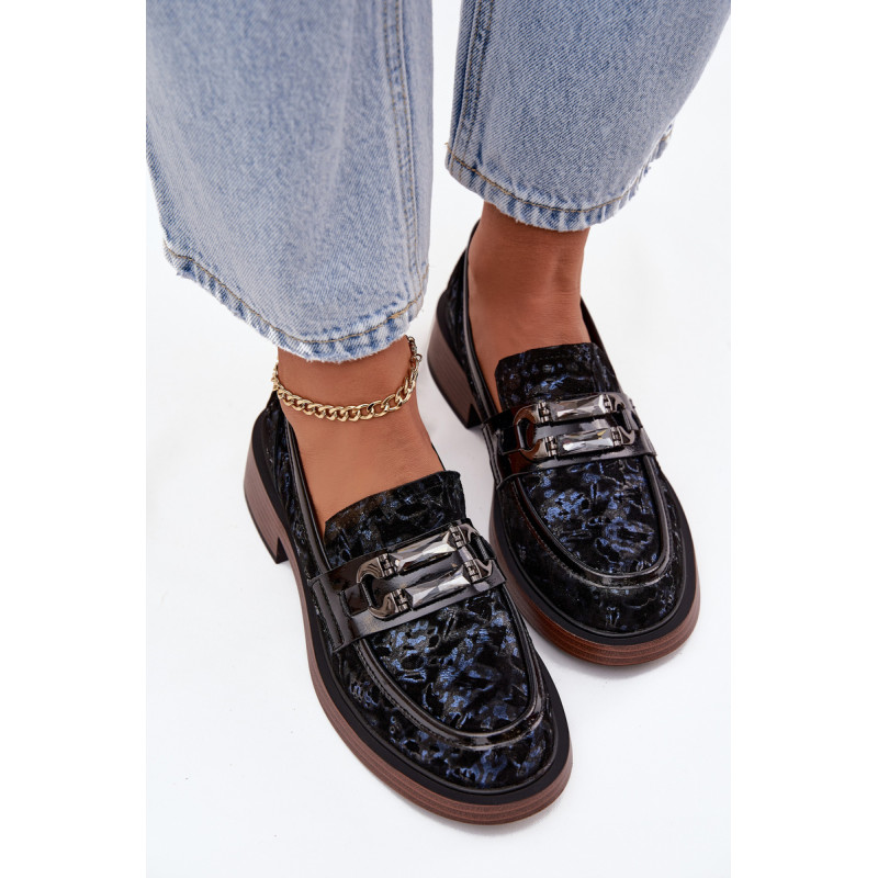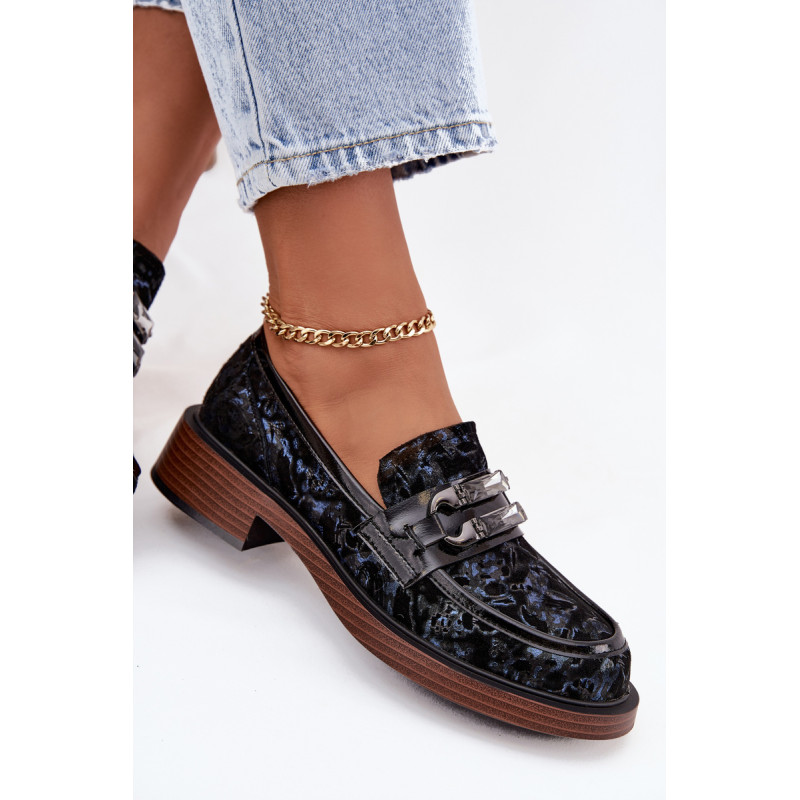 Moteriški mokasinai, pagaminti iš natūralaus zomšos odos, yra derinys klasikinės elegancijos ir patogumo. Priekyje yra dekoratyvinis detalė su kristalais, kuris suteikia jiems išskirtinį charakterį ir išskiria juos bet kokiame stiliuje. Uždedami ant žemo kubo kulno, kuris užtikrina stabilumą ir visos dienos komfortą. Minkšta įdėklas prisitaiko prie kojos formos, užtikrindamas patogumą net ir ilgą laiką nešiojant. Šie mokasinai yra puikus pasirinkimas elegantiškoms stilizacijoms, suteikdami joms klasės ir moteriškumo akcentą. Renkantis dydį, vadovaukitės dydžių lentele.