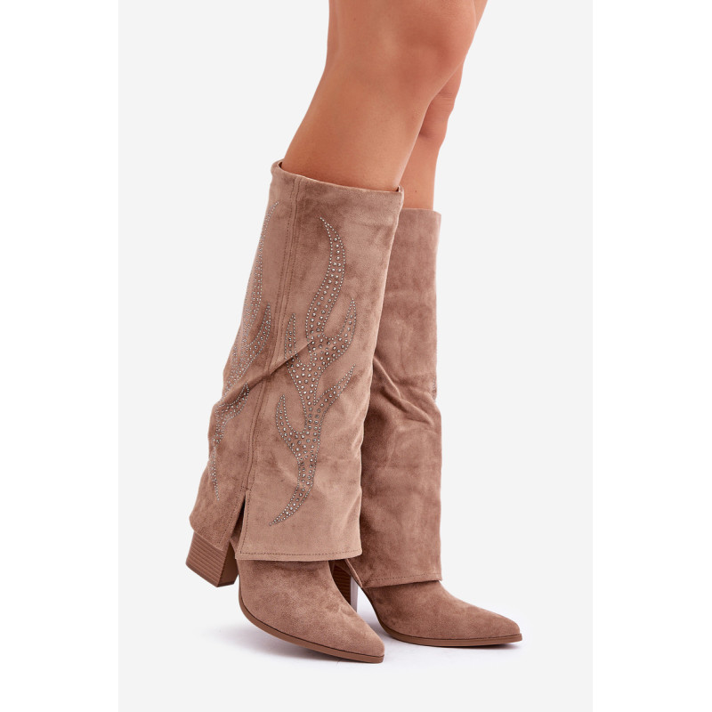 Moteriški auliniai batai pagaminti iš ekologiškos zamšos. Slip-on modelis su papildomu užtrauktuku apačioje, kad būtų patogu užsidėti ir nusivilkti. Smailūs pirštai vizualiai pailgina kojas, o apvyniota šlaunies dalis su puošybos elementais suteikia unikalų charakterį. Stilingi ir išskirtiniai, puikiai tinkantys madingoms įvaizdžiams. Renkantis dydį, vadovaukitės dydžių lentele.