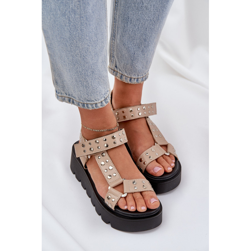 Lengvi, dekoruoti moteriški sandalai iš ekologiškos odos yra puikus pasirinkimas šiltoms dienoms. Įrengti ant platformos, jie suteikia komfortą ir stabilumą, pridėdami lengvumo kiekvienam žingsniui. Uždaryti su Velcro, kas palengvina jų užsidėjimą ir pritaikymą pėdai. Papuošimai ant viršaus suteikia jiems subtilų, madingą charakterį. Šis modelis puikiai papildys jūsų vasaros stilius! Renkantis dydį, vadovaukitės dydžių lentele.
