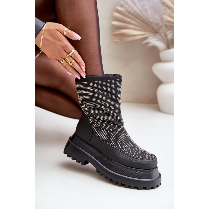 Sniego batai, pagaminti iš medžiagų, atsparių šalčiui ir vėjui, yra puikus pasirinkimas pačioms reikliausioms žiemos dienoms. Įtvirtinti ant plokščio kulno platformos, jie užtikrina stabilumą ir komfortą vaikštant po snieguotomis vietomis. Blizganti viršutinė dalis su dekoratyviniais akcentais suteikia jiems madingą, dėmesį pritraukiančią charakteristiką. Viršutinė dalis baigta praktiškais raišteliais, kurie efektyviai apsaugo nuo vėjo ir sniego, užtikrindami papildomą šilumą. Šie stilingi sniego batai puikiai derina funkcionalumą su madinga išvaizda, tinka tiek miesto stiliams, tiek žiemos pasivaikščiojimams. Renkantis dydį, vadovaukitės dydžių lentele.