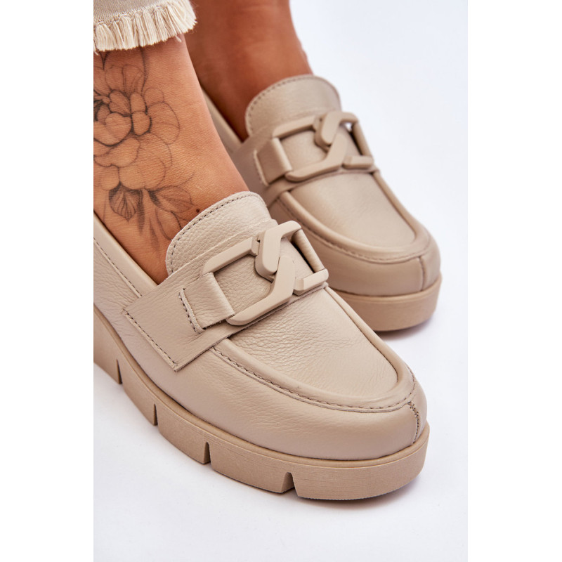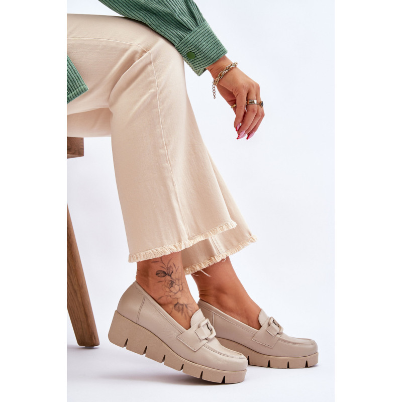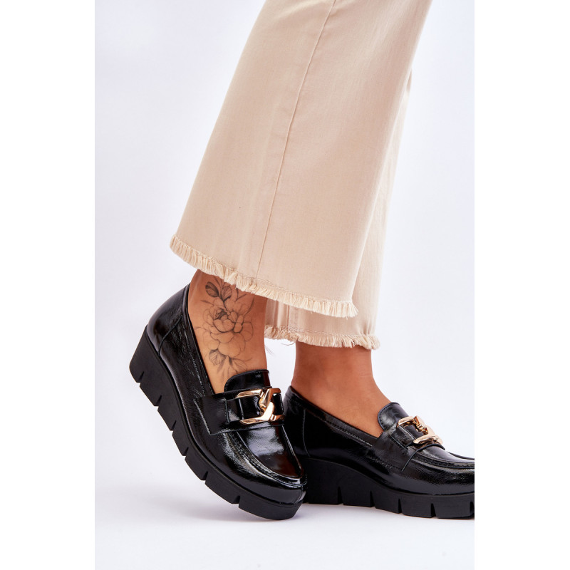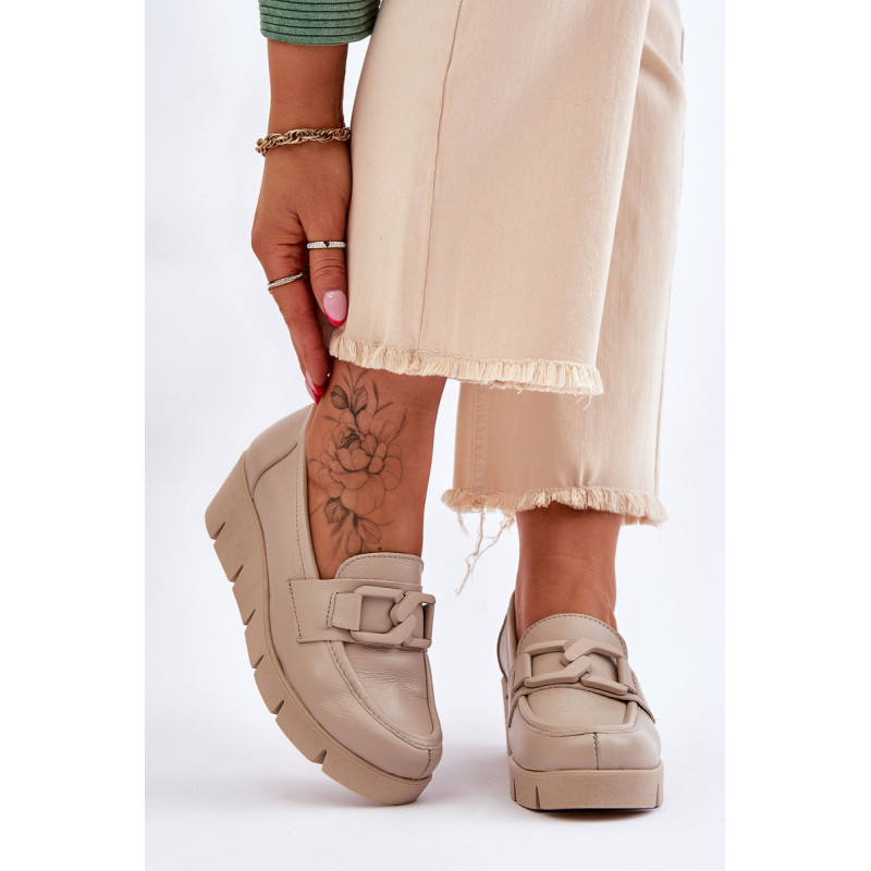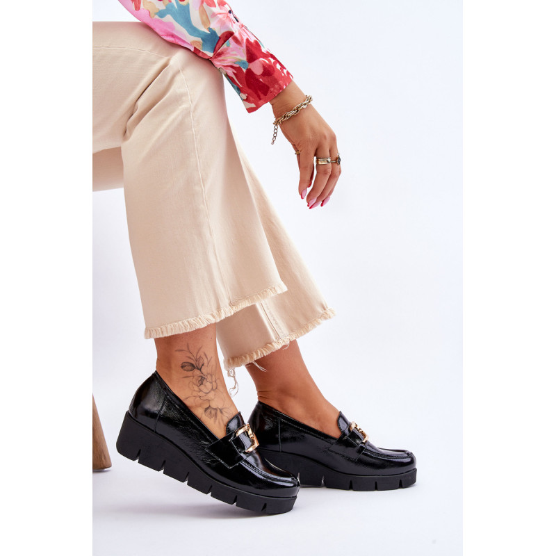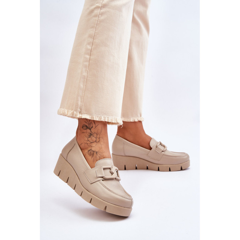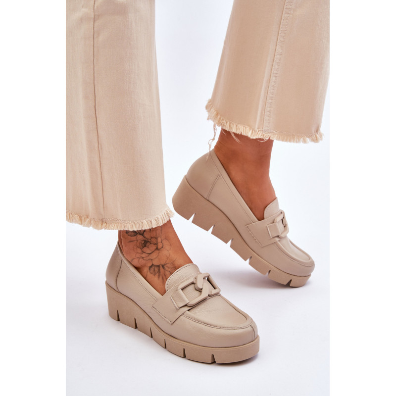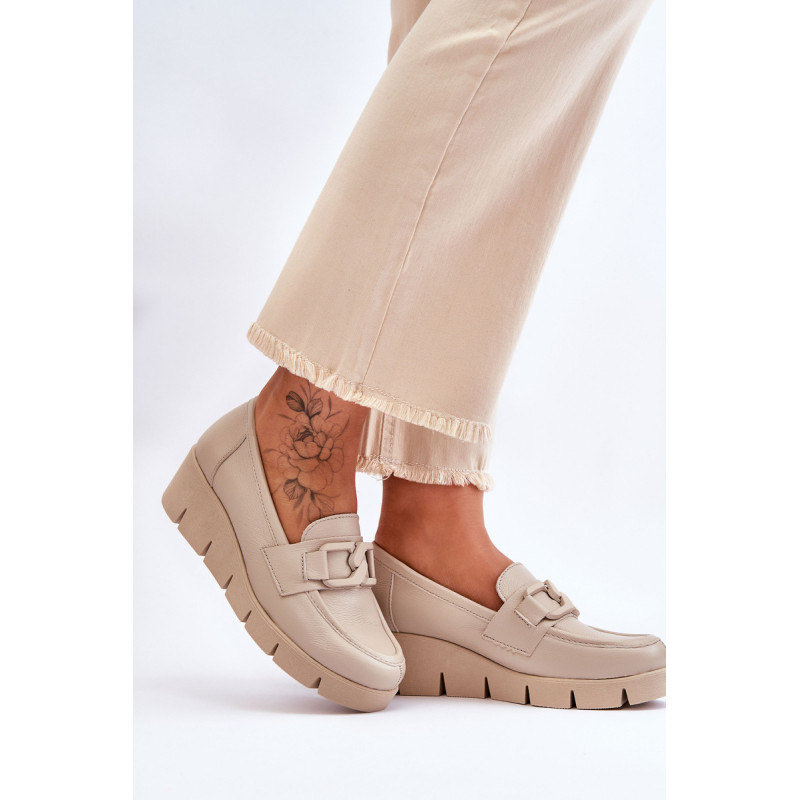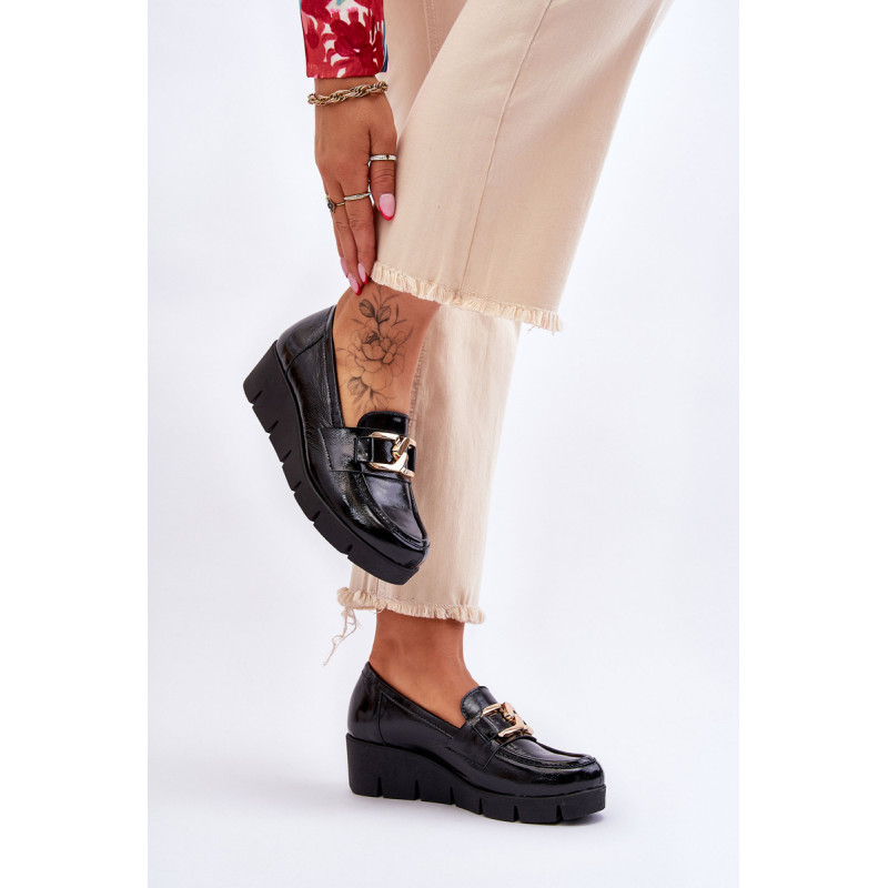 Patogūs moteriški batai yra pagaminti iš natūralios odos. Viršutinės dalies priekyje yra papuošimas. Šių batų kulno skaitiklis buvo sutvirtintas, o tai leis tinkamai stabilizuoti pėdą. Loaferiai montuojami ant pleišto ir platformos. Puikus modelis daugeliui stilių! Rinkdamiesi dydį, žiūrėkite dydžių lentelę.