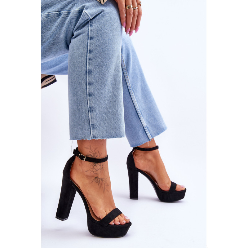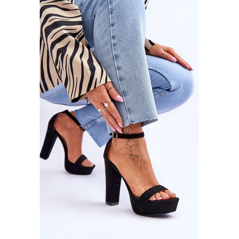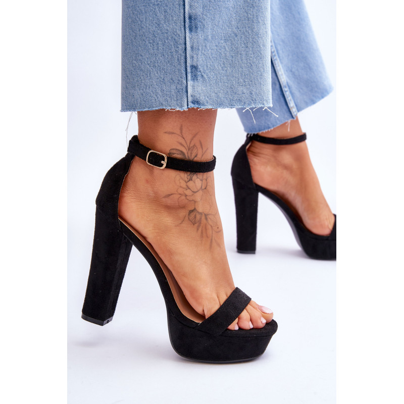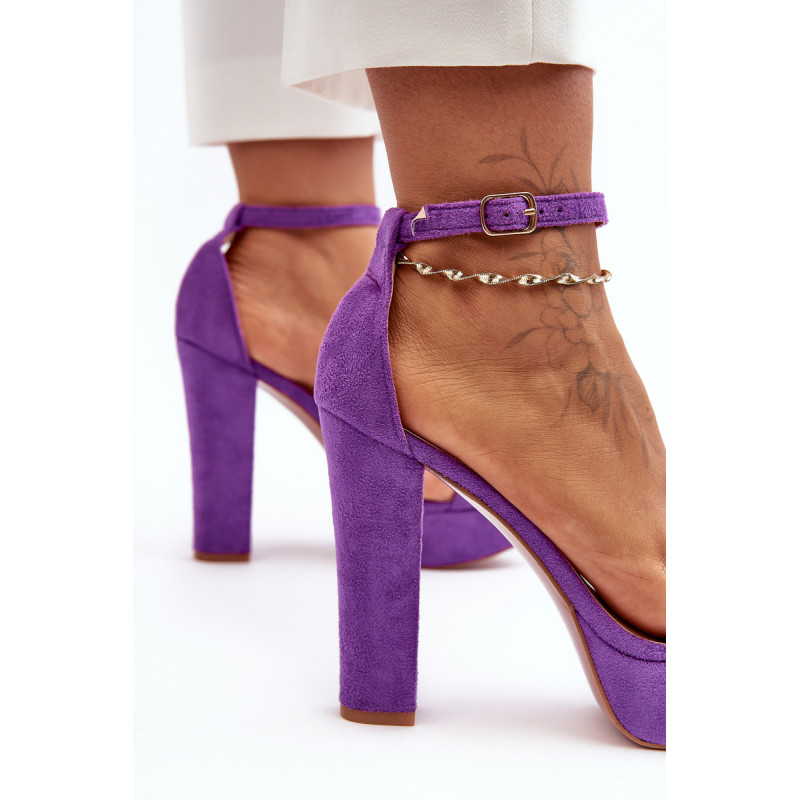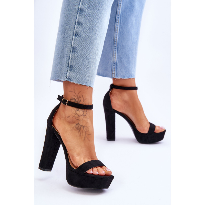 Klasikiniai sandalai yra pagaminti iš švelnaus prisilietimo ekologiškos zomšos. Šio modelio priekyje yra plonas dirželis, kad pėda neslystų. Sandalai statomi ant aukšto stulpelio kulno. Be to, sandalai turi šiek tiek sustiprintą kulno skaitiklį. Šis modelis užsegamas reguliuojamu sagties dirželiu. Rinkdamiesi dydį žiūrėkite dydžių lentelę.