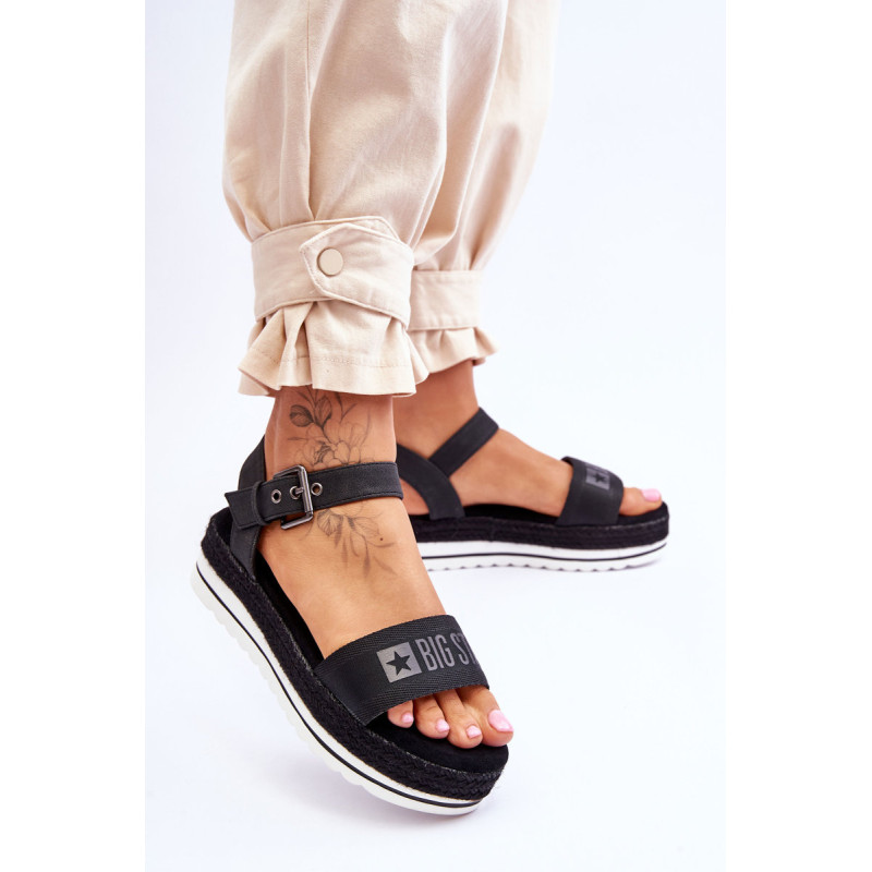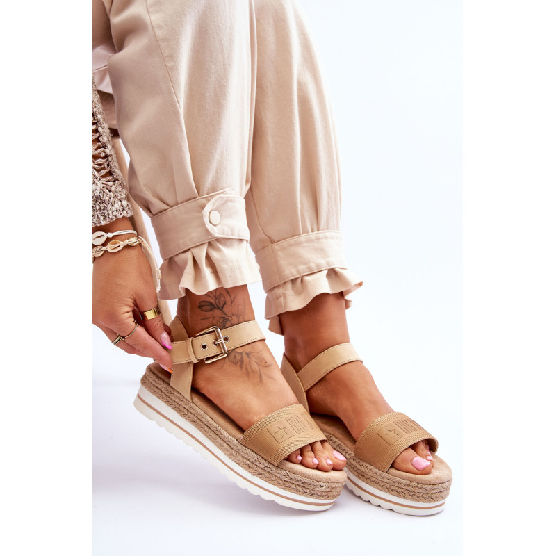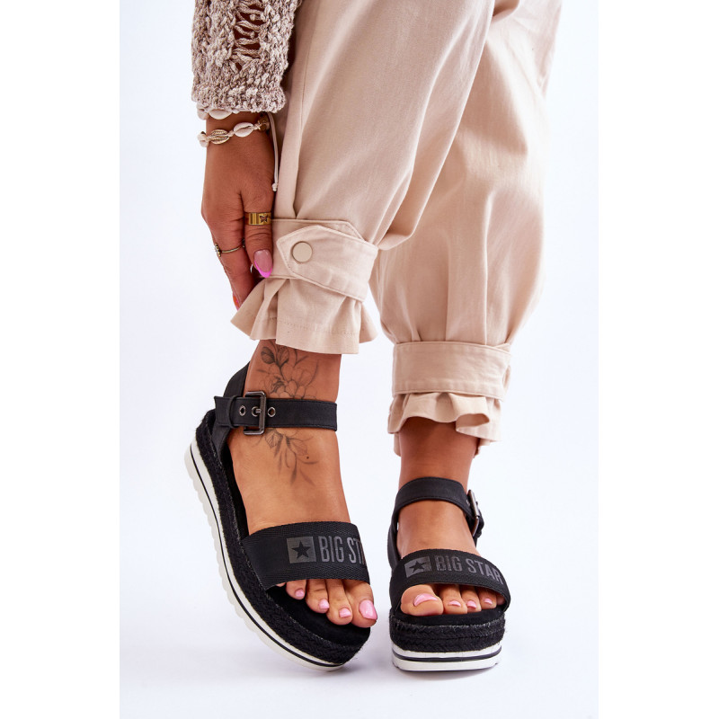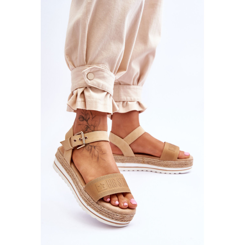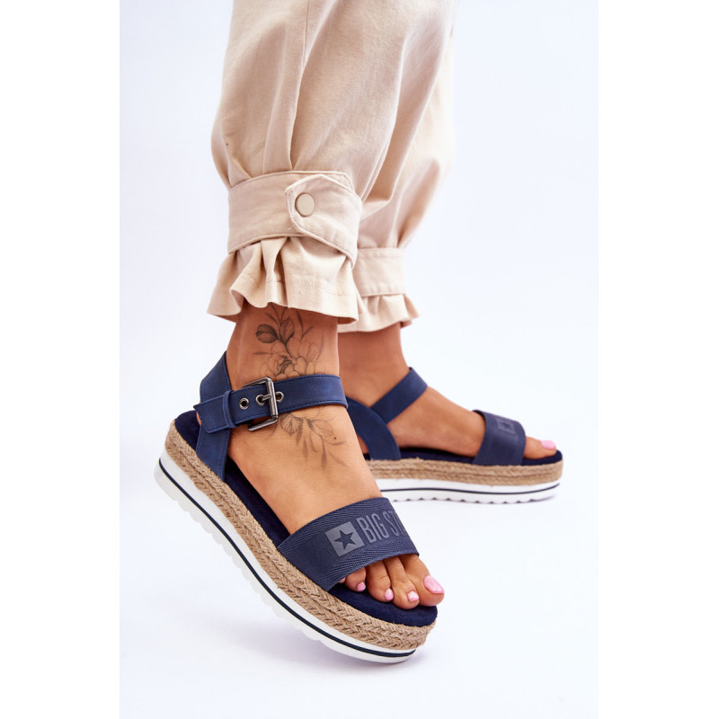 Patogūs, moteriški sandalai yra pagaminti iš tekstilės ir eko odos derinio. Šis modelis užsegamas sagtimi su reguliuojamu dirželiu. Sandalai buvo padėti ant masyvios platformos, papuoštos džiuto pynute. Minkštas vidpadis iš eko zomšos užtikrins patogų naudojimą. Tobulas modelis šiltesnėms dienoms! Rinkdamiesi dydį, žiūrėkite dydžių lentelę.