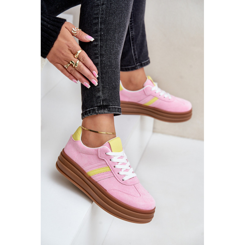 Moteriški sportbačiai, pagaminti iš eko odos, yra stilingas apavas, puikiai derinantis madingą išvaizdą su komfortu. Įrengti platformoje, jie suteikia kiekvienam įvaizdžiui modernų charakterį, o apvalūs pirštai prideda subtilaus žavesio. Puikiai tinka tiek kasdieniam dėvėjimui, tiek miesto aprangai, jie puikiai atitinka naujausias tendencijas. Šie madingi sportbačiai yra būtinybė moterims, vertinančioms komfortą ir neįprastą stilių. Renkantis dydį, vadovaukitės dydžių lentele.
