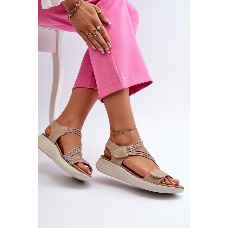 Lengvi ir patogūs moteriški sandalai. Užsegamas lipduku ir papildomai turi elastingus guminius dirželius, kurie geriau priglunda prie pėdos. Padas su SOFT AIR TECHNOLOGY sistema dar labiau sušvelnina žingsnius, mažina nuovargį. Jie puikiai tinka ilgesnėms kelionėms pėsčiomis. Rinkdamiesi dydį žiūrėkite dydžių lentelę.