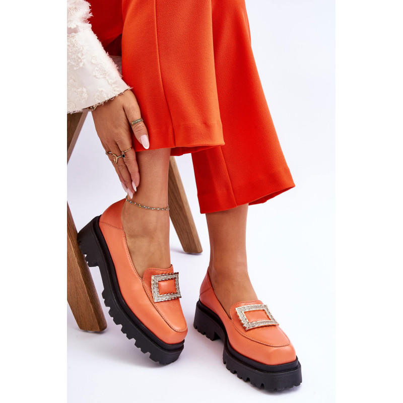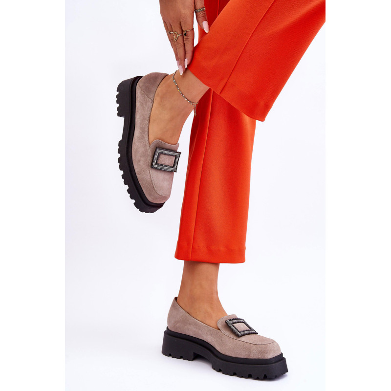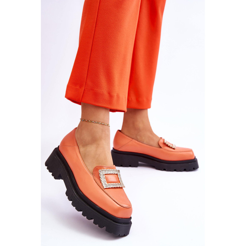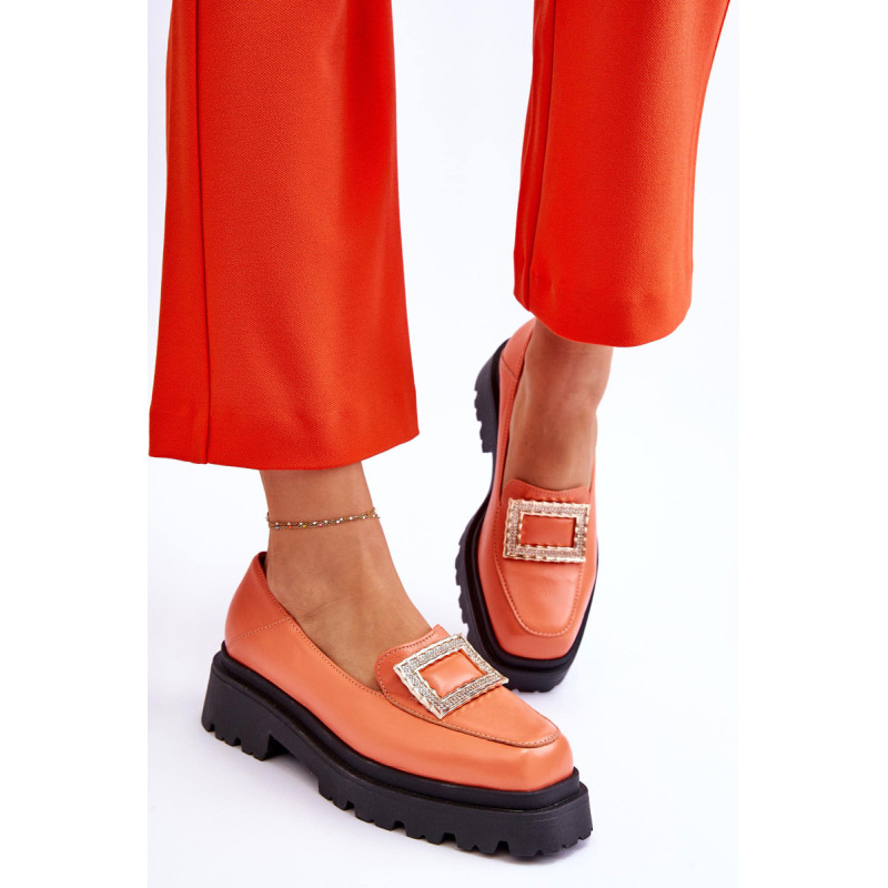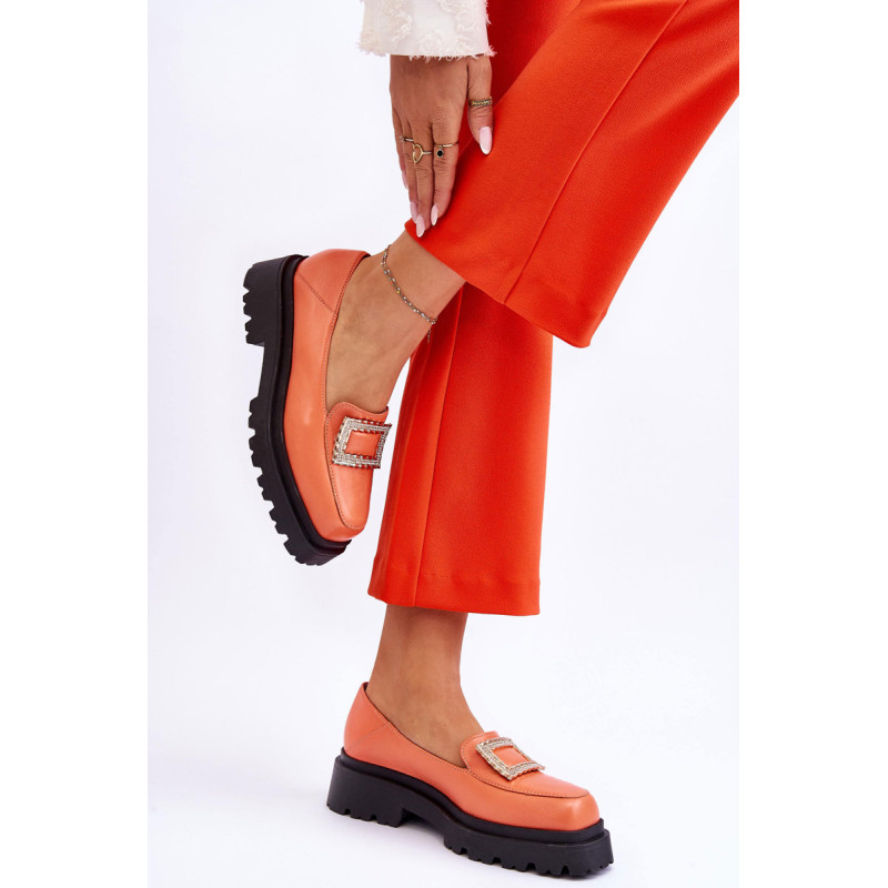 Madingi moteriški batai yra pagaminti iš natūralios odos. Loaferiai buvo dedami ant masyvios platformos ir plokščio kulno. Be to, priekyje jie turi papuošimą su purkštukais ir standintu kulno skaitikliu. Minkštas vidpadis užtikrina patogų naudojimą. Loaferiai bus puikūs įvairių stilių! Rinkdamiesi dydį, žiūrėkite dydžių lentelę.