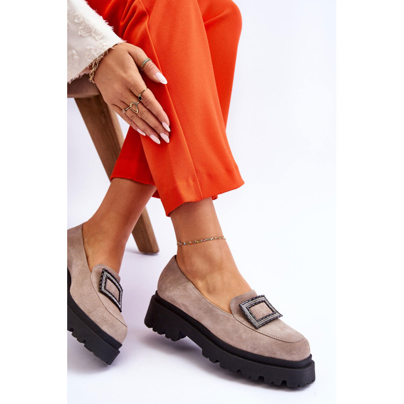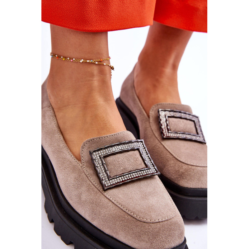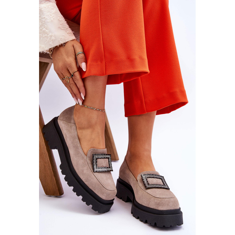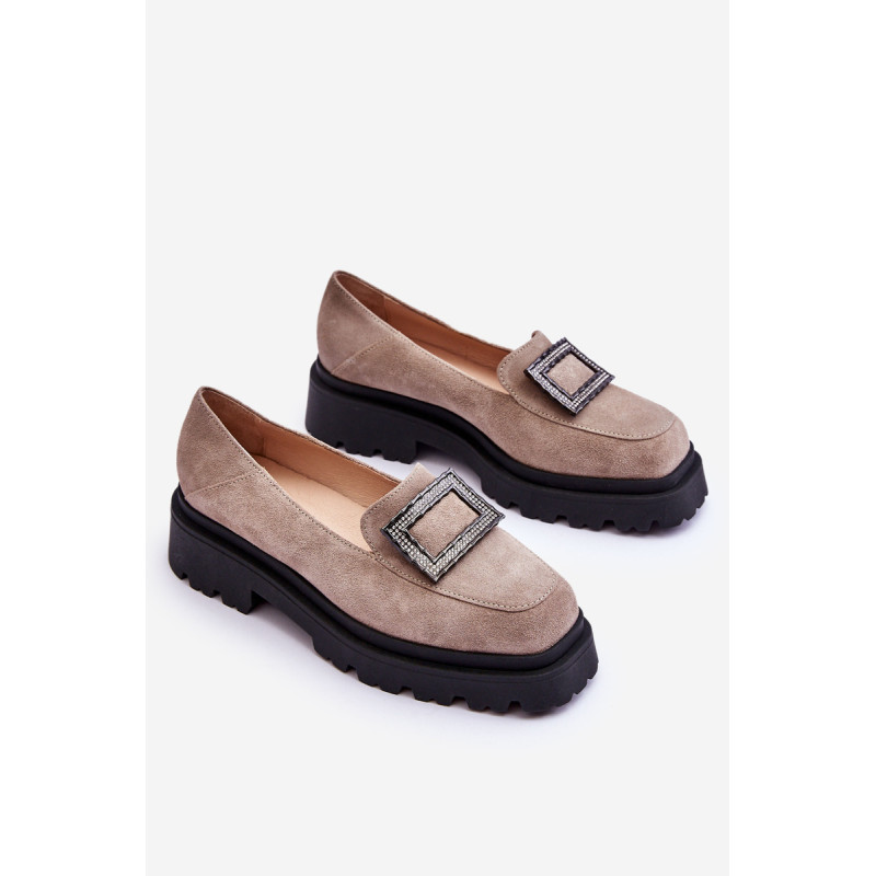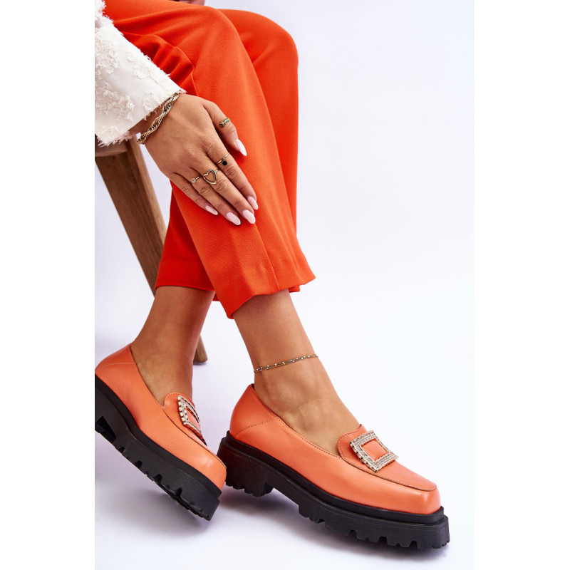 Madingi moteriški batai yra pagaminti iš natūralios odos. Loaferiai buvo dedami ant masyvios platformos ir plokščio kulno. Be to, priekyje jie turi papuošimą su purkštukais ir standintu kulno skaitikliu. Minkštas vidpadis užtikrina patogų naudojimą. Loaferiai bus puikūs įvairių stilių! Rinkdamiesi dydį, žiūrėkite dydžių lentelę.