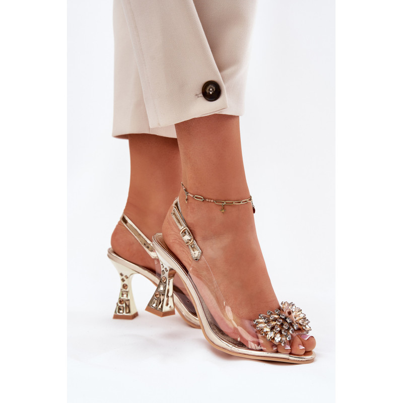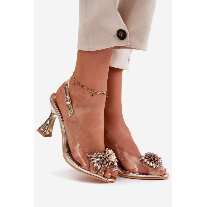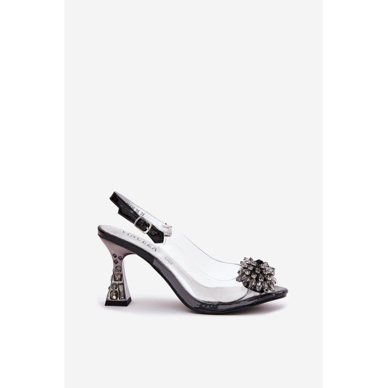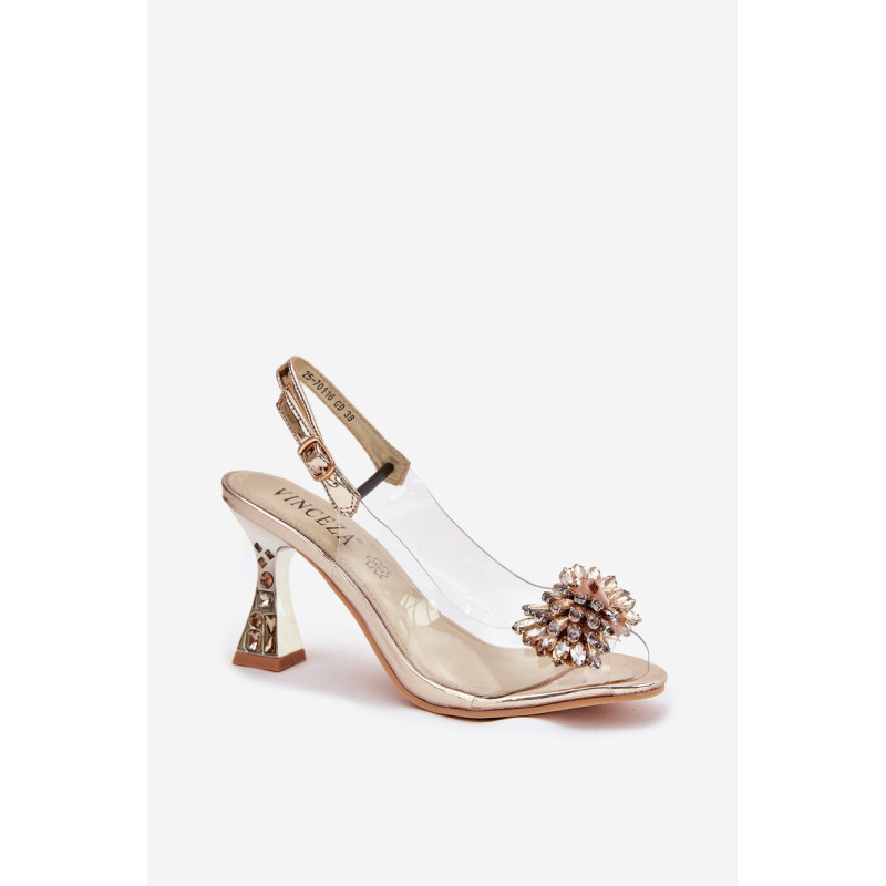 Vinceza prekės moteriški sandalai yra elegantiška pasirinkimo galimybė ypatingoms progoms. Pagaminti iš permatomos viršutinės dalies, ant platesnio kulno, jie suteikia unikalų žavesį kiekvienai stilizacijai. Kristalų puošyba priekyje ir ant kulno suteikia jiems ypatingo žavesio, o sagtis leidžia idealiai pritaikyti prie pėdos. Minkšta odinė pado dangtelis užtikrina komfortą visą dieną. Šie sandalai yra puikus pasirinkimas vestuvėms, vakarinėms išvykoms ir kitoms šventėms. Renkantis dydį, vadovaukitės dydžių lentele.