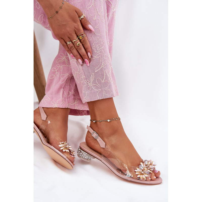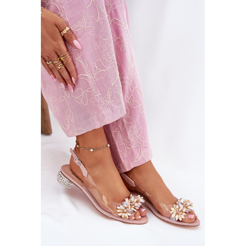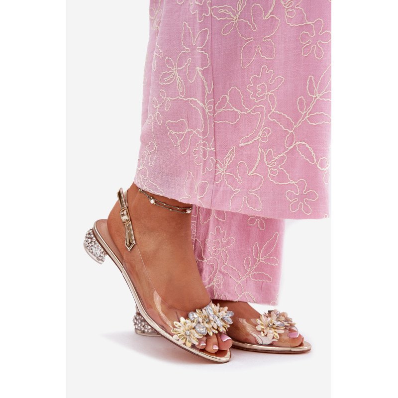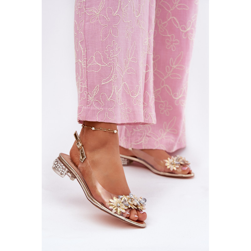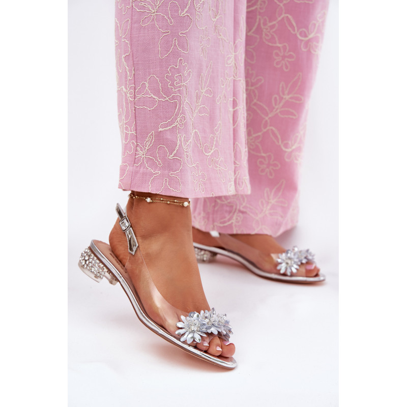 Moteriški sandalai su skaidriu viršumi yra elegantiška pasirinkimas vasaros dienoms. Ant žemo kulno jie siūlo komfortą visą dieną. Modelis išsiskiria subtiliais dekoracijomis su kristalais ir gėlėmis, kurios suteikia jiems unikalų žavesį. Užsegami sagtimi, jie užtikrina puikų pritaikymą pėdai. Minkšta odinė pado dalis rūpinasi komfortu, todėl šie sandalai yra puikus pasirinkimas vasaros stiliams ypatingoms progoms. Renkantis dydį, vadovaukitės dydžių lentele.