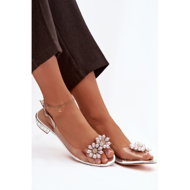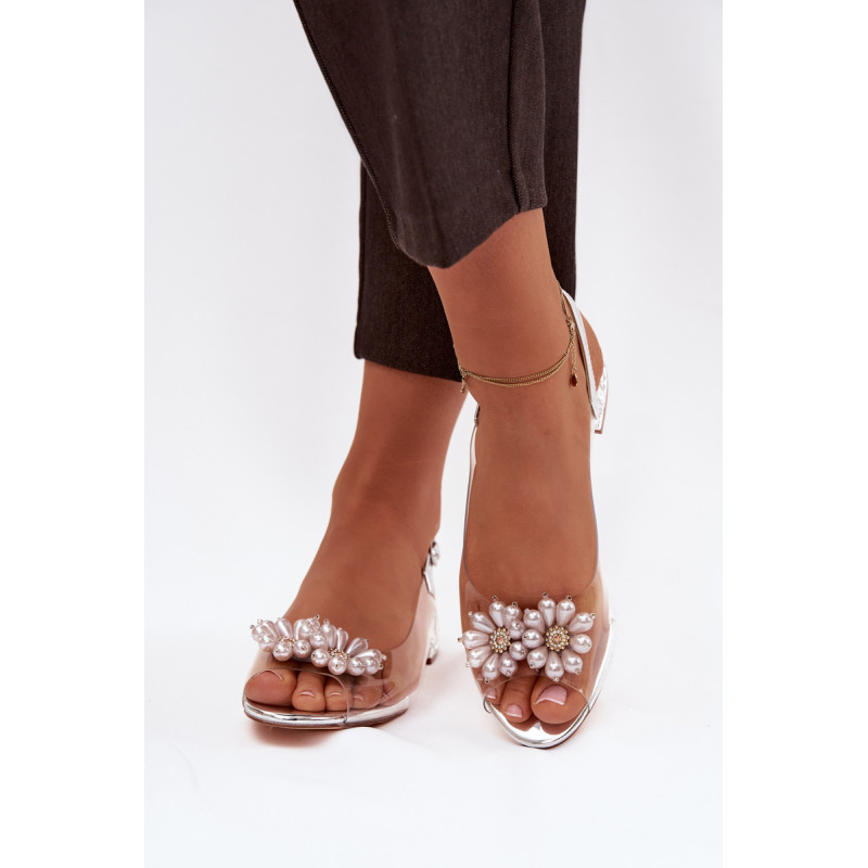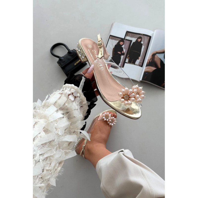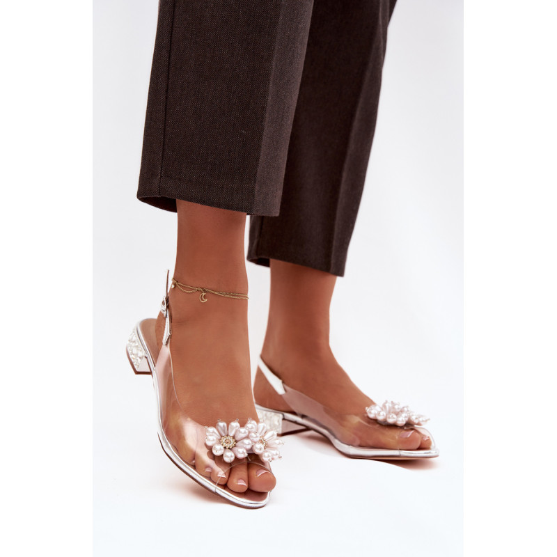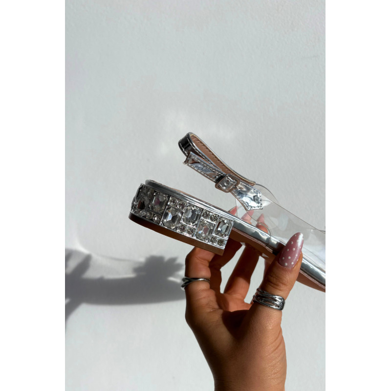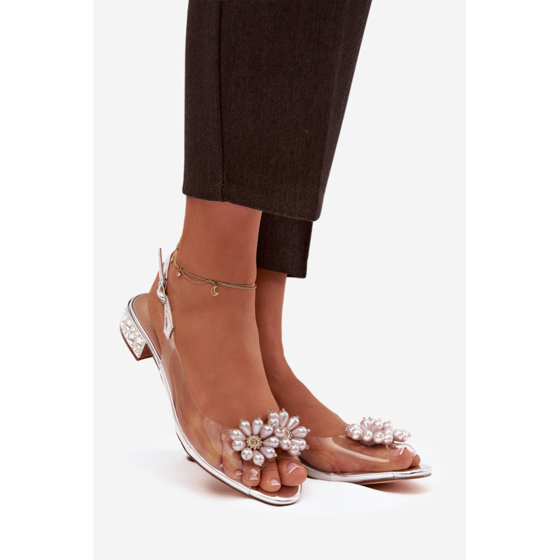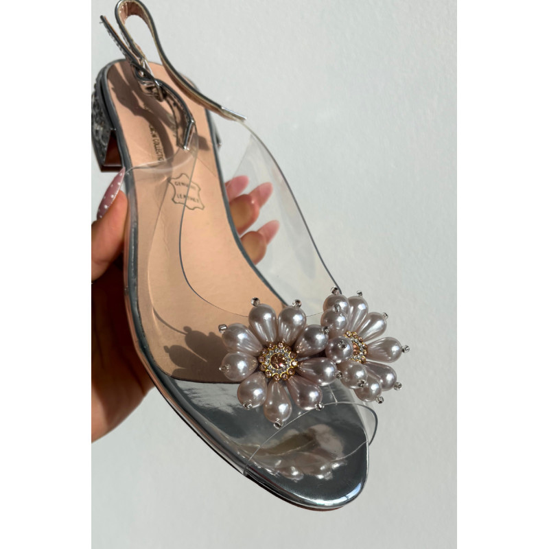 Subtilios ir nepaprastai moteriškas permatomos sandalai yra ideali pasirinkimas elegantiškiems pasivaikščiojimams ir išskirtinėms progoms. Priekinė dalis dekoruota dviem subtiliais gėlyčiais. Žemas kulnas, papuoštas krištolais, gražiai atspindi šviesą, suteikdamas elegancijos ir papuošalo efektą. Modelis su sagtimi ir reguliuojamu dirželiu leidžia idealiai pritaikyti prie pėdos, užtikrinant komfortą ir stabilumą. Puikus pasirinkimas suknelėms, vakarinėms aprangoms ir šventėms, kur svarbu subtilumas, detalės ir moteriška elegancija. Renkantis dydį, prašome vadovautis dydžių lentele. Renkantis dydį, vadovaukitės dydžių lentele.