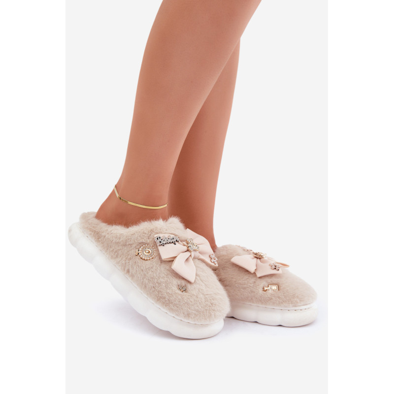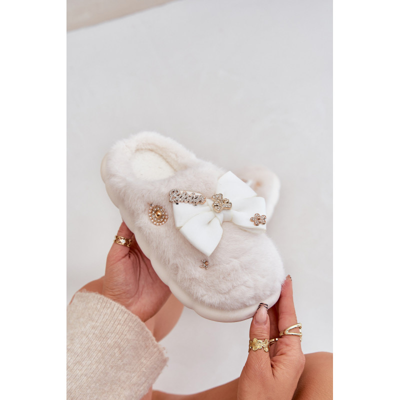 Žavingi pūkuoti šlepetės, kurios sujungia komfortą ir stilių! Minkštas kailis apgaubia kojas, užtikrindamas šilumą ir komfortą. Papildomo žavesio suteikia segtukai ir kaspinas. Puikiai tinka nešioti namuose, kad jaustumėtės stilingai ir jaukiai net šaltomis dienomis. Renkantis dydį, vadovaukitės dydžių lentele.