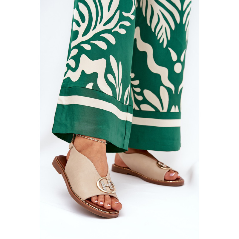 Eko odos sandalai yra elegantiškas pasiūlymas vasaros dienoms. Pasirinkti ant plokščio kulno, jie užtikrina komfortą ir stabilumą. Priekyje yra puošmena, kuri prideda subtilaus žavesio. Uždaryti reguliuojama juosta su sagtimi, leidžiančia idealiai pritaikyti prie pėdos. Šie sandalai bus puikus pasirinkimas elegantiškiems stiliams, derinant madingą išvaizdą su komfortu. Renkantis dydį, vadovaukitės dydžių lentele.