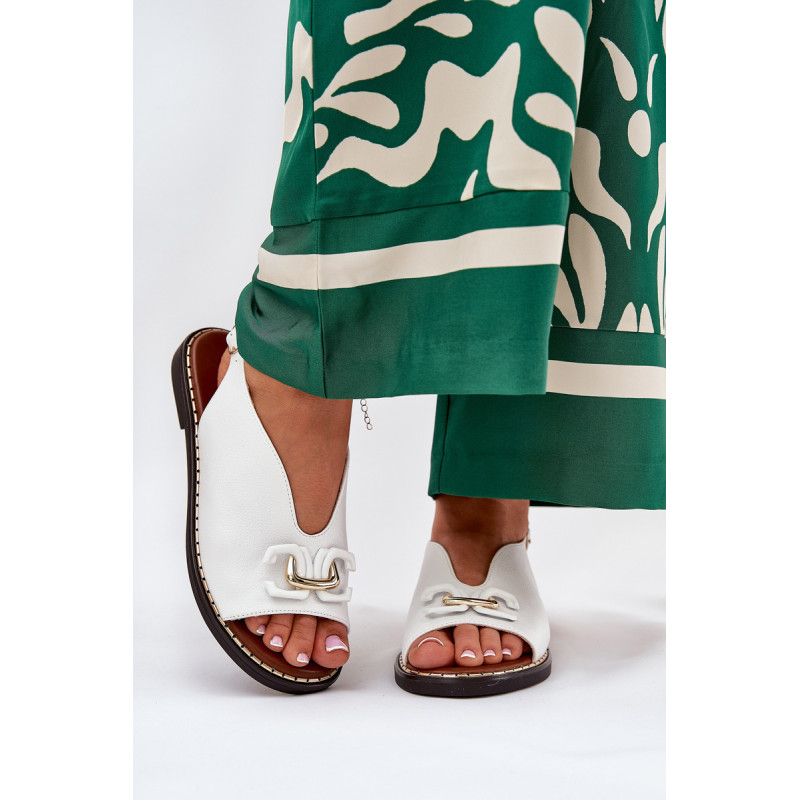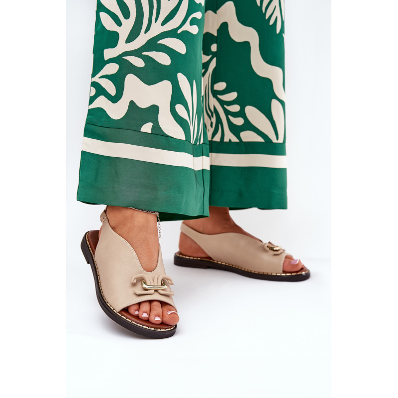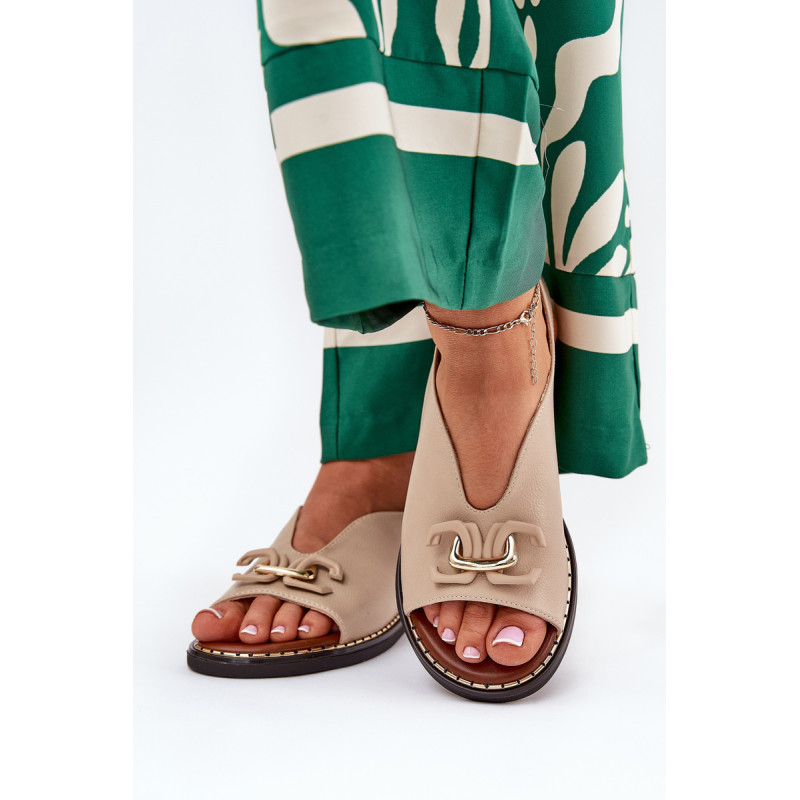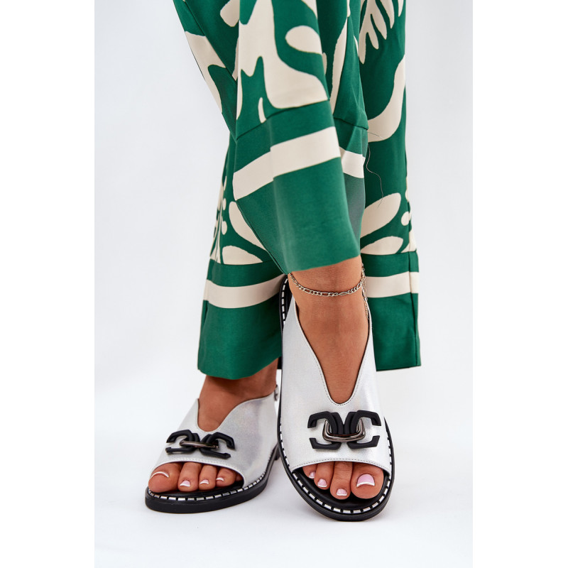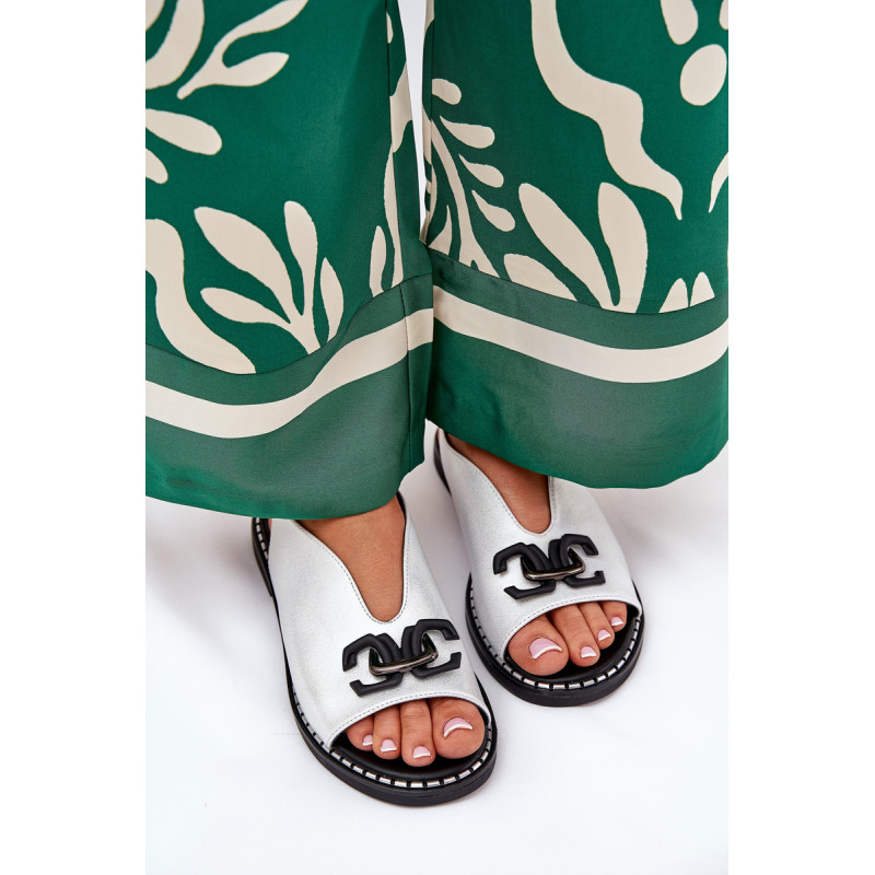Eleganti ekologiškos odinės šlepetės yra puikus pasirinkimas vasaros dienoms, derinant stilių ir komfortą. Avalynės priekyje yra dekoracija, kuri suteikia joms išskirtinį žavesį. Įrengtos ant plokščio kulno, jos užtikrina komfortą visą dieną. Uždarytos reguliuojama dirželiu su sagtimi, leidžiančiu pritaikyti jas pagal pėdą. Šios šlepetės bus puikus papildymas suknelėms, sijonams ir audinio kelnėms, sukuriant elegantišką ir madingą įvaizdį. Renkantis dydį, vadovaukitės dydžių lentele.