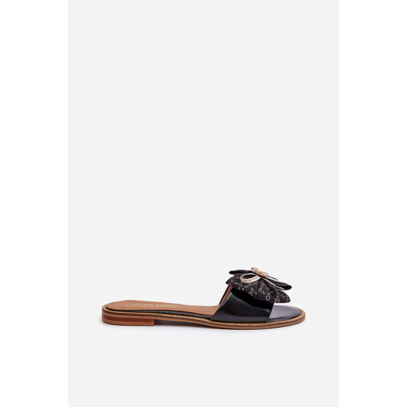 Gražūs moteriški šlepetės iš prekės ženklo Laura Messi. Pagaminti iš natūralios odos, užtikrina aukštą kokybę ir ilgaamžiškumą. Puošti dideliu lankeliu, jie suteikia subtilaus žavesio bet kokiai aprangai. Minkštas vidpadis užtikrina komfortą kiekviename žingsnyje. Jūs tikrai turėtumėte juos turėti! Rinkdamiesi dydį, žiūrėkite dydžių lentelę.