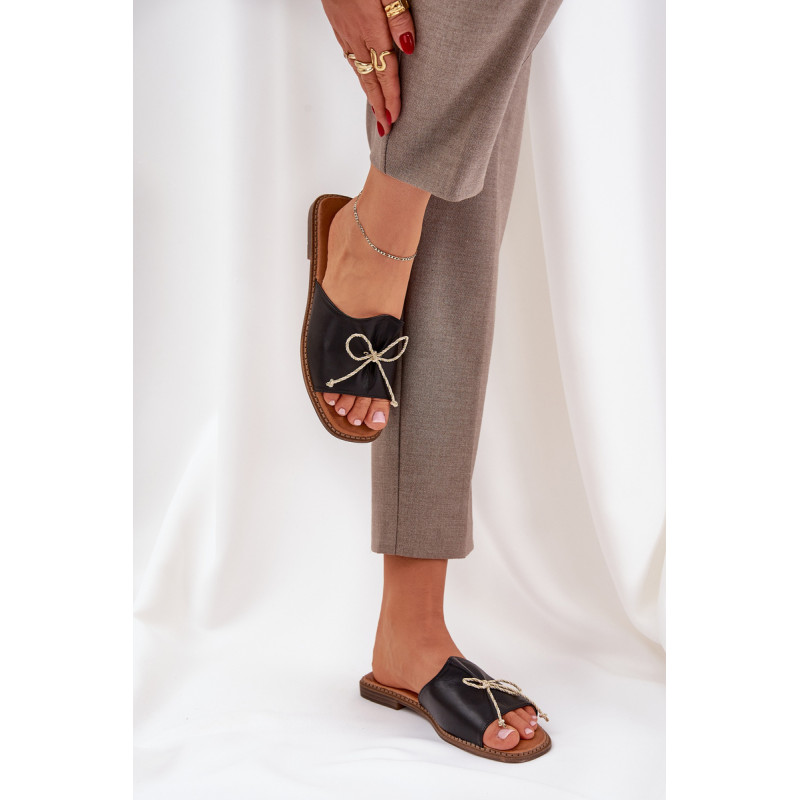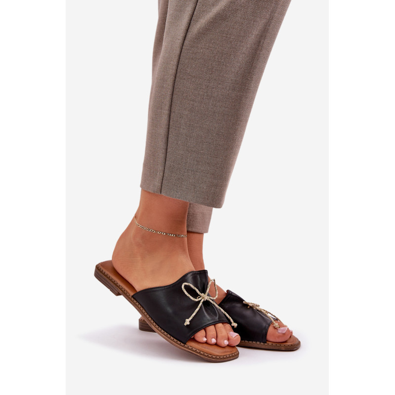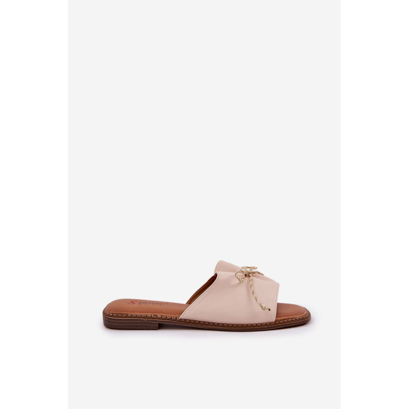 Eleganti moteriški šlepetės iš ekologiškos odos yra puikus pasirinkimas moterims, kurios vertina stilių ir komfortą. Įrengti ant plokščio kulno, jie suteikia komfortą visą dieną. Batų priekyje yra subtilus kaspinas, kuris suteikia jiems švelnų, moterišką žavesį. Minkšta pado įdėklas garantuoja patogumą nešiojant, o paprasta, bet elegantiška forma daro šias šlepetes puikiu papildymu daugeliui stilizacijų. Puikiai tinka vasaros dienoms, kai norite atrodyti madingai ir jaustis patogiai. Renkantis dydį, vadovaukitės dydžių lentele.