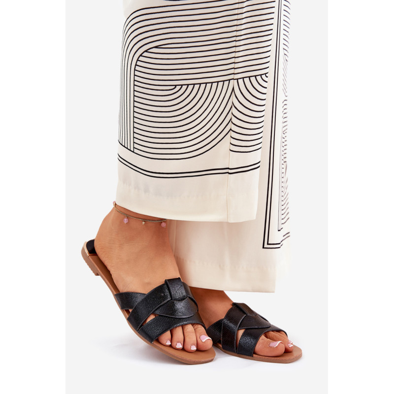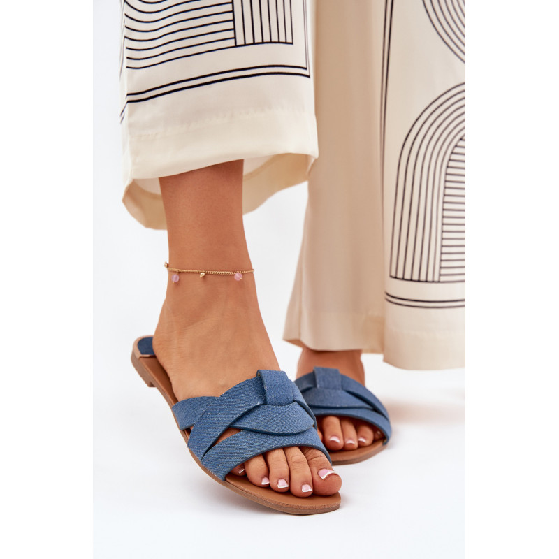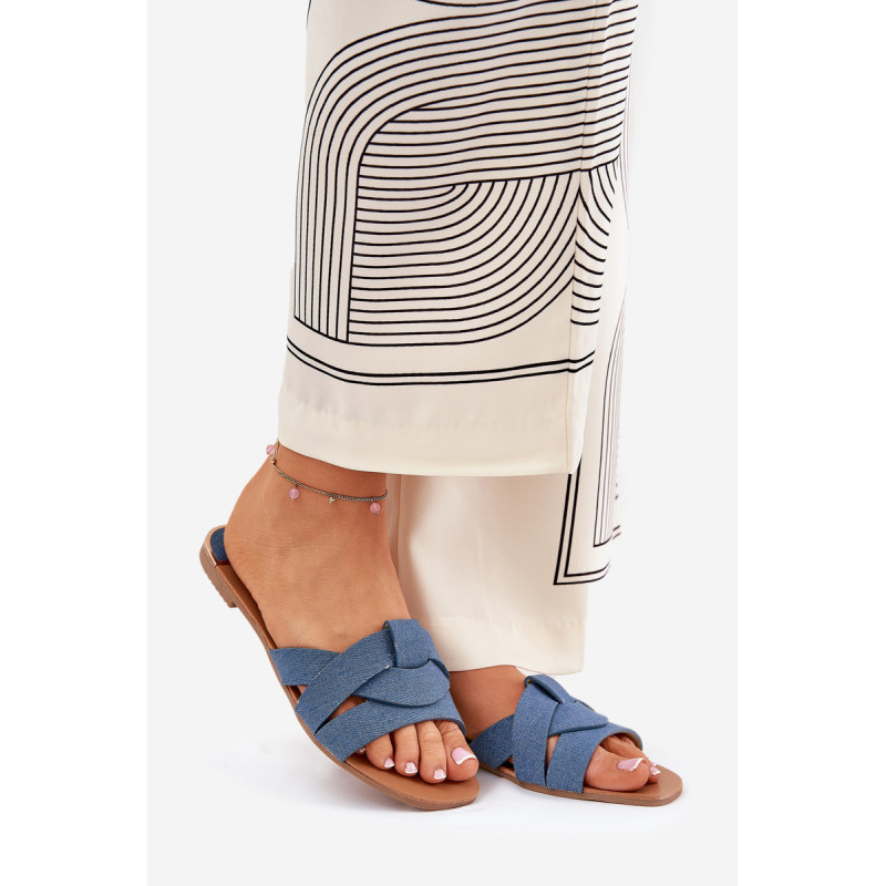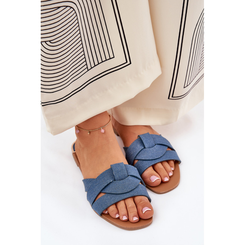 Plokščios moteriškos šlepetės, pagamintos iš tekstilės, pasižyminčios persipynusiomis juostelėmis priekyje, suteikiančiomis joms subtilų žavesį. Klasikinis dizainas daro jas puikiu pasirinkimu daugeliui stilių, sujungiant patogumą su paprastu, elegantišku įvaizdžiu. Renkantis dydį, vadovaukitės dydžių lentele.