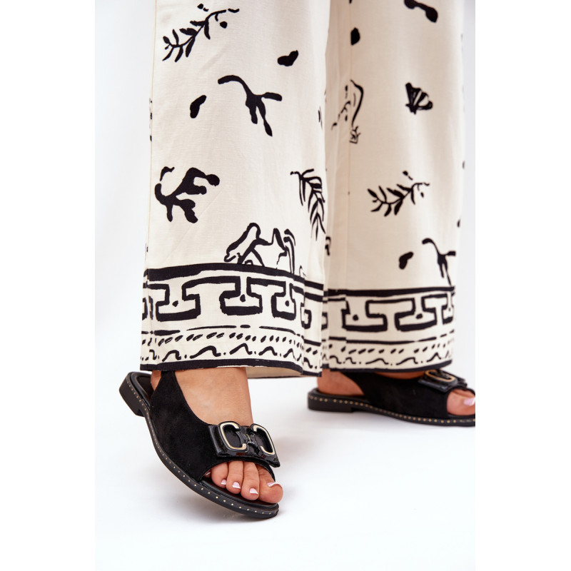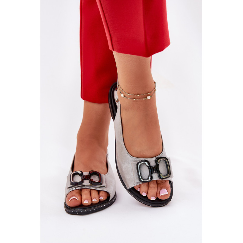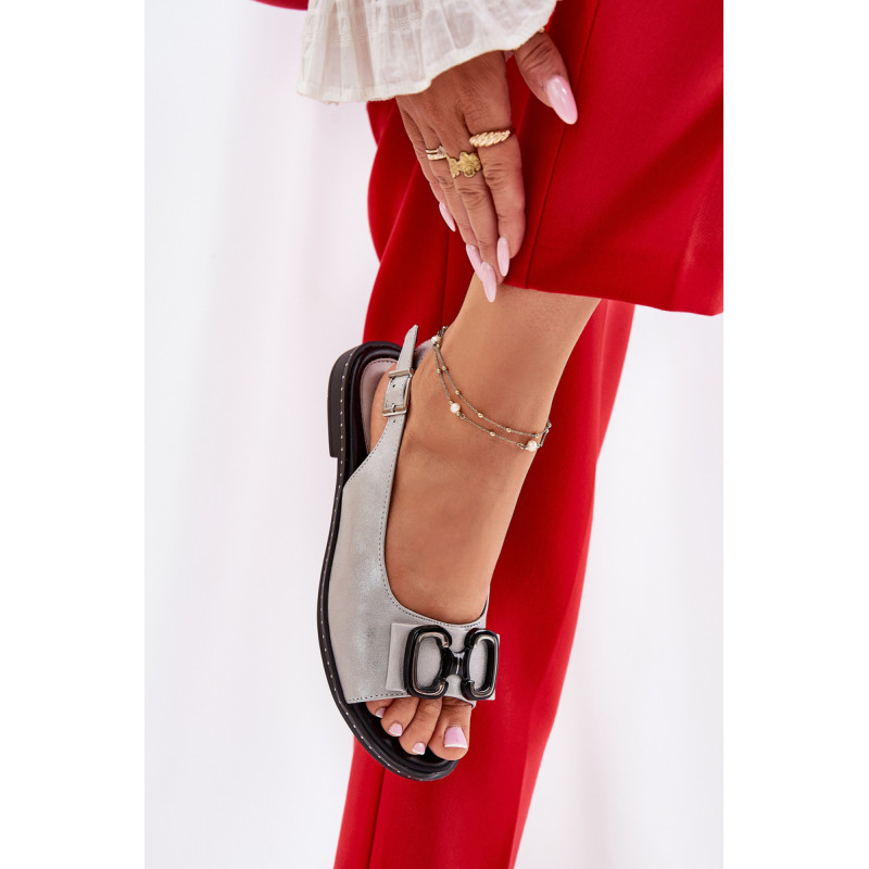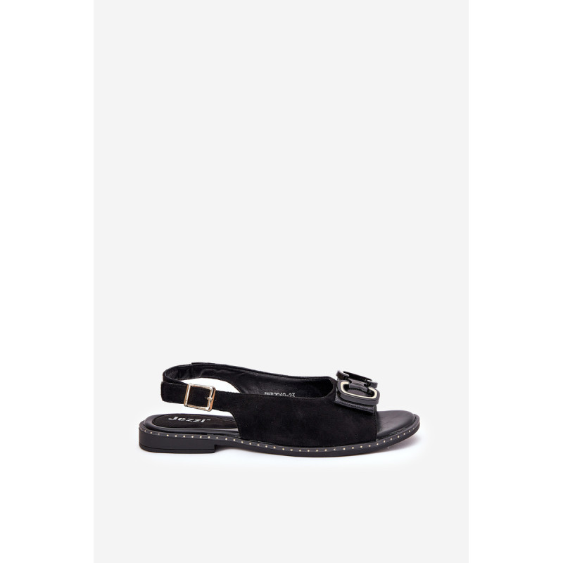 Moteriški sandalai iš Jezzi prekės ženklo. Pagaminti iš aukštos kokybės eko odos. Šis modelis išsiskiria priekyje esančia dekoracija, kuri suteikia jiems unikalų žavesį. Įrengti ant plokščio kulno. Minkšta vidpadis užtikrina komfortą kiekviename žingsnyje. Uždaryti su reguliuojama juosta ir sagtimi. Puikiai tinka įvairioms progoms ir vakariniams pasivaikščiojimams, šie sandalai puikiai derės tiek su suknelėmis, tiek su kelnėmis, pabrėždami moterišką stilių ir eleganciją. Renkantis dydį, vadovaukitės dydžių lentele.