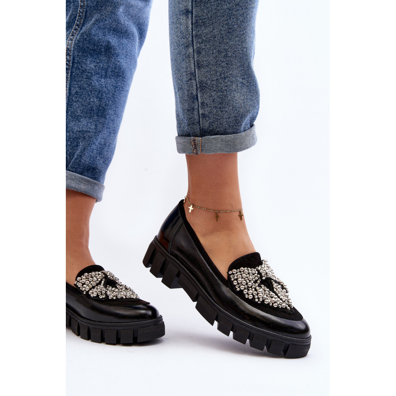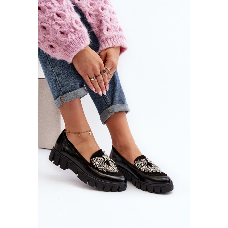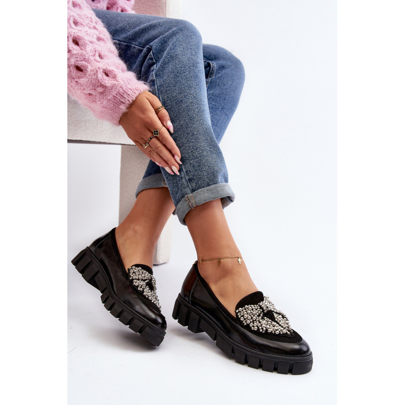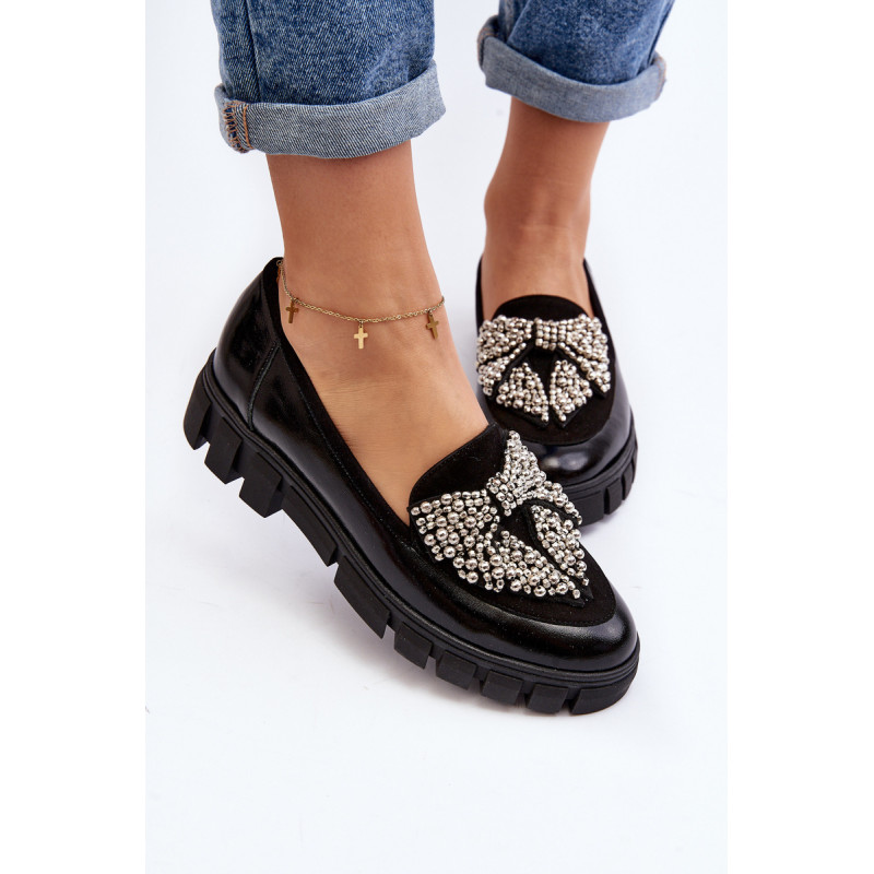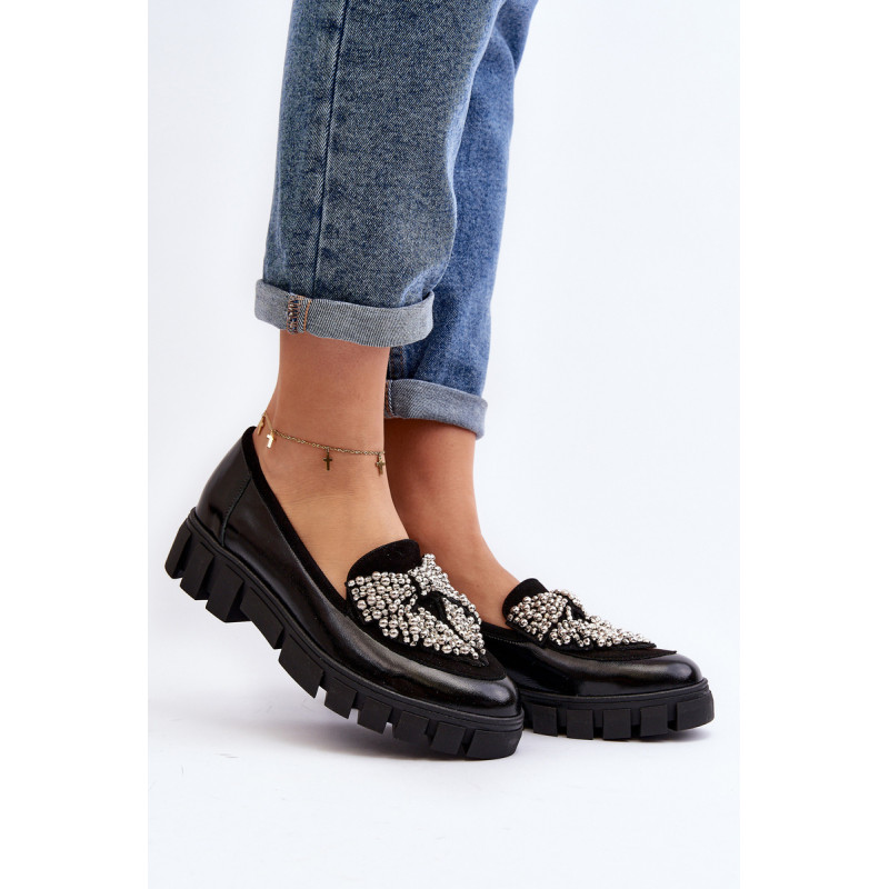 Moteriški batai pagaminti iš natūralios odos. Slip-on modelis. Nustatykite ant plokščio kulno su platforma ir grioveliais. Odinis vidpadis suteiks komforto naudojimo metu. Suapvalinti kojų pirštai. Dekoracija priekyje. Šis elegantiškas modelis puikiai atrodys daugelyje stilių! Jūs tikrai turėtumėte jį savo drabužių spinta! Rinkdamiesi dydį, žiūrėkite dydžių lentelę.