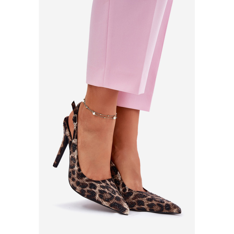 Šie eleganti aukštakulniai sandalai tikrai pritrauks visų aplinkinių dėmesį! Smailūs pirštai gražiai pailgina kojas, o patogus reguliuojamas dirželis su sagtimi užtikrina puikų prigludimą. Papuošimas suteikia blizgesio ir leidžia išsiskirti minioje. Tai puikus avalynės pasirinkimas svarbiems renginiams, vakarėliams ar romantiškoms vakarienėms. Renkantis dydį, vadovaukitės dydžių lentele.