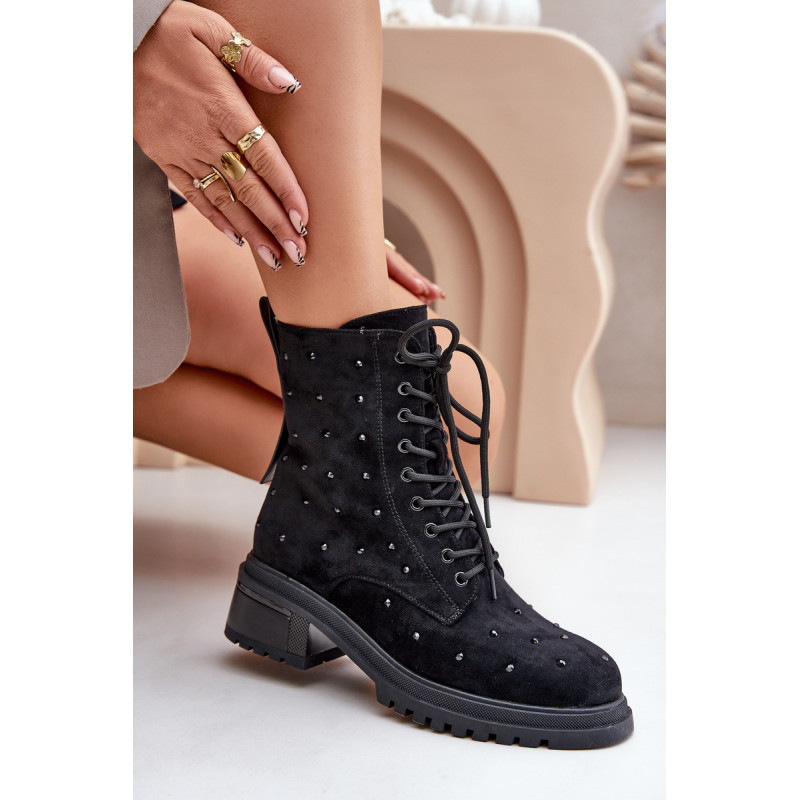 Moteriški auliniai batai iš malonaus liesti ekologiškos zomšos. Nustatykite ant plokščio kulno. Užsegamas užtrauktuku ir papildomai suvarstomas. Suapvalinti kojų pirštai. Puošyba ant koto suteikia išskirtinio žavesio. Vidus apšiltintas batų vilna, užtikrinantis komfortą ir šilumą šaltomis dienomis! Šį modelį rudens-žiemos sezonu galite naudoti daugeliui stilių! Rinkdamiesi dydį žiūrėkite dydžių lentelę.