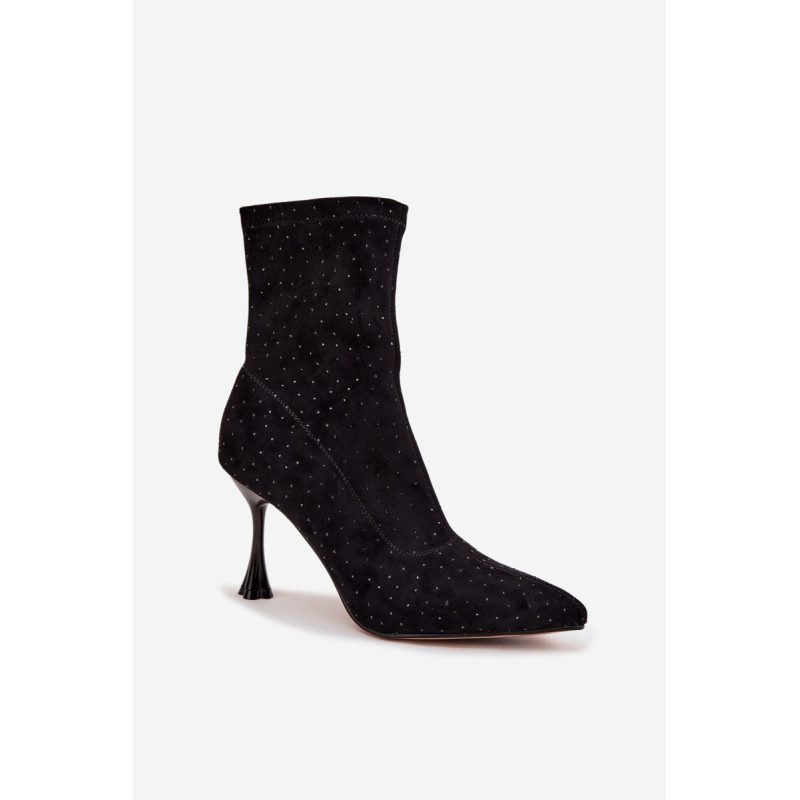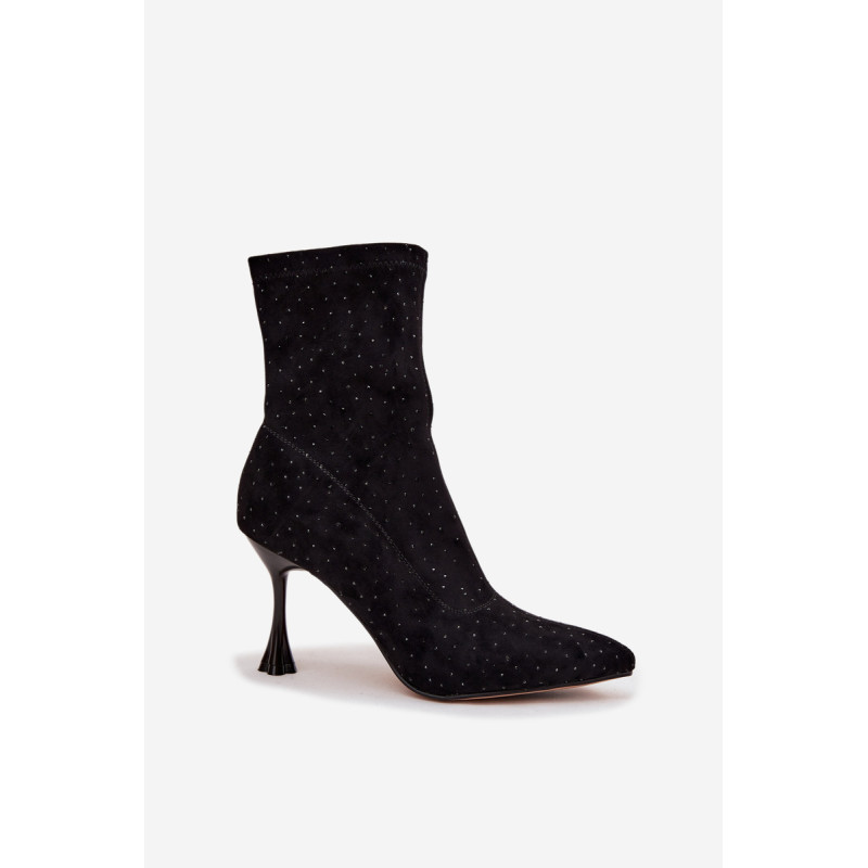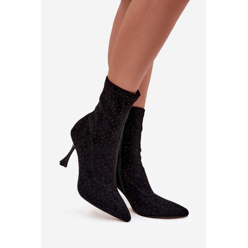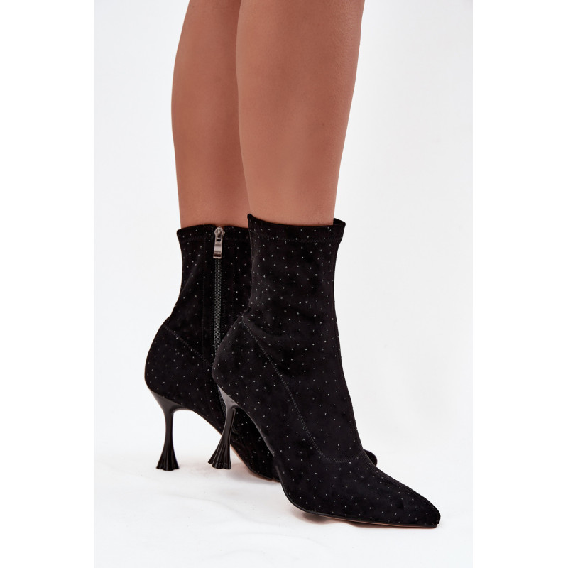 Moteriški auliniai batai iš minkštos ekologinės zomšos yra ideali pasirinkimas vakariniams pasirodymams ir išskirtinėms progoms. Modelis žavi dekoratyviniais siūlais ir elegantiška puošmena, kuri suteikia blizgesio ir moterišką charakterį. Sumontuoti ant dekoruoto stileto kulno, jie gražiai pabrėžia siluetą ir lieknina kojas. Smailas nosis. Šoninis užtrauktukas palengvina užsidėjimą. Tai puikūs auliniai batai moterims, kurios mėgsta išsiskirti stiliumi – puikiai tinka suknelėms, sijonams ir elegantiškiems komplektams vakarėliams ar vakarinėms susitikimams. Pasirinkdami dydį, vadovaukitės dydžių lentele. Renkantis dydį, vadovaukitės dydžių lentele.