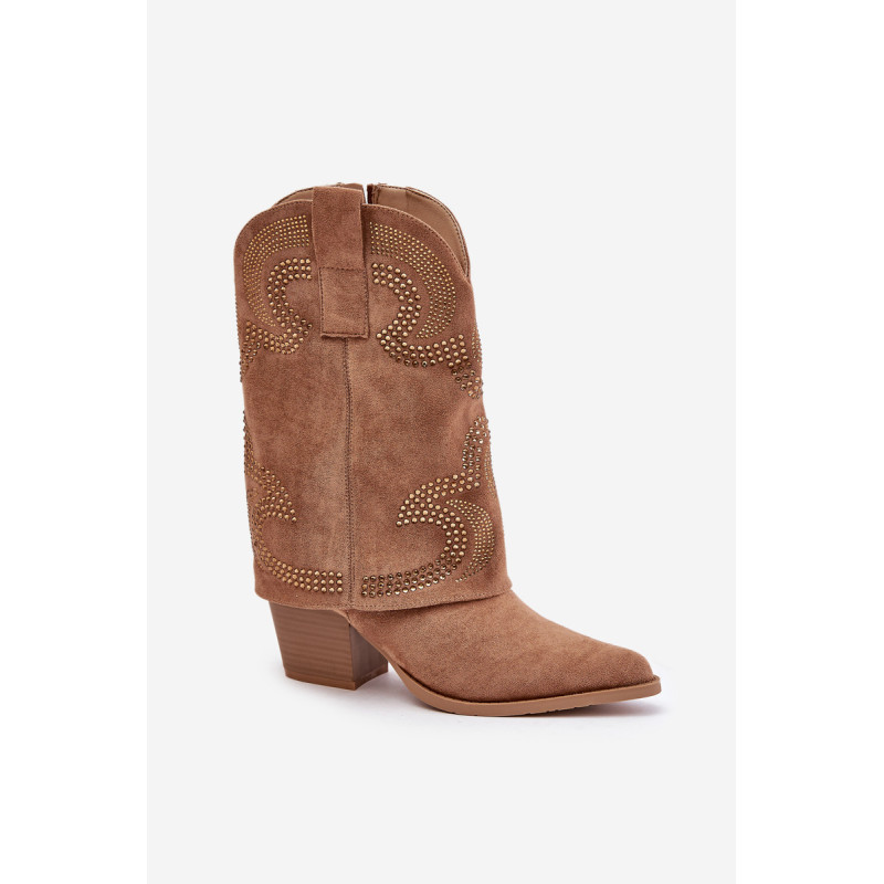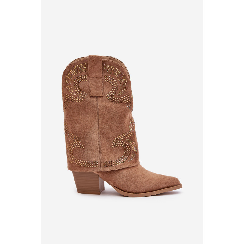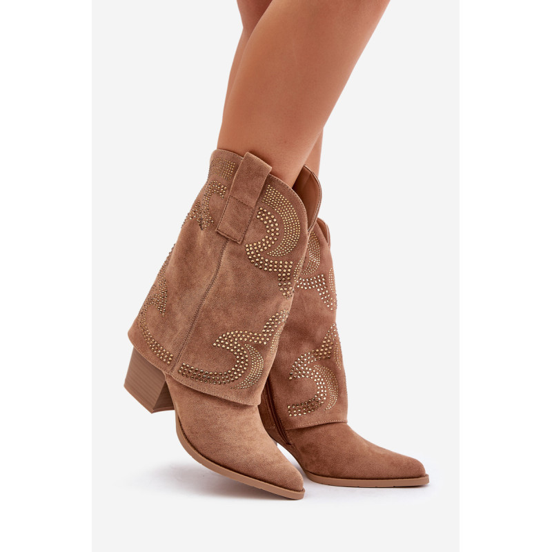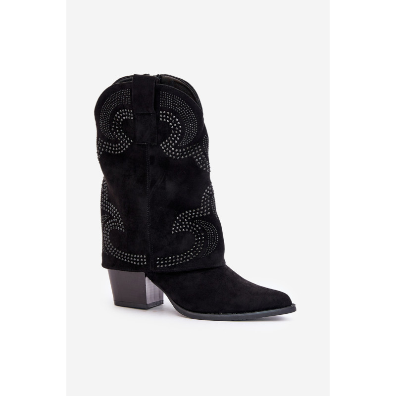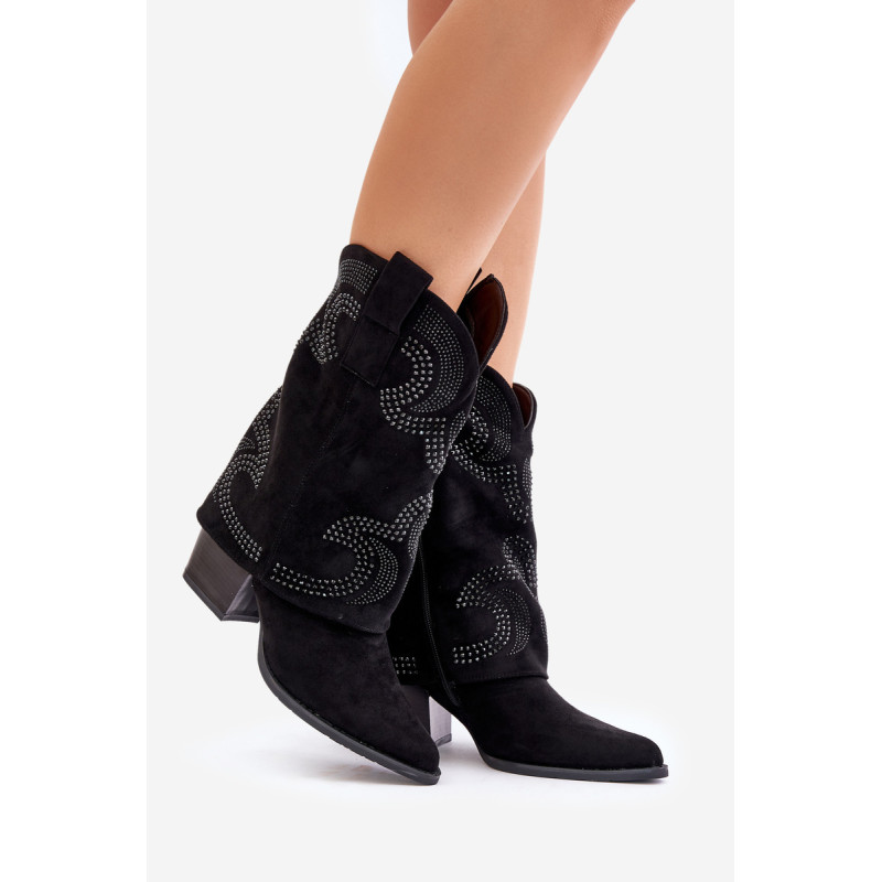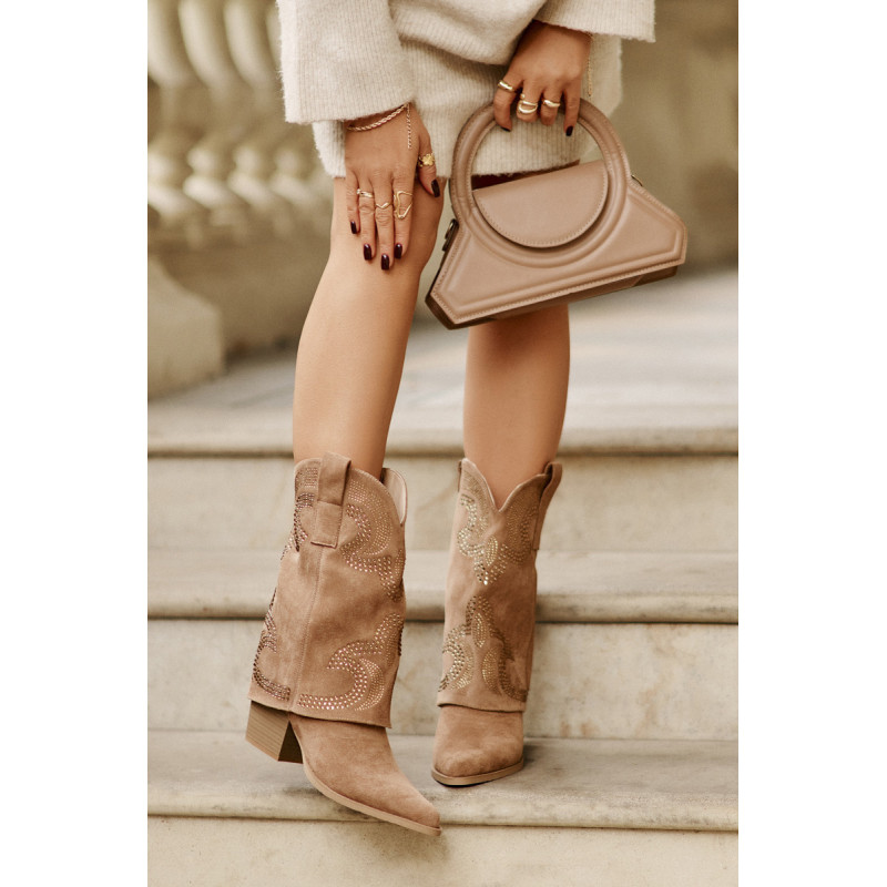 Kaubojiški batai, pasiekiantys blauzdos vidurį, yra madingas ir stilingas pasirinkimas bet kokiai progai. Jie išsiskiria puoštu kotu, suteikdami jiems unikalų charakterį, o smailūs kojų pirštai išryškina elegantišką, veržlų stilių. Užstatyti ant stabilaus blokinio kulno, jie suteikia komforto dėvint ir suteikia siluetui subtilaus aukščio. Užsegamas užtrauktuku juos lengva apsiauti, todėl šie kulkšnies batai yra praktiški ir įspūdingi. Puikiai tiks prie laisvalaikio ir išraiškingesnių drabužių. Rinkdamiesi dydį, žiūrėkite dydžių lentelę.