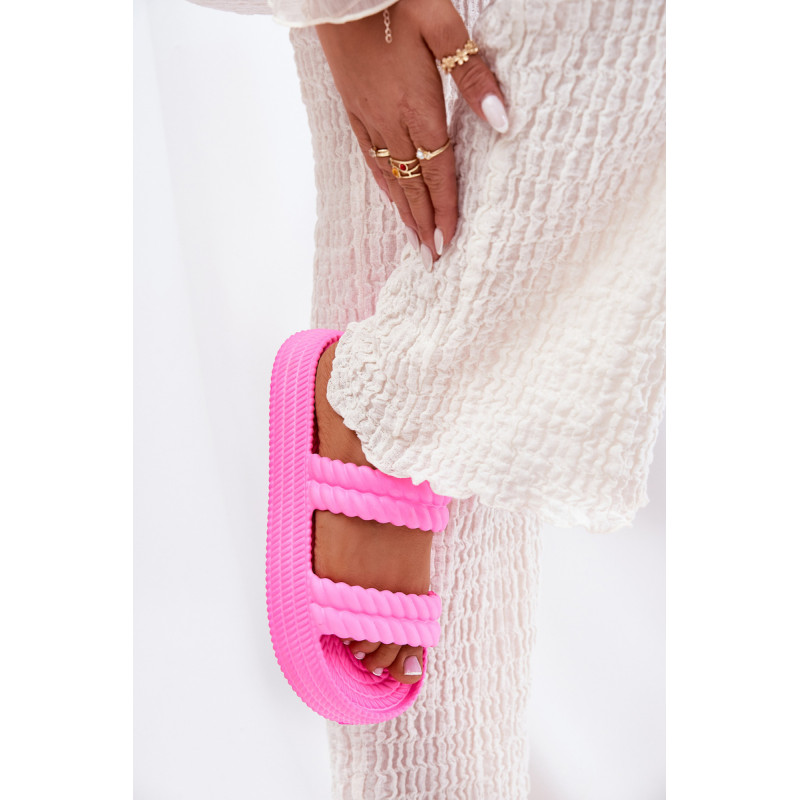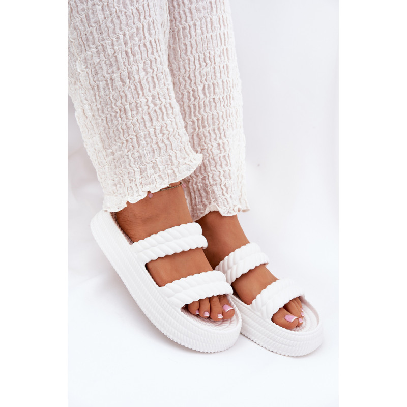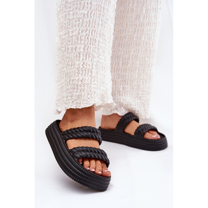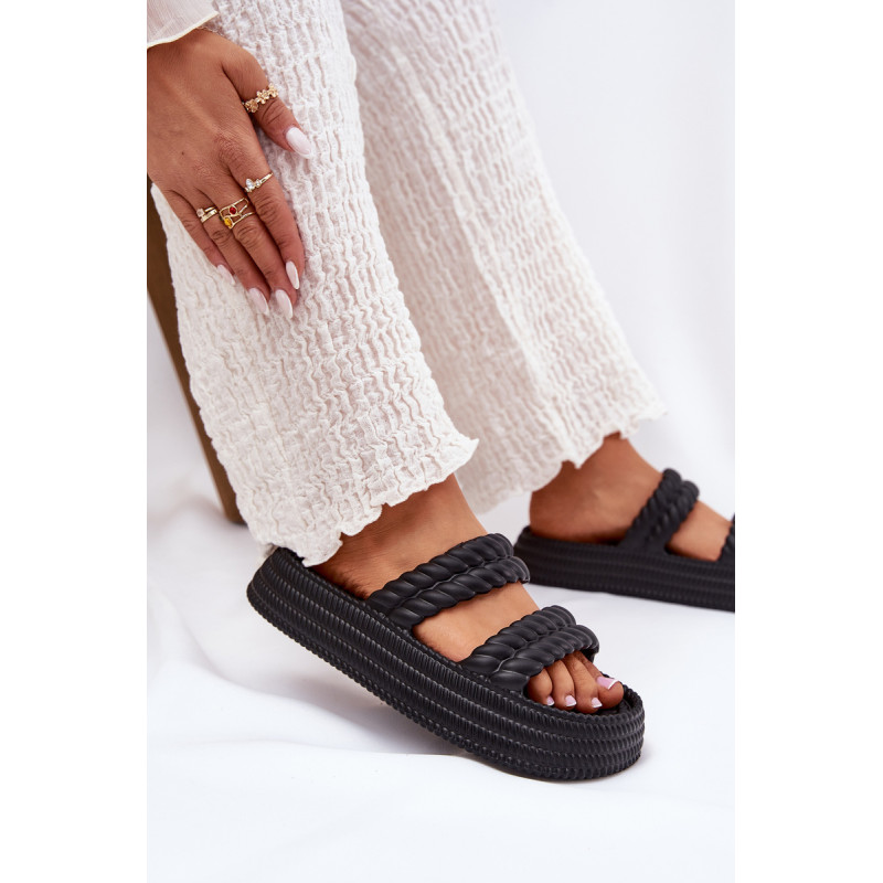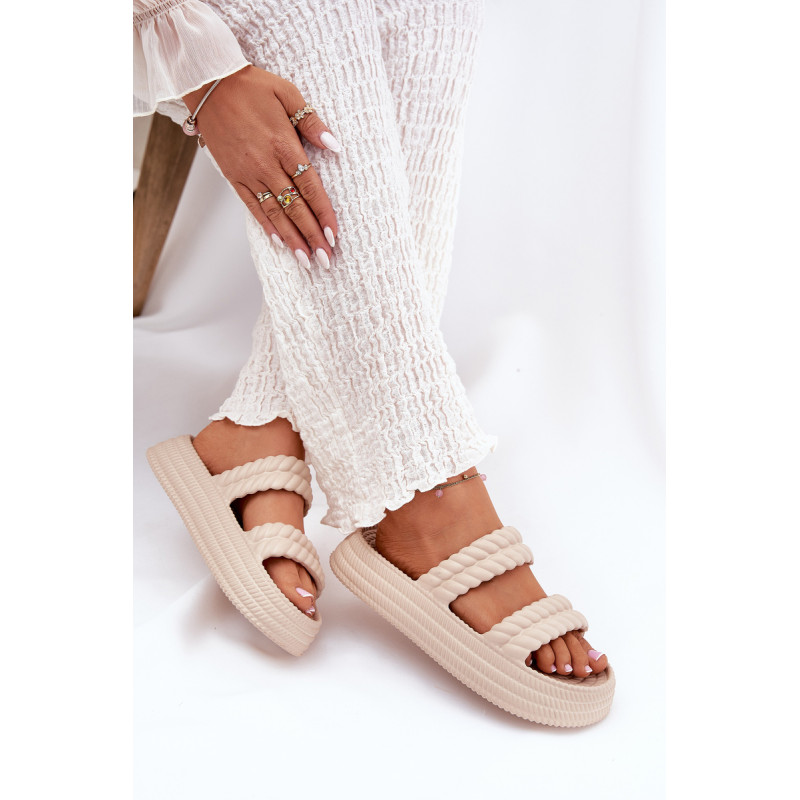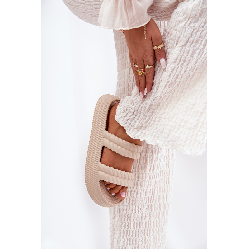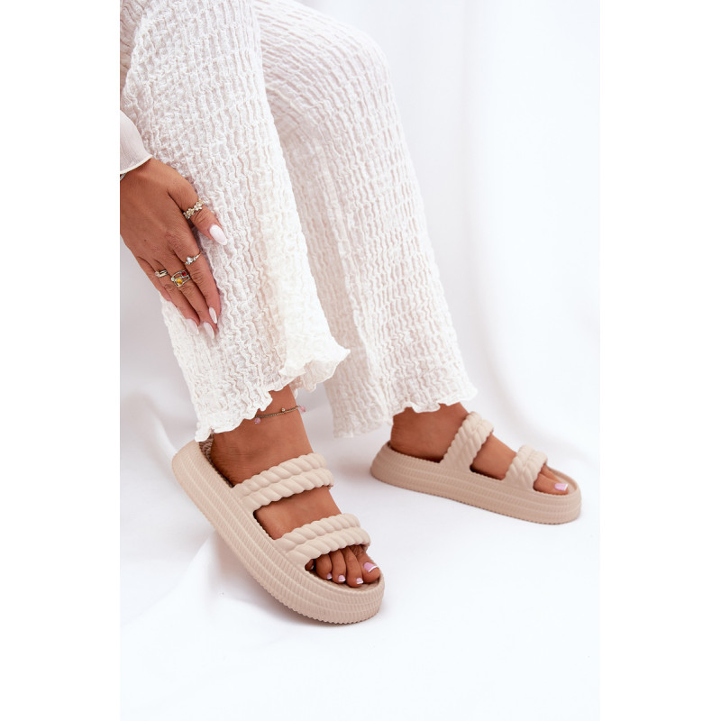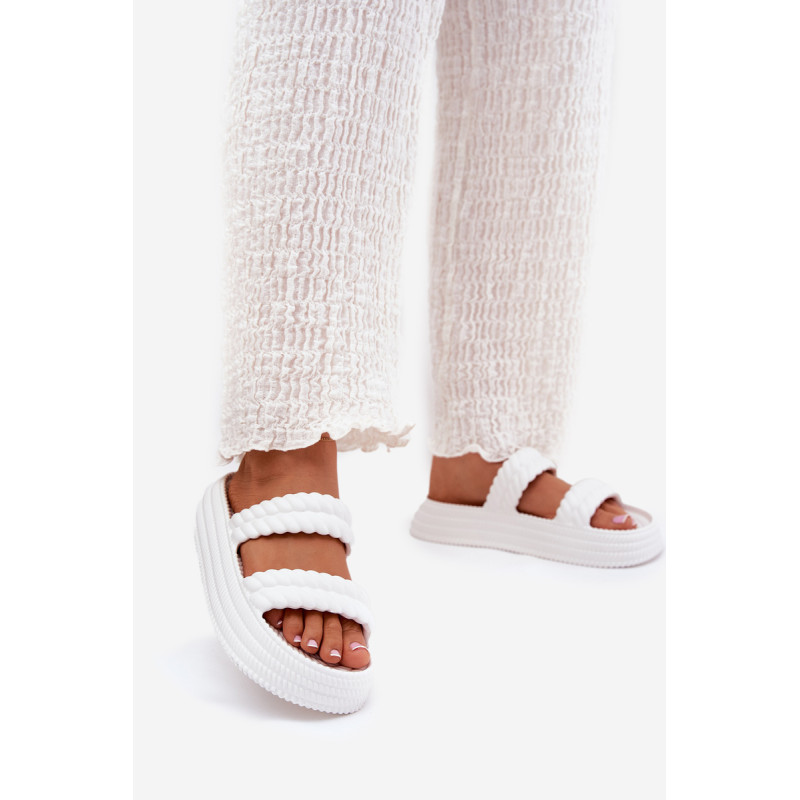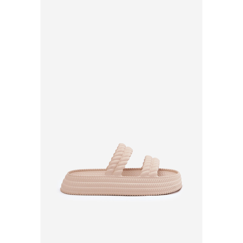 Moteriškos šlepetės, pagamintos iš lengvo putų medžiagos, įrengtos platformoje, siūlančios komfortą visą dieną. Dvi dirželiai priekyje užtikrina stabilumą ir pasitikėjimą vaikštant. Puikiai tinka karštomis dienomis, šios šlepetės yra puikus pasirinkimas atostogoms, laikui prie baseino arba paplūdimyje, derinant funkcionalumą su komfortu. Renkantis dydį, vadovaukitės dydžių lentele.