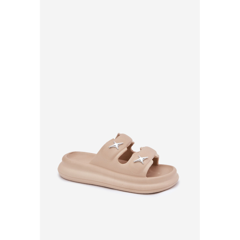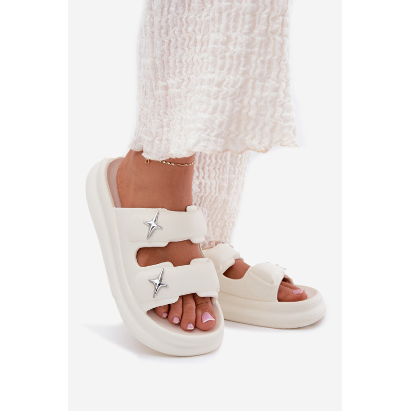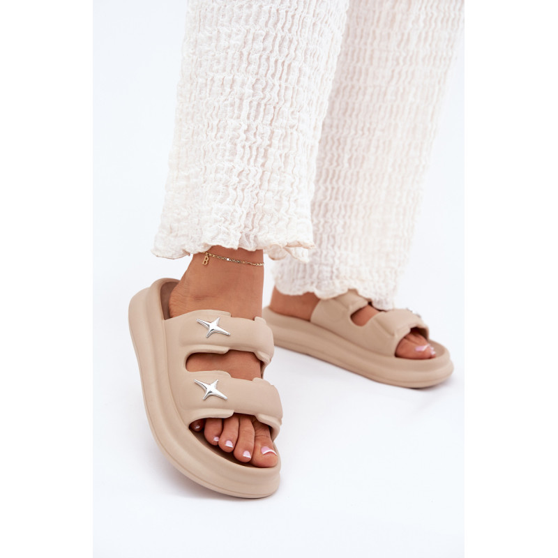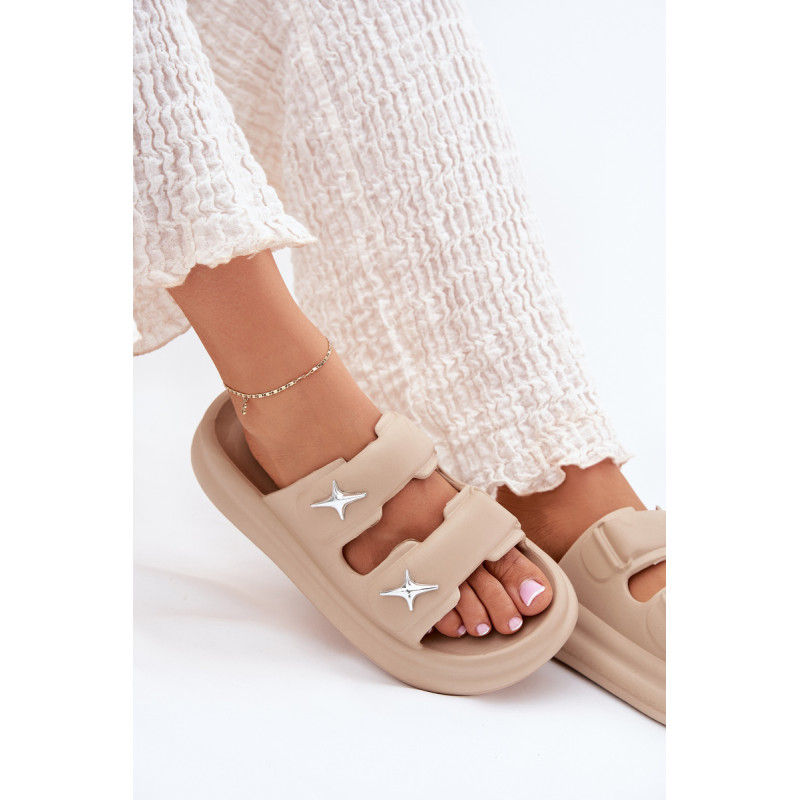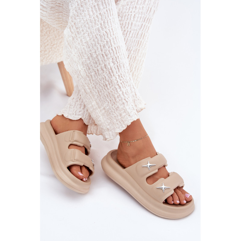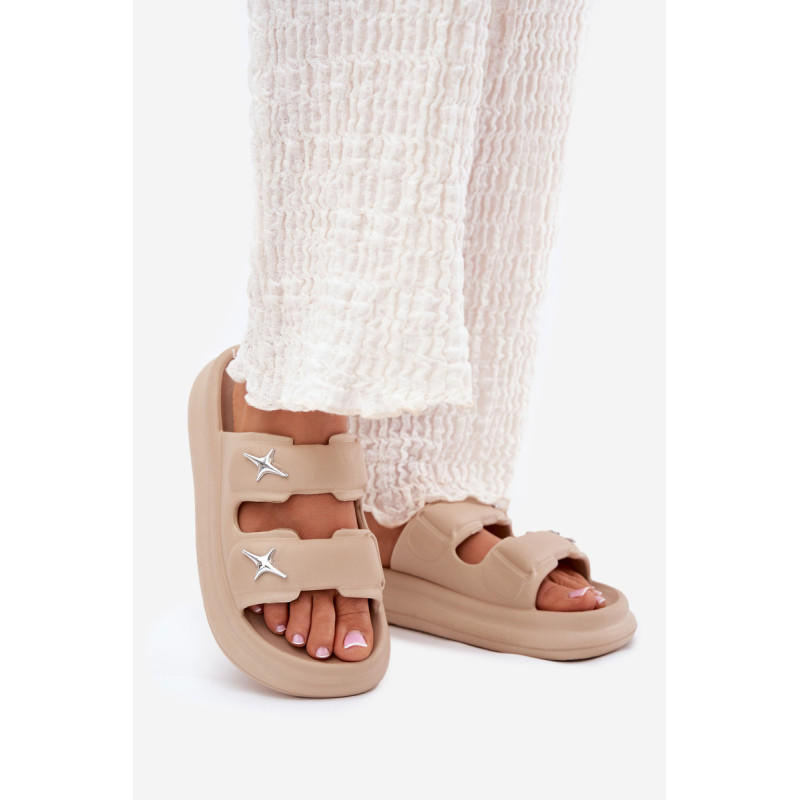 Moteriški putų šlepetės, lengvos ir ant platformos, yra puikus pasirinkimas šiltoms dienoms. Dvi juostos, papuoštos sidabrinėmis ženkliukėmis, suteikia joms madingą išvaizdą. Puikiai tinka baseinui, kasdieniams pasivaikščiojimams ir atostogų kelionėms. Renkantis dydį, vadovaukitės dydžių lentele.