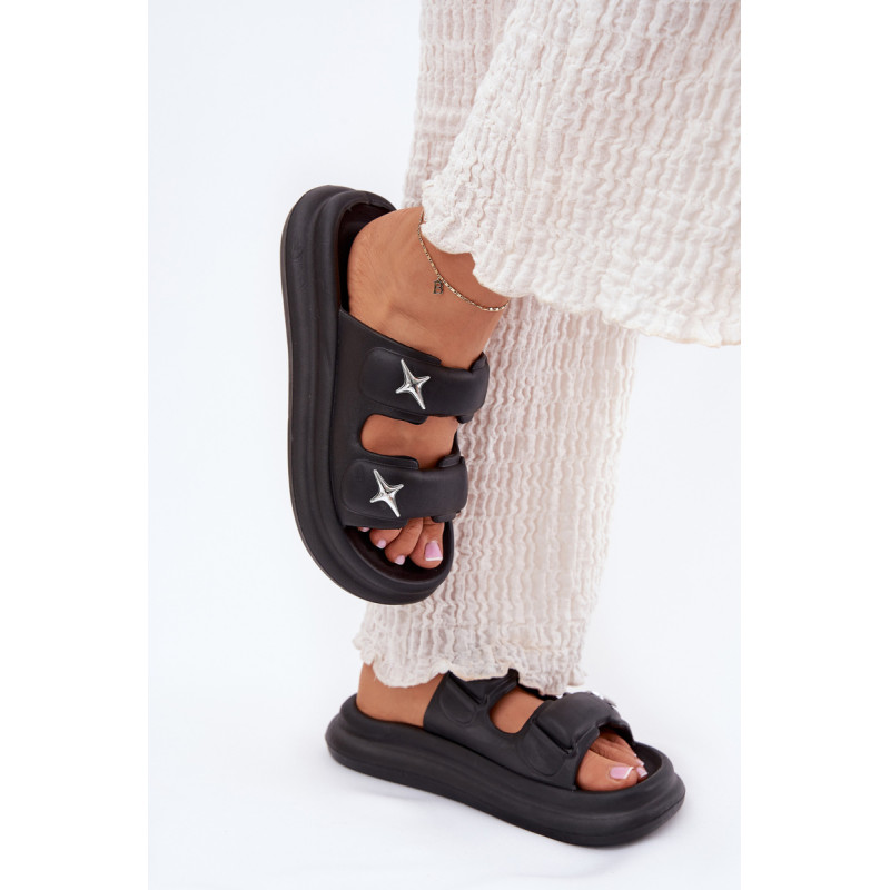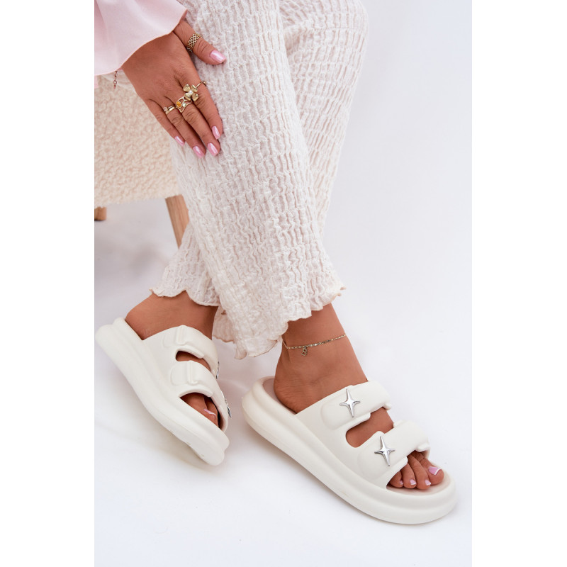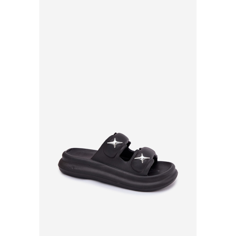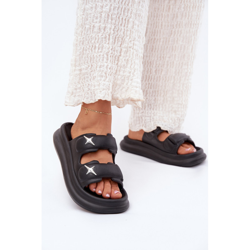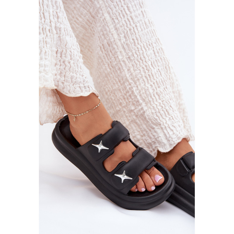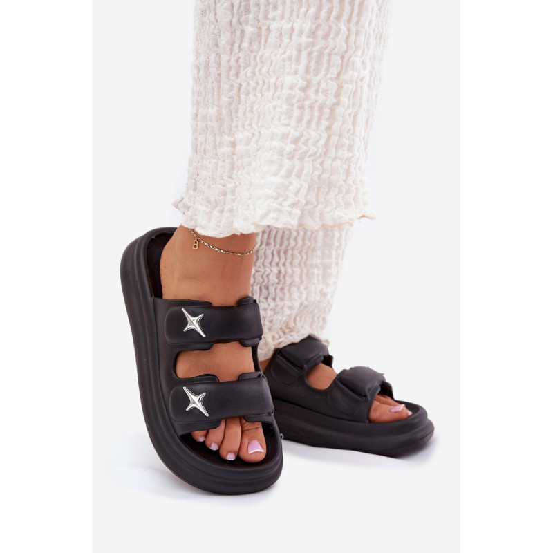 Moteriški putų šlepetės, lengvos ir ant platformos, yra puikus pasirinkimas šiltoms dienoms. Dvi juostos, papuoštos sidabrinėmis ženkliukėmis, suteikia joms madingą išvaizdą. Puikiai tinka baseinui, kasdieniams pasivaikščiojimams ir atostogų kelionėms. Renkantis dydį, vadovaukitės dydžių lentele.
