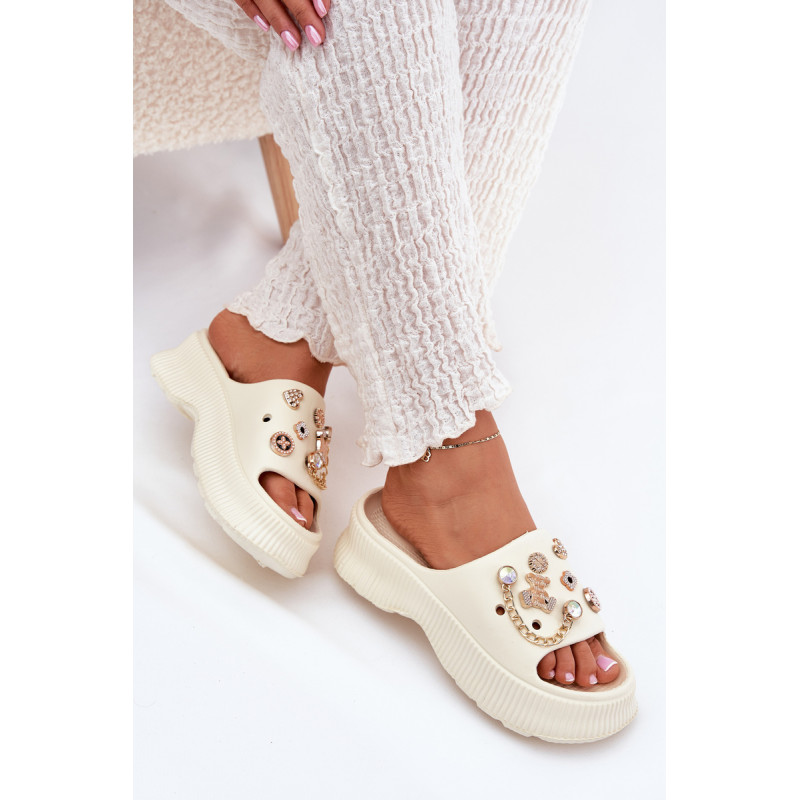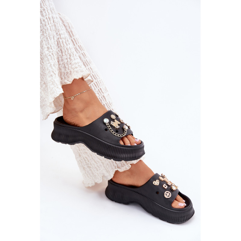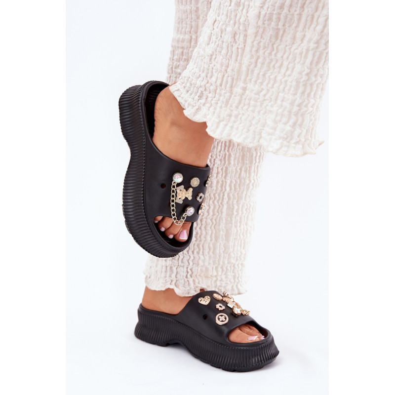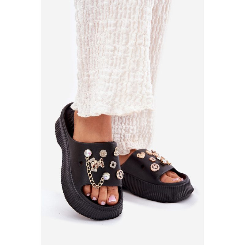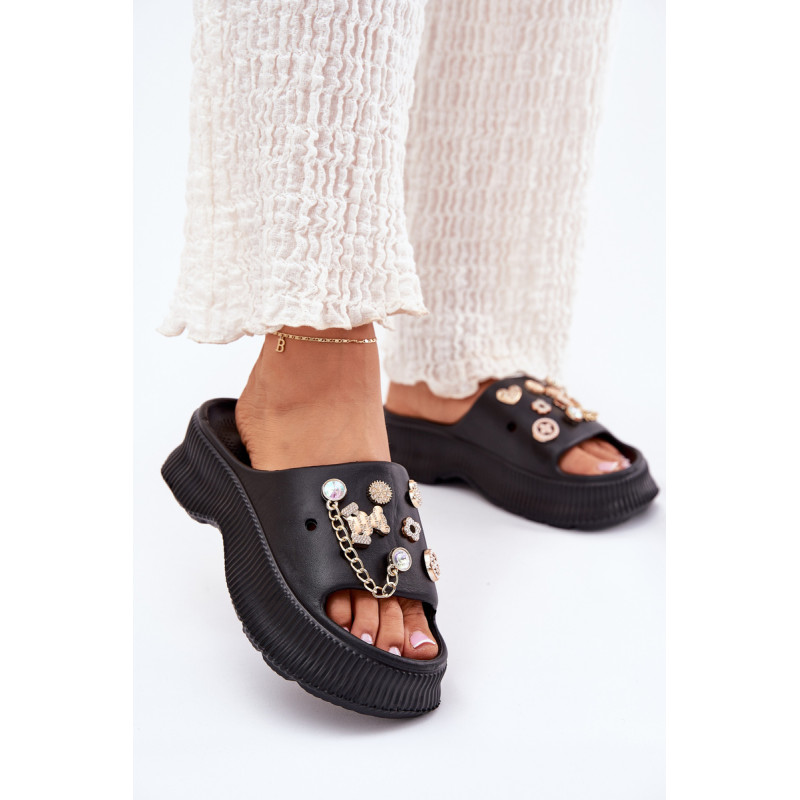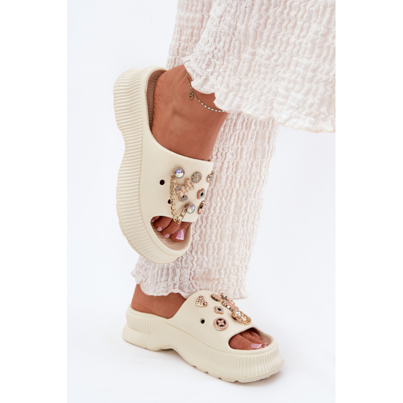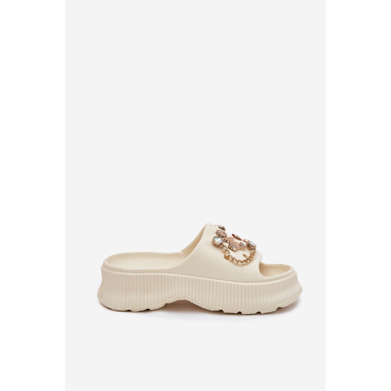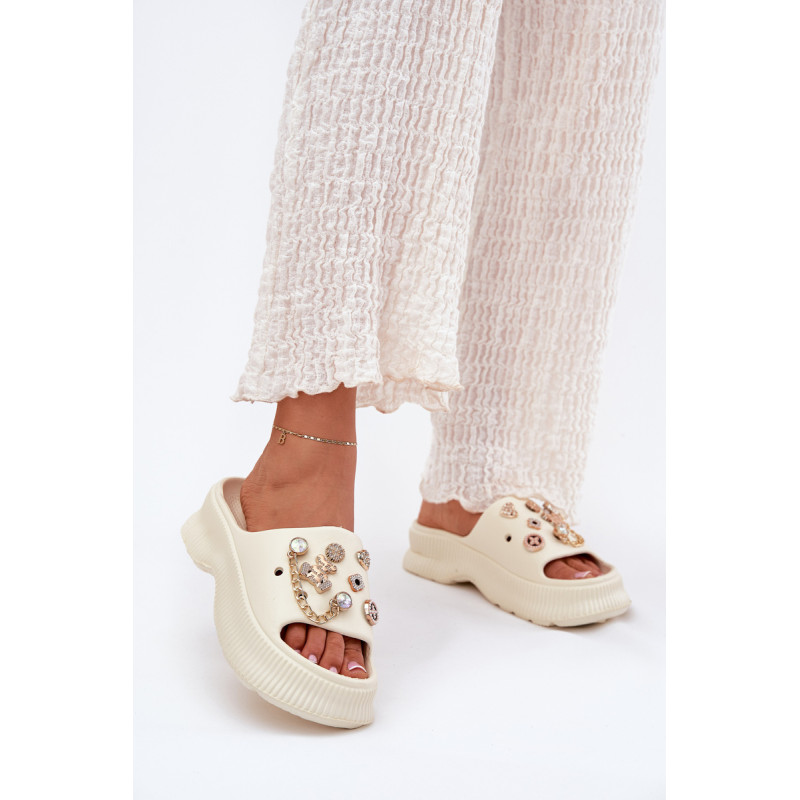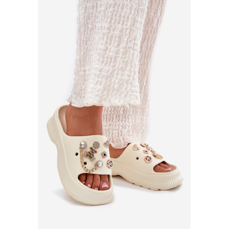 Moteriški putų šlepetės, pastatytos ant platformos, yra stilingas pasirinkimas šiltoms dienoms. Auksinės, mielos segtukai ant dirželio suteikia joms madingą charakterį. Puikiai tinka vasaros kelionėms, dienoms prie baseino ar paplūdimyje. Renkantis dydį, vadovaukitės dydžių lentele.