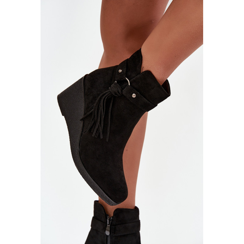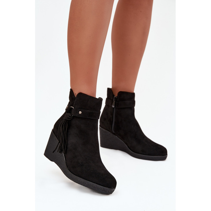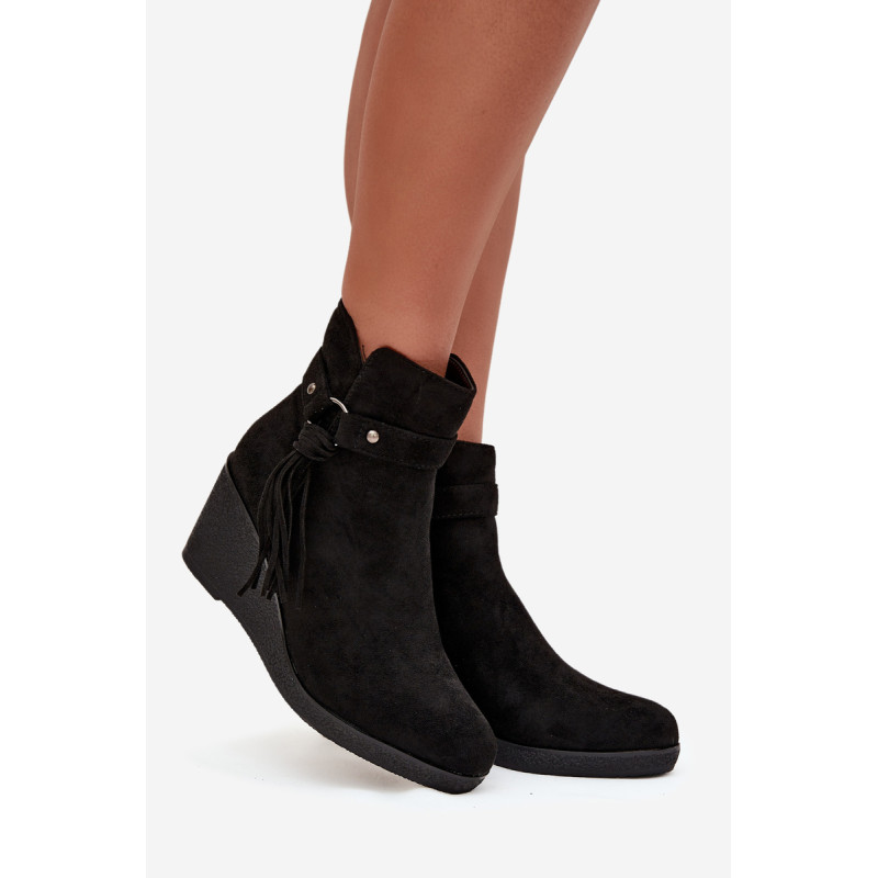 Moteriški ekologiški zomšinių auliukų batai yra madingas ir patogus pasirinkimas šaltoms dienoms. Batai yra iškloti batų antklode, užtikrinančia komfortą ir šilumą. Šoninis užtrauktukas palengvina dėvėjimą ir nuėmimą, o išskirtinį charakterį pabrėžia dekoratyvinė juosta su kutais, kuri išryškina modelio stilingą išvaizdą. Šie batai yra puikus pasirinkimas kasdienėms derinimo galimybėms – tinka tiek prie kelnių, tiek prie suknelių ar sijonų, pridėdami madingą akcentą. Renkantis dydį, vadovaukitės dydžių lentele.