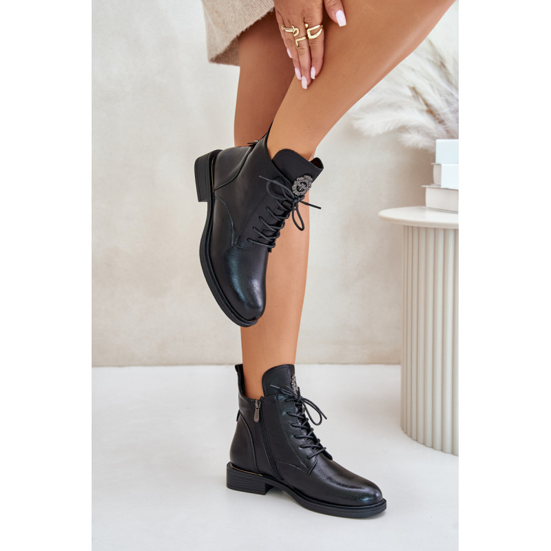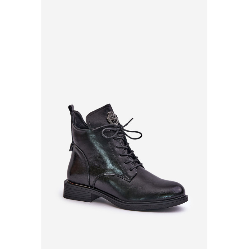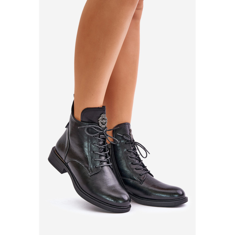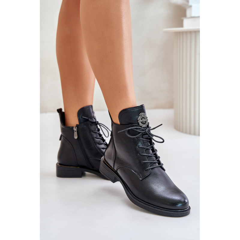Ekologinės odos kulkšnies batai yra stilinga ir patogi avalynė vėsesnėms dienoms. Ant plokščio kulno jie suteikia patogumo dėvėti visą dieną. Modelis yra suvarstomas ir su užtrauktuku, todėl jį lengva reguliuoti ir greitai užsidėti. Vidus išklotas šilta avalynės vilna, kuri suteikia papildomos šilumos. Detalė ant liežuvio suteikia originalumo. Puikiai tinka kasdieniam laisvalaikio stiliui. Rinkdamiesi dydį, žiūrėkite dydžių lentelę.