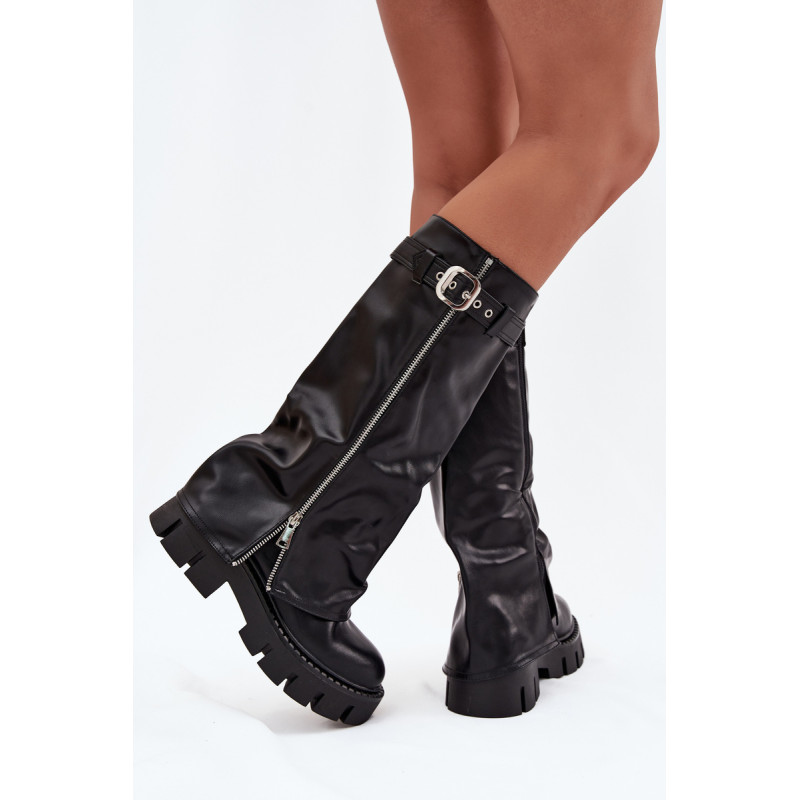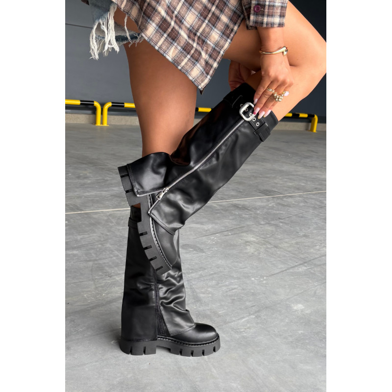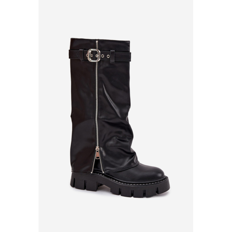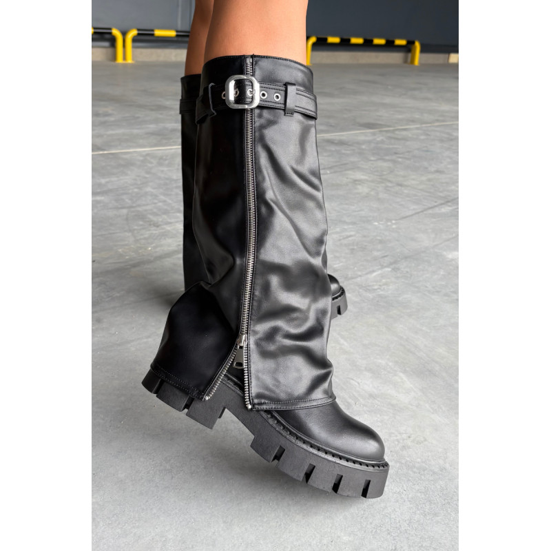 Moteriški auliniai batai su apverčiu viršumi yra vienas iš pagrindinių žiemos tendencijų. Pagaminti iš ekologiškos odos. Pastatyti ant platformos su masyviu kulnu. Pamušti avalyne su antklode, jie užtikrina komfortą ir šilumą šaltomis dienomis. Patogu užsidėti dėl užsegimo su užtrauktuku, papildomas sidabrinis užtrauktukas ir diržas su sagtimi viršaus dalyje suteikia jiems madingą, išraiškingą charakterį. Puikiai tinka tiek kasdieniam nešiojimui, tiek elegantiškesniems stiliams. Pasirinkite dydį pagal dydžių lentelę. Renkantis dydį, vadovaukitės dydžių lentele.